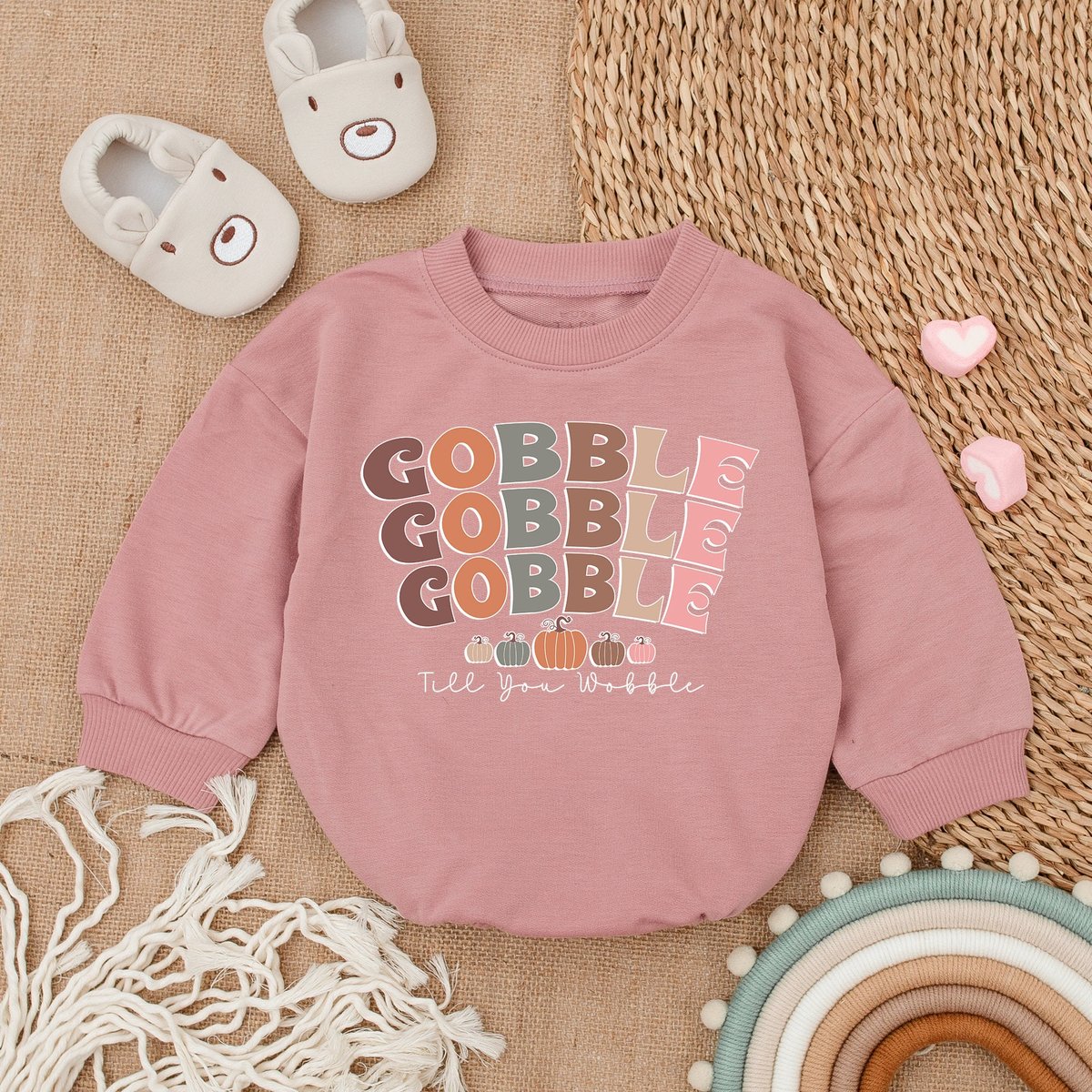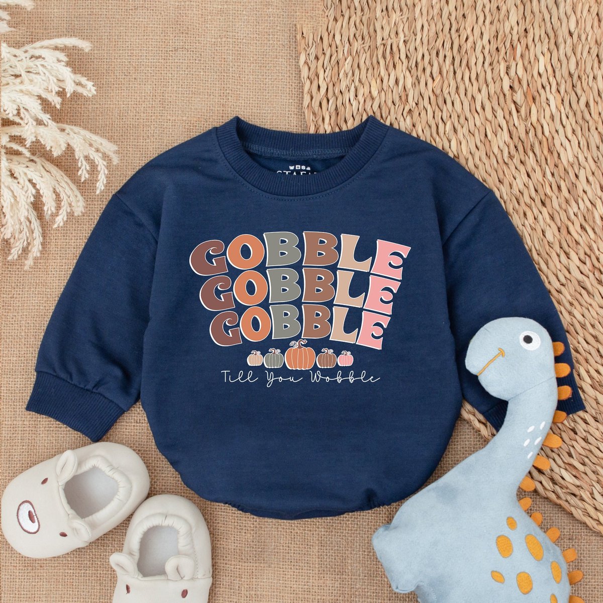 Gobble Till You Wobble Baby Romper Thanksgiving Infant Outfit Baby Girl Clothes Fall Baby Shower