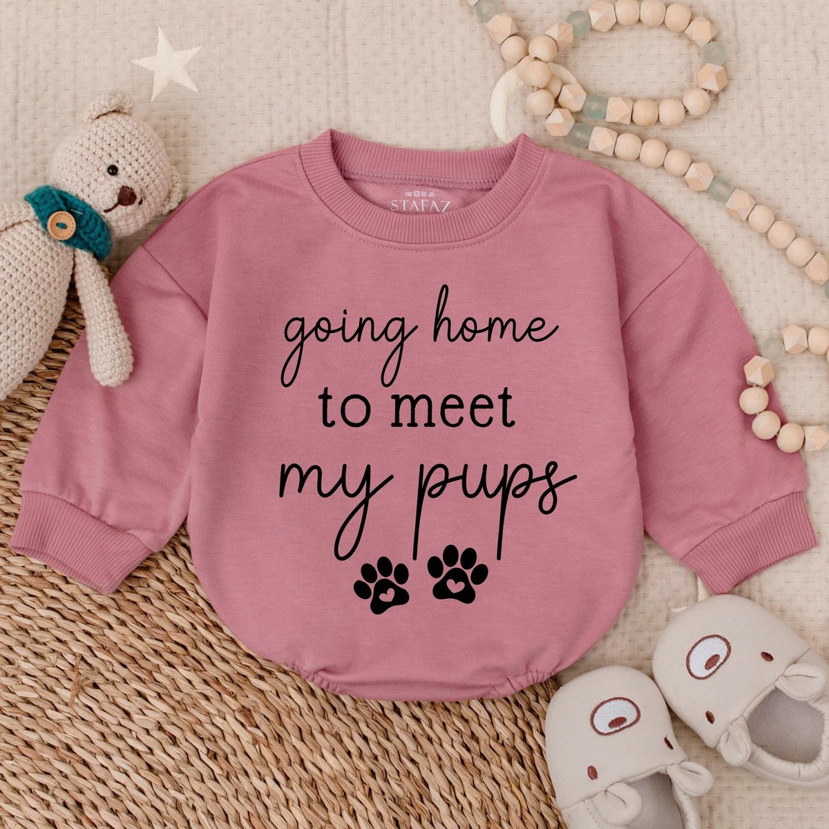 Going Home to Meet My Pups Baby Bodysuit Bubble RomperNew Best Friend GiftCute baby clothes Funny Ne