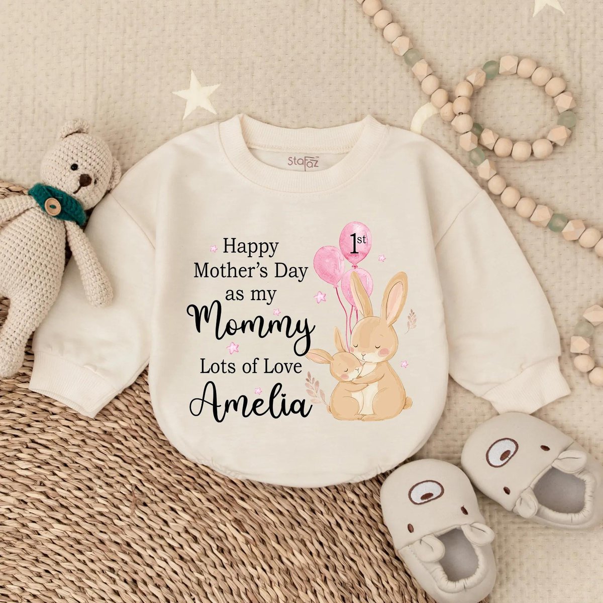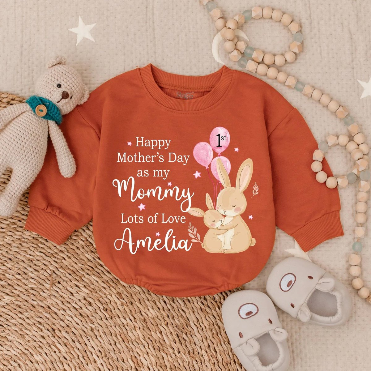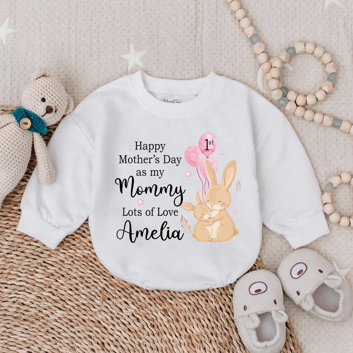 Happy First Mother’s Day Bubble Romper Love My Mom Outfit New Mom Gift Cute Baby Girl Bodysuit for