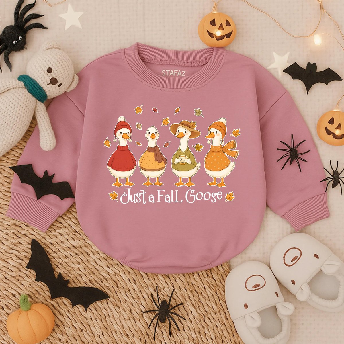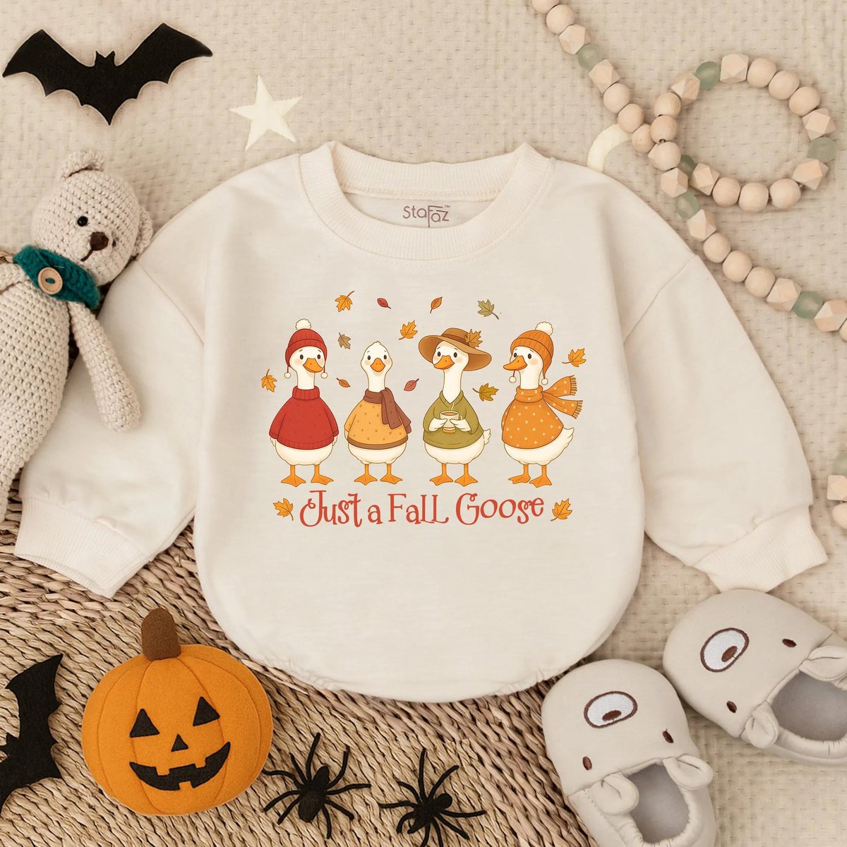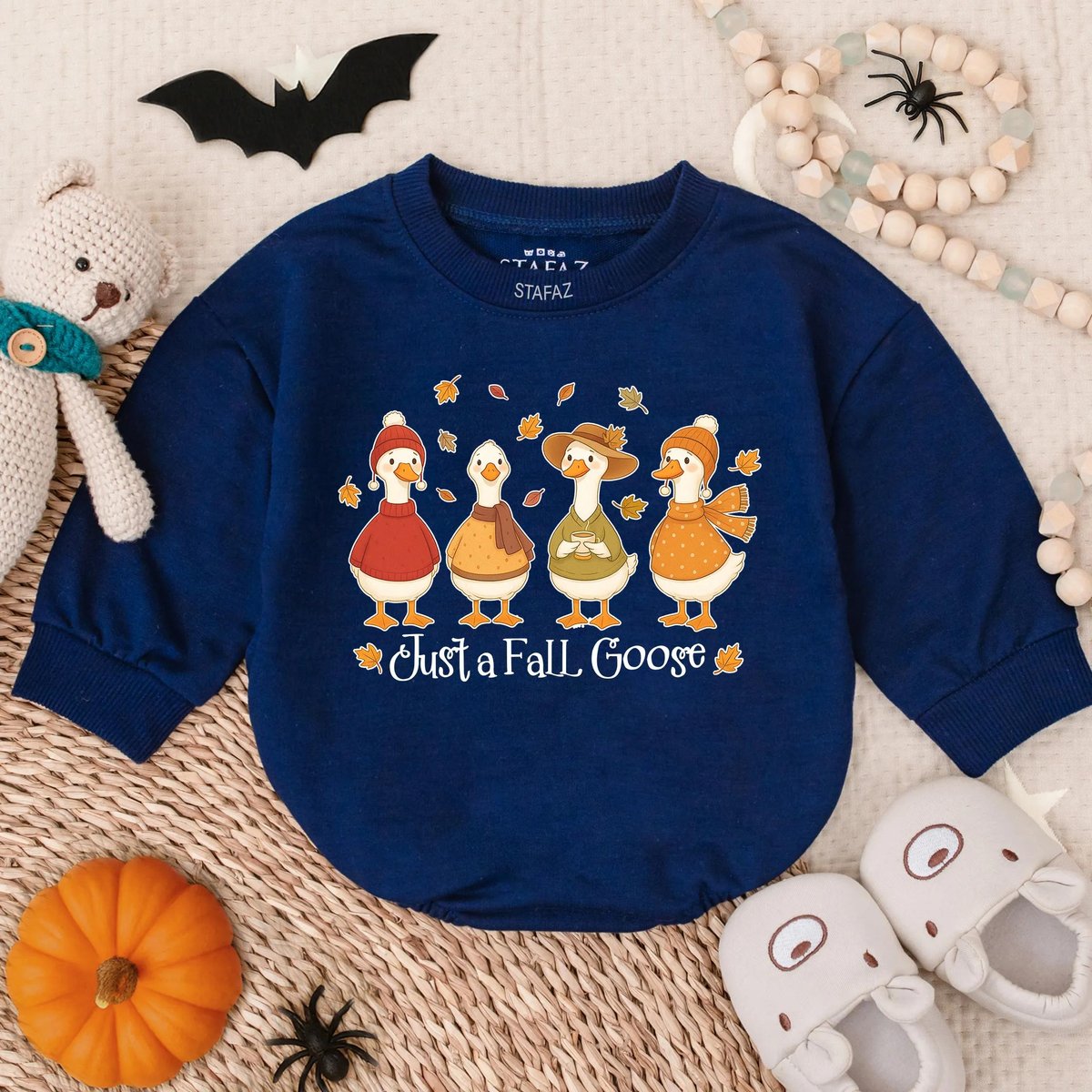 Just a fall goose Bubble Romper Fall Baby Outfit Preppy Fall Clothes Autumn Goose Shirt First Thanks
