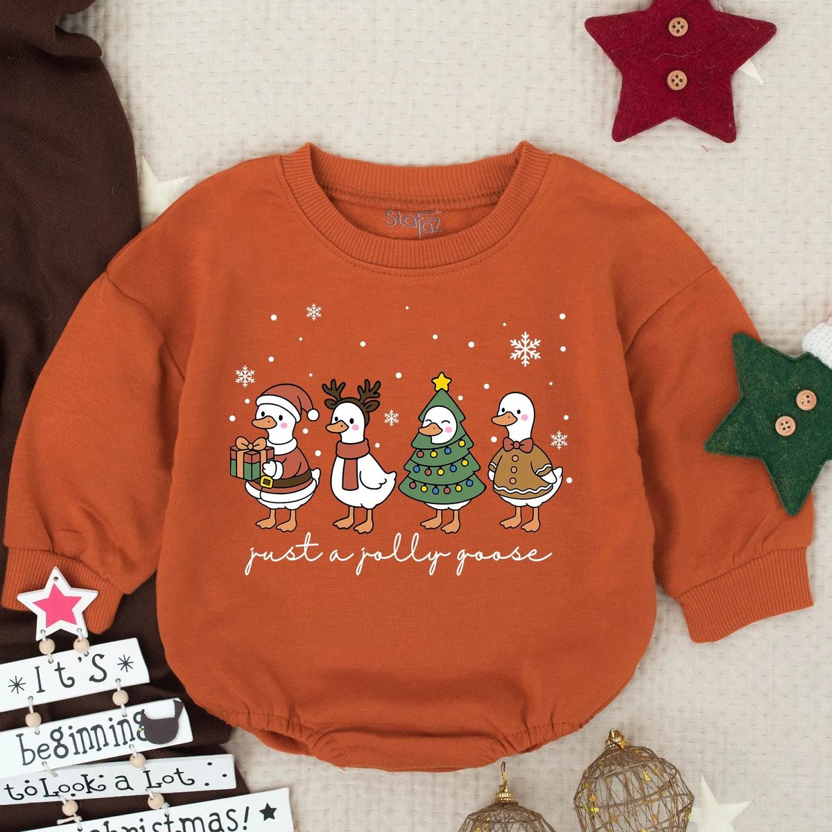 Just a Jolly Goose First Christmas Baby Romper Funny Holiday Toddler Outfit Infant Xmas Clothes Baby