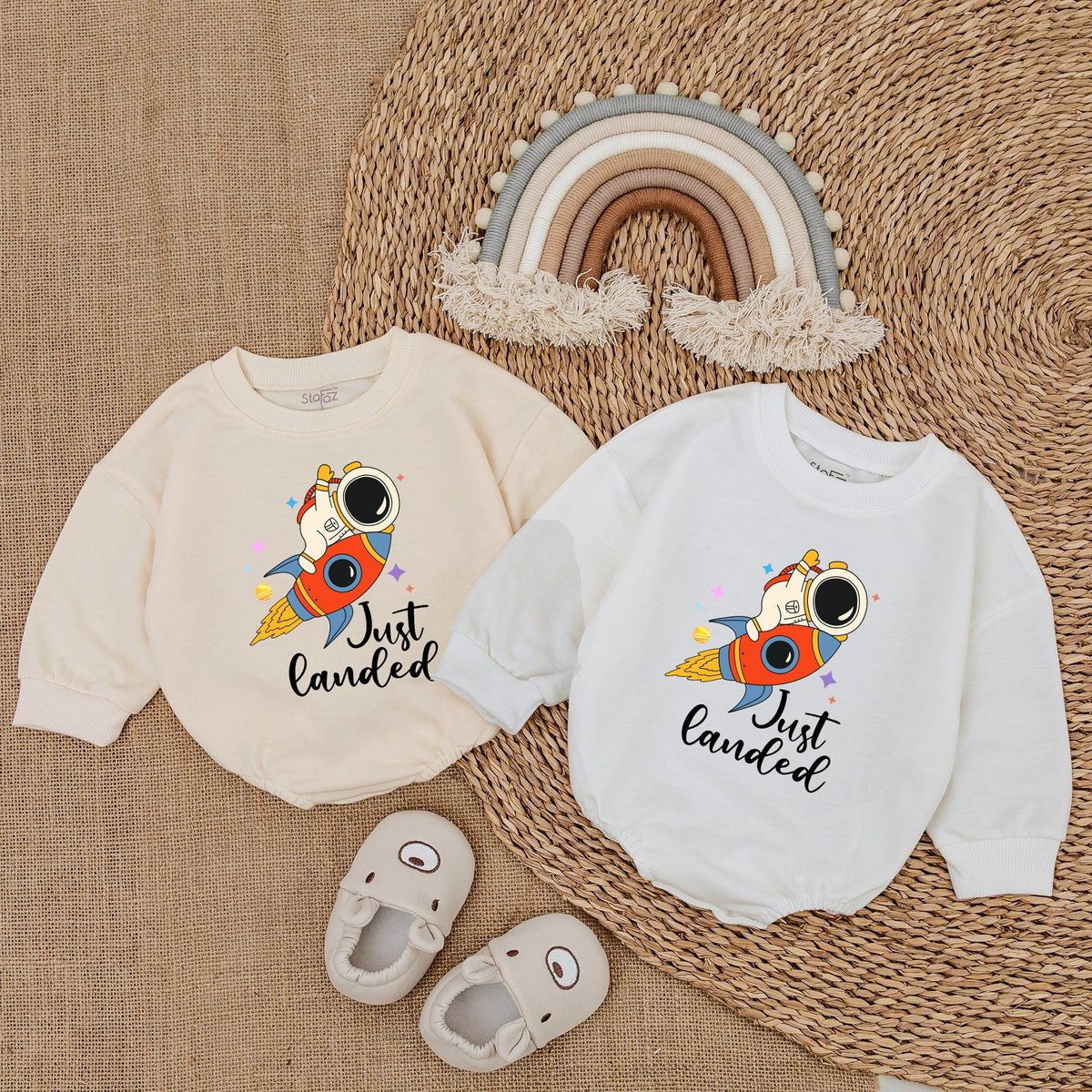 Just Landed Baby Bodysuit Space ship Baby Bodysuit Astronaut Baby Romper Baby Shower Gift Newborn Cl