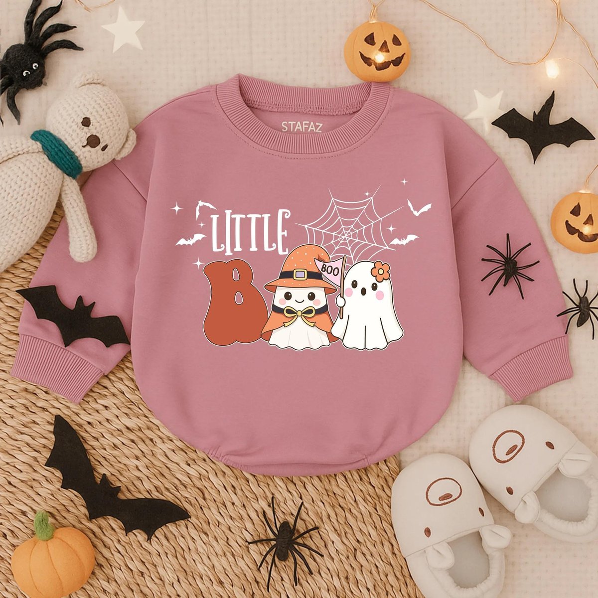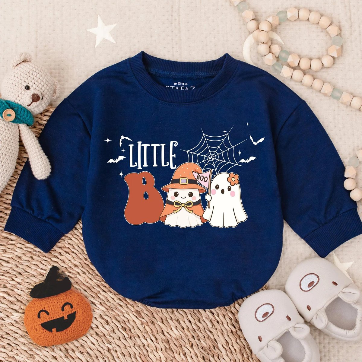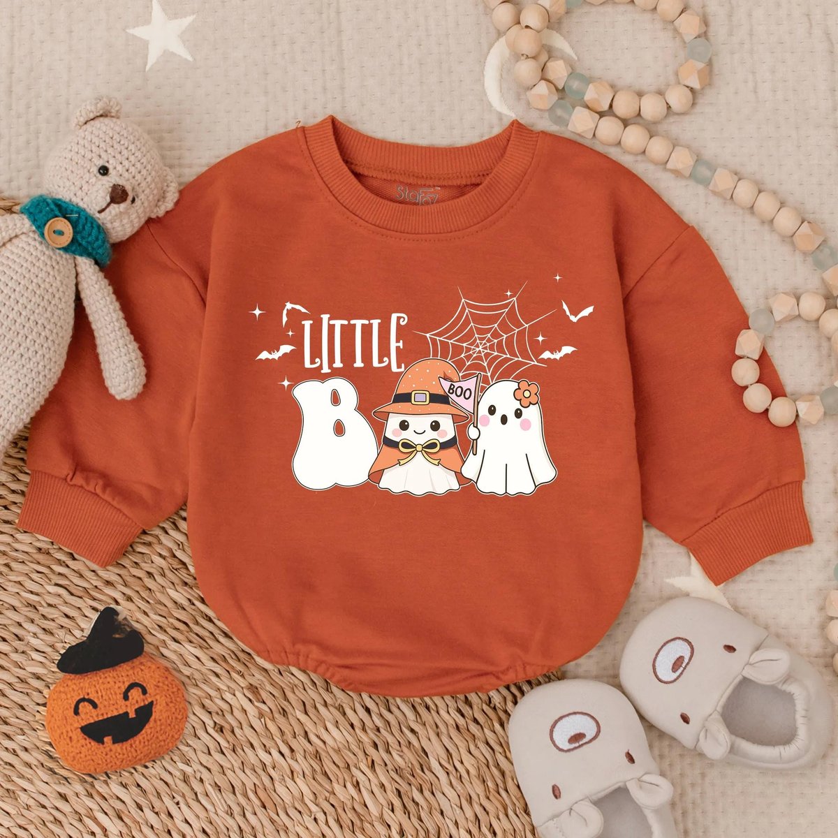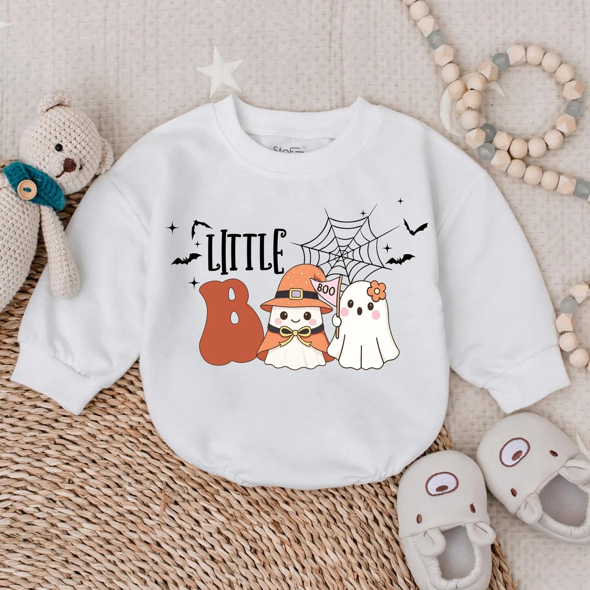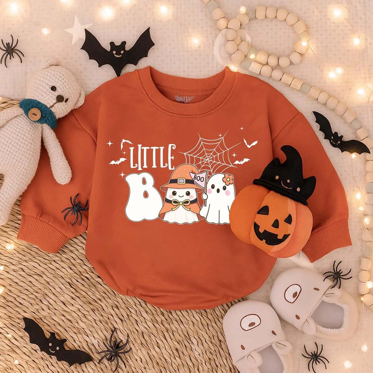 Little Boo First Halloween Bubble Romper Spooky Cute Baby Outfit Infant Fall Bodysuit Baby Ghost Cos