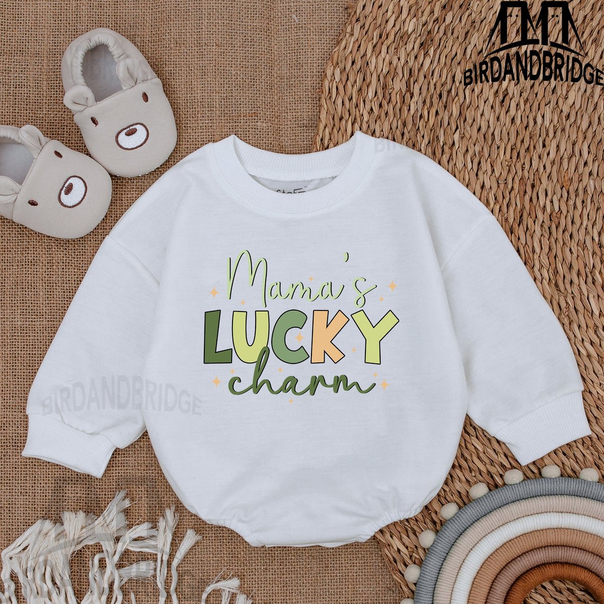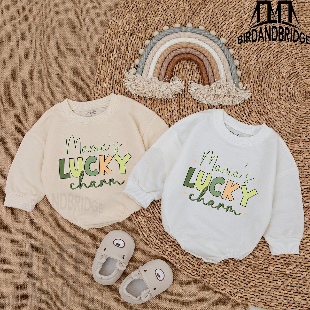 Mama’s Lucky Charm Baby Romper St Patrick’s Day Bodysuit Irish Baby Outfit Light Mauve Baby