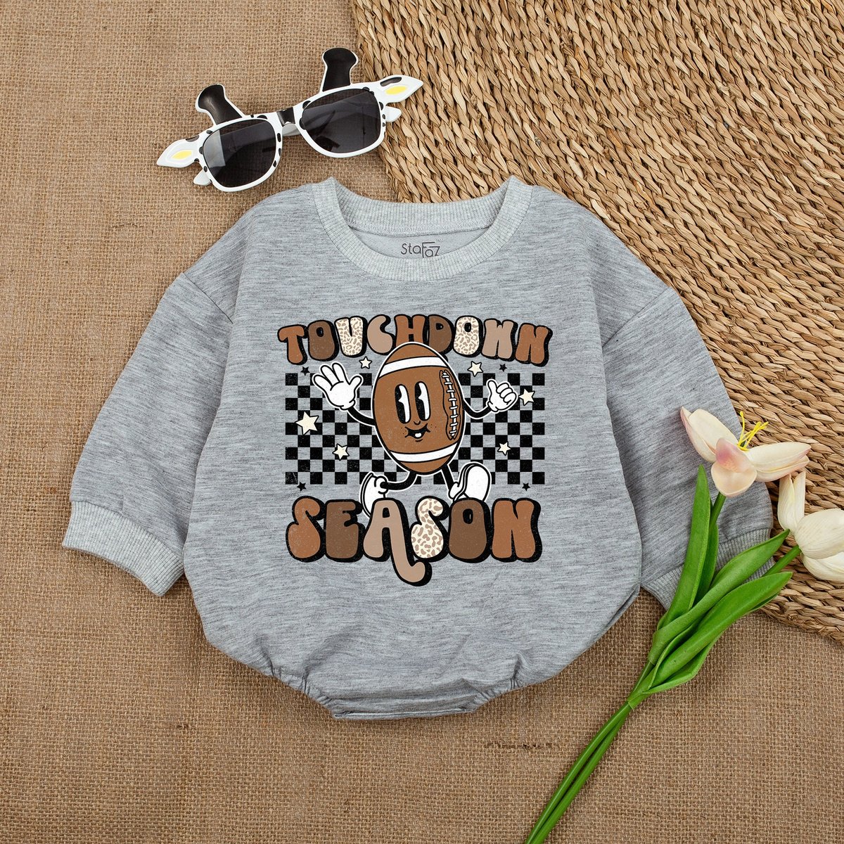 Oversized Touchdown Baby Romper Football Babe Jumpsuit Football Baby Shower Football Fan Baby Outfit