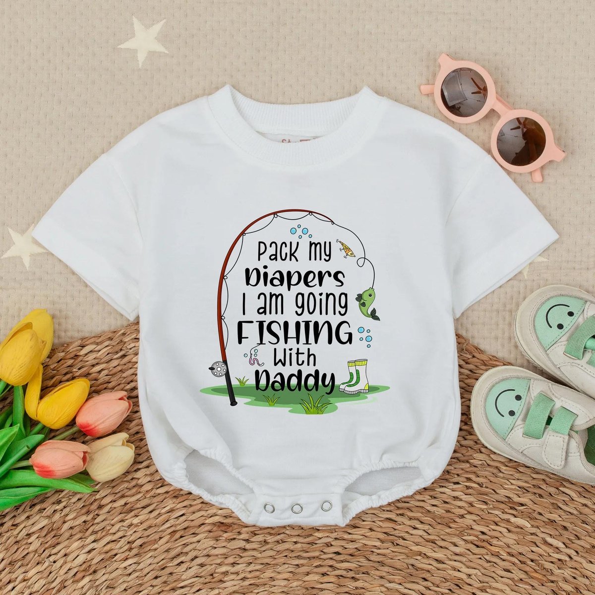 Pack My Diapers I’m Going Fishing With Daddy Bubble RomperBaby Boy OutfitShort Sleeve Oversized Bod