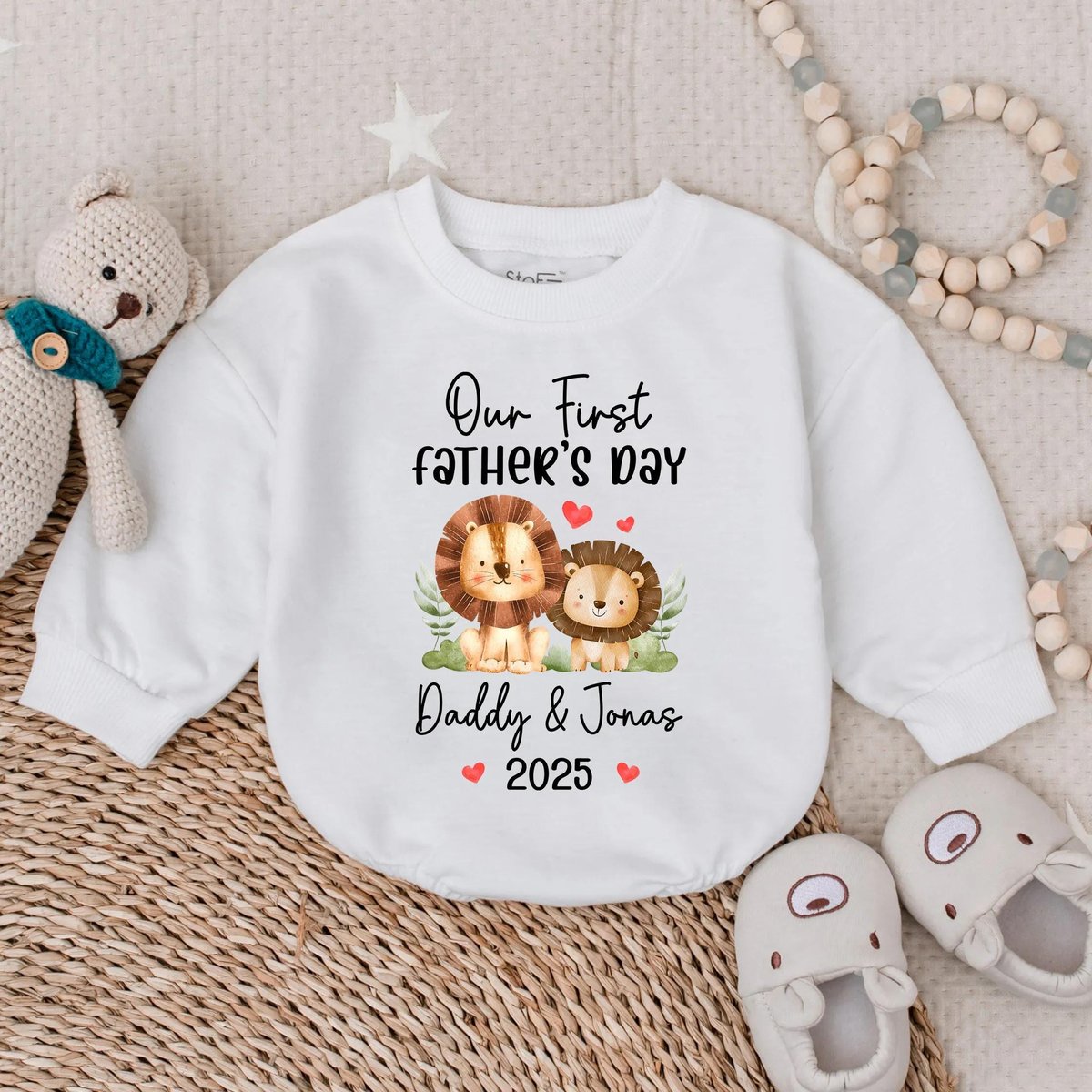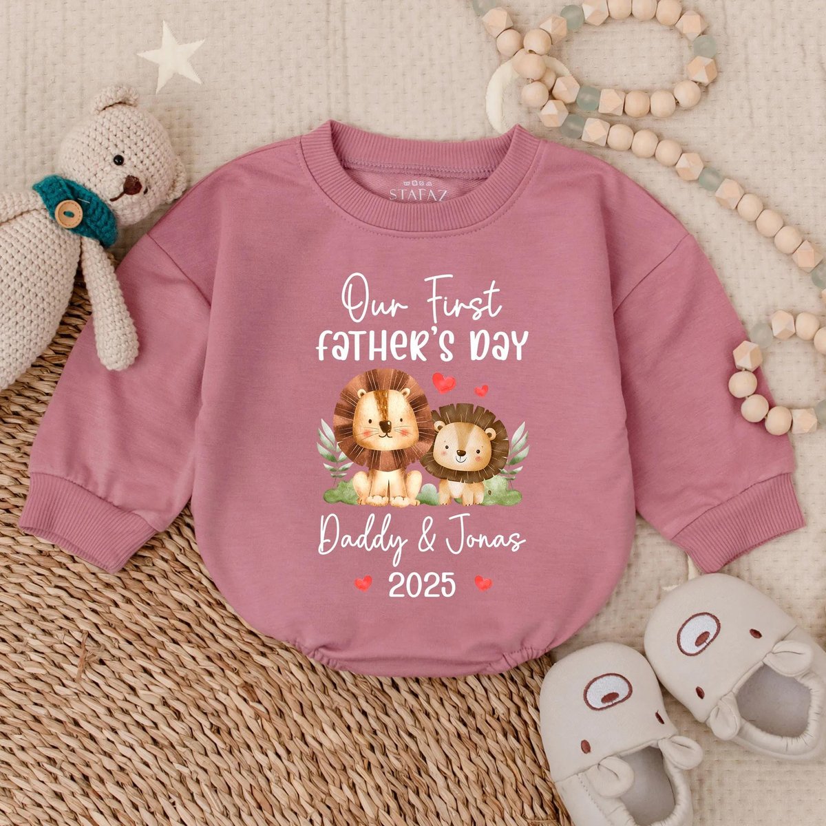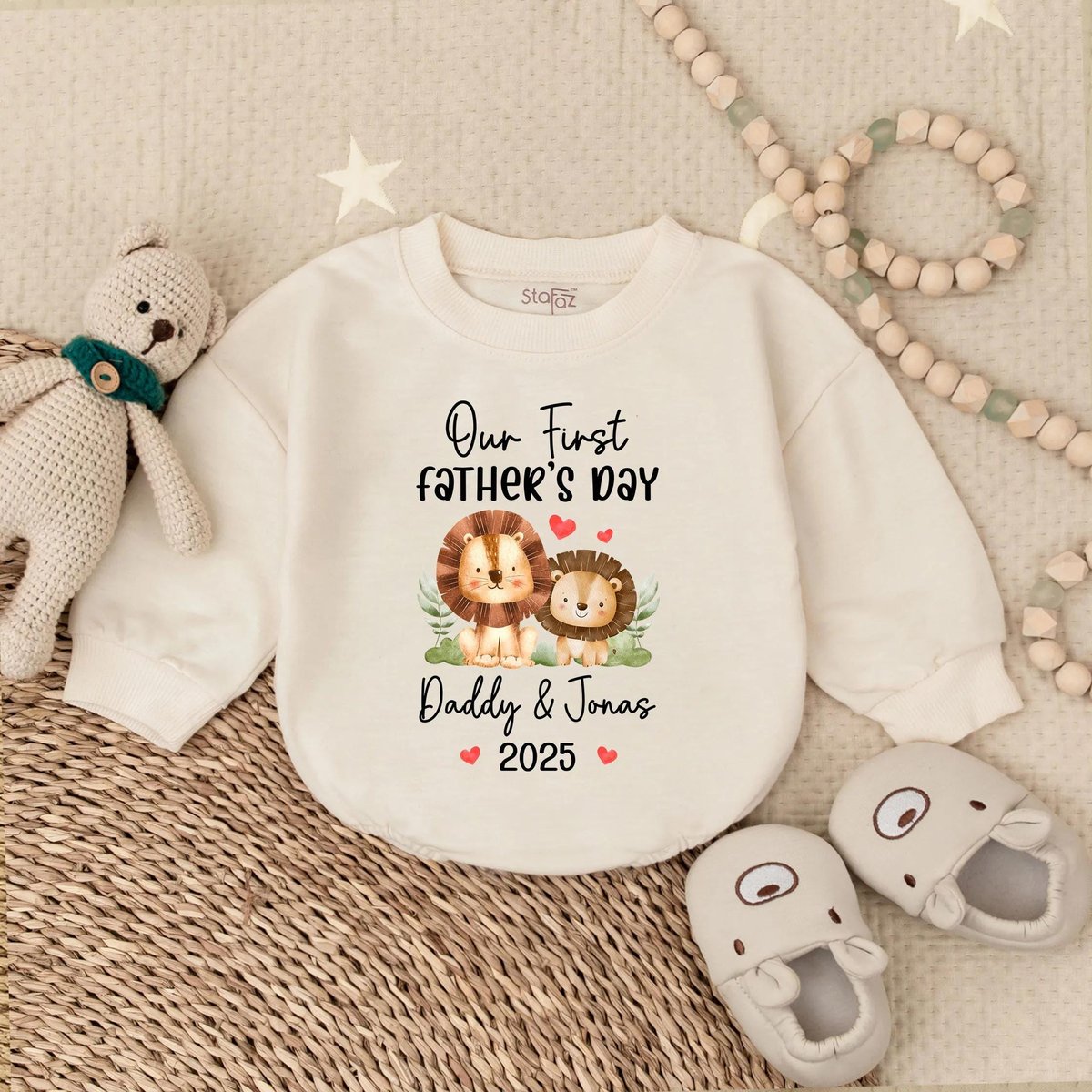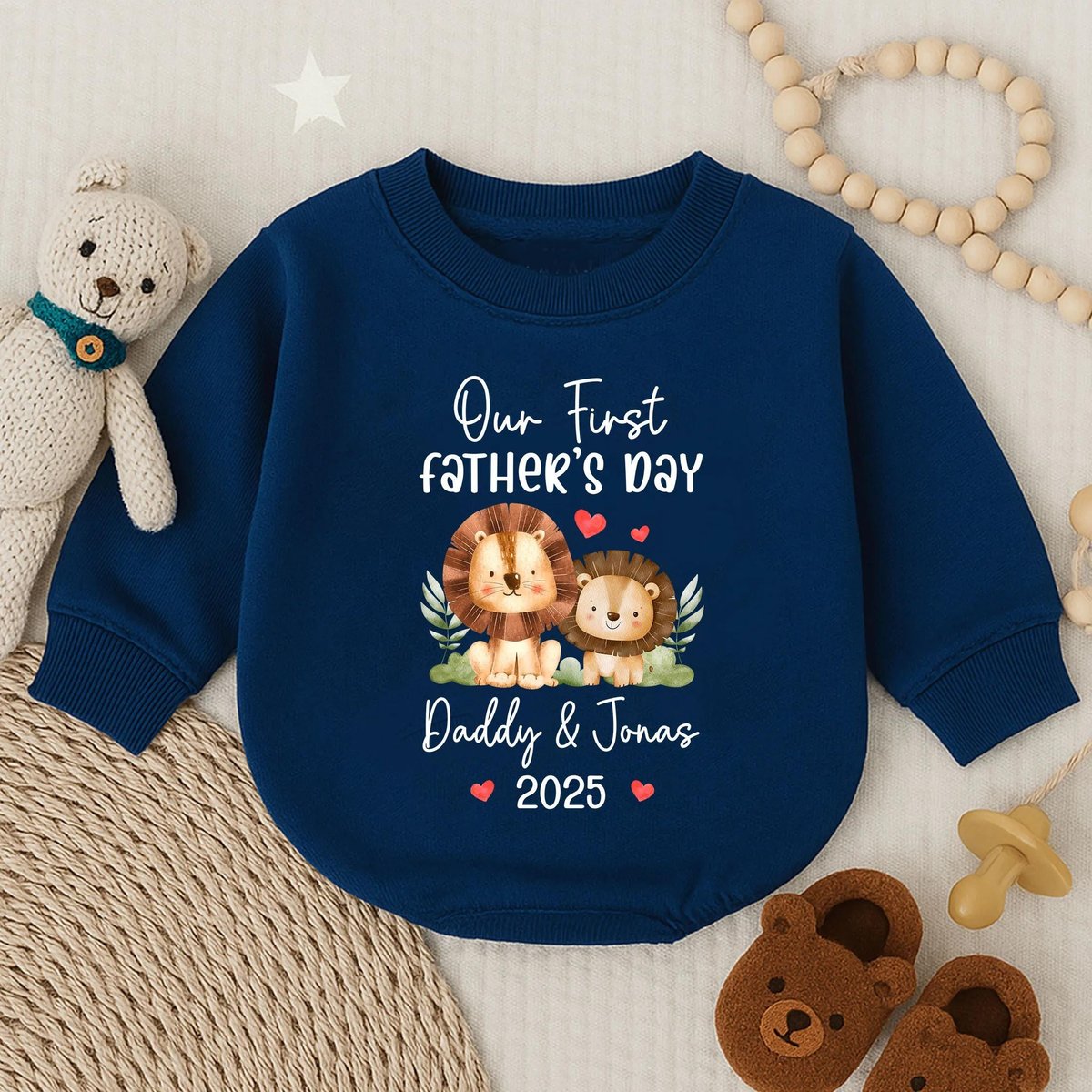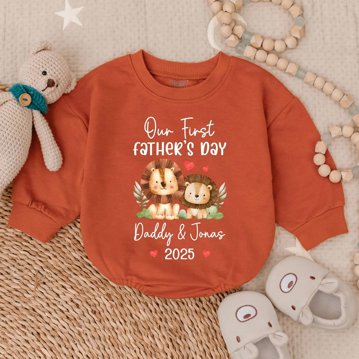 Personalised Our First Father’s Day Bubble Romper Custom Name Baby Bodysuit Baby and Daddy Matching