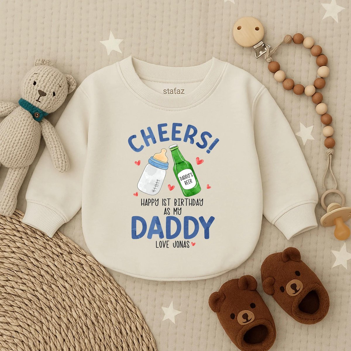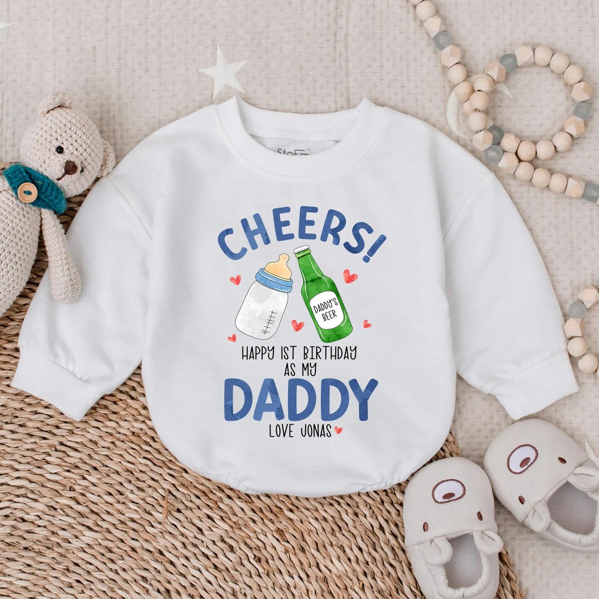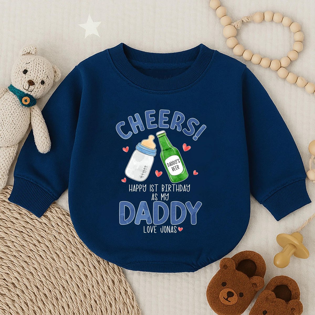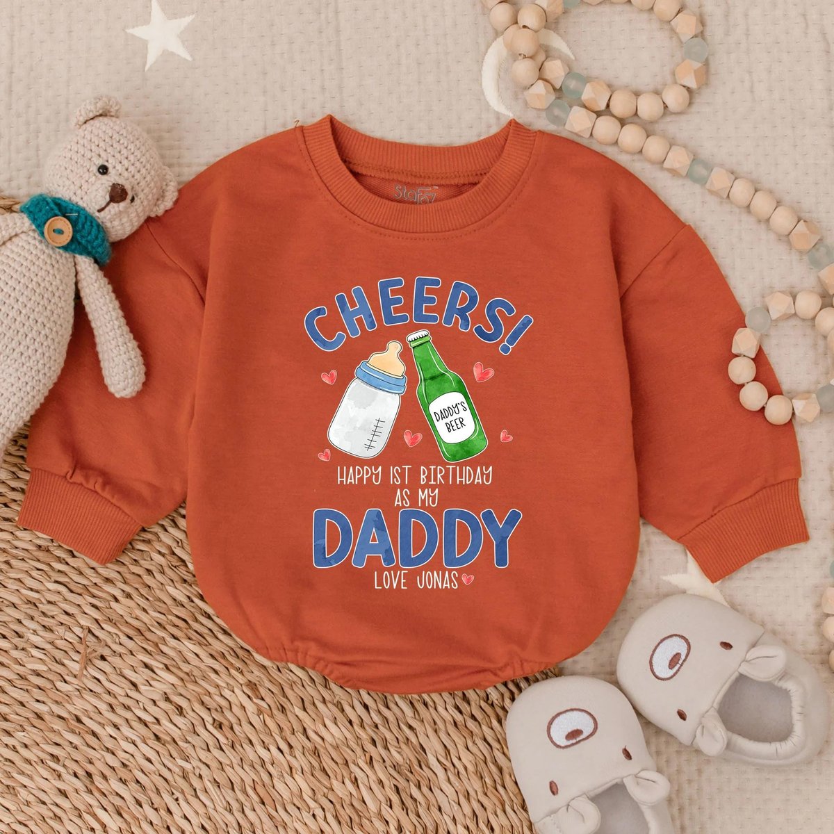 Personalized Cheers Baby Bubble Romper Custom Fathers Day Outfit Baby Boy Bodysuit Kid Gift For Dad