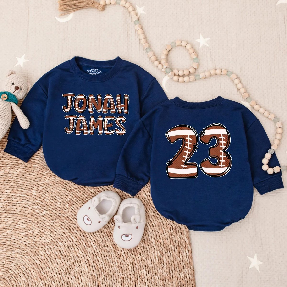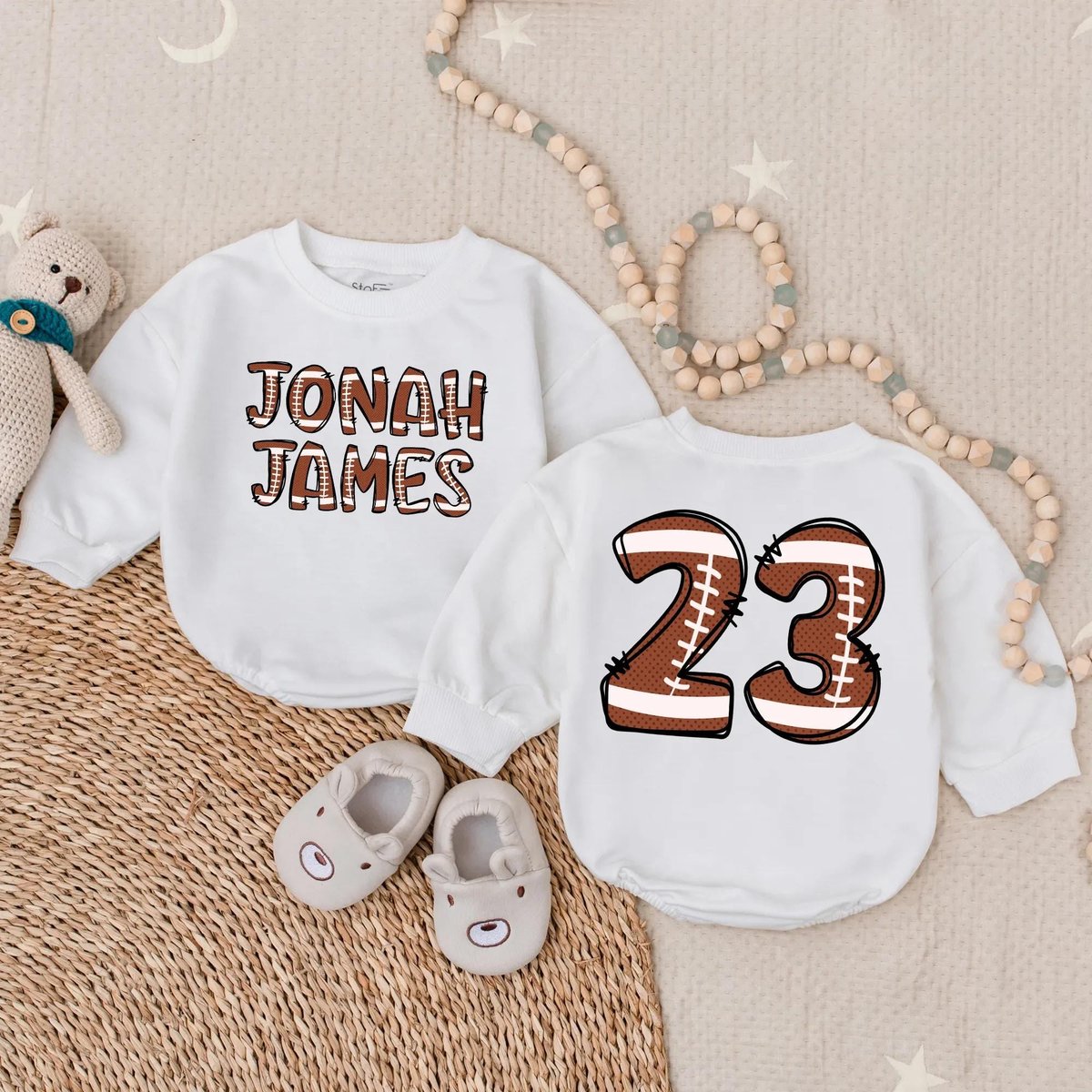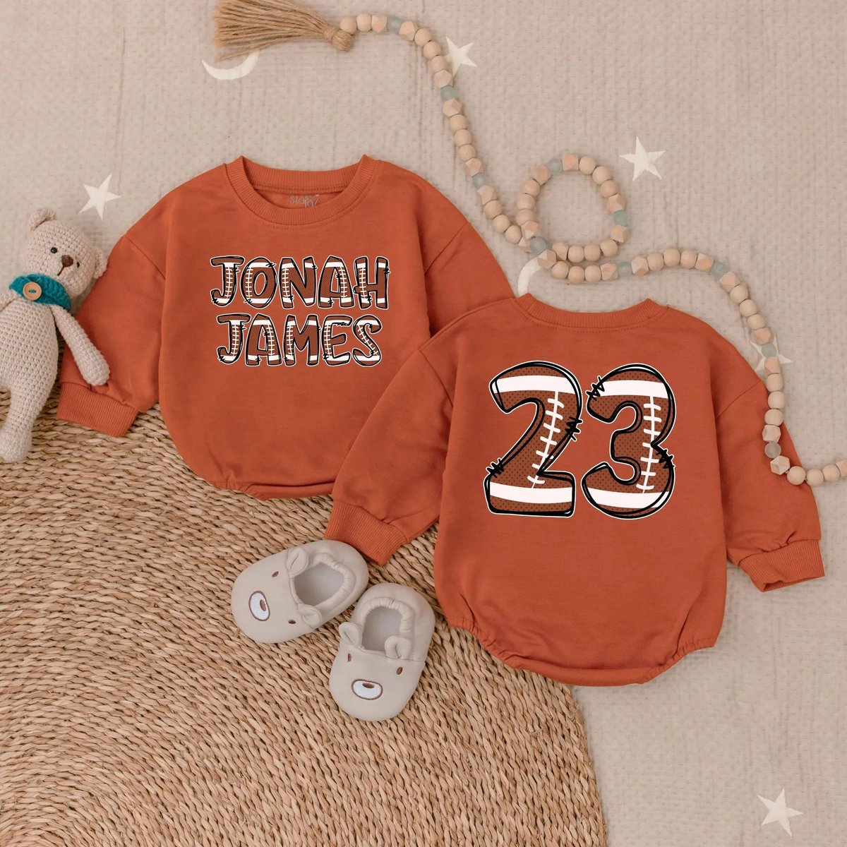 Personalized Football Baby Romper Custom Gameday Outfit Baby Shower Gift Sports Toddler Cute Fall Na