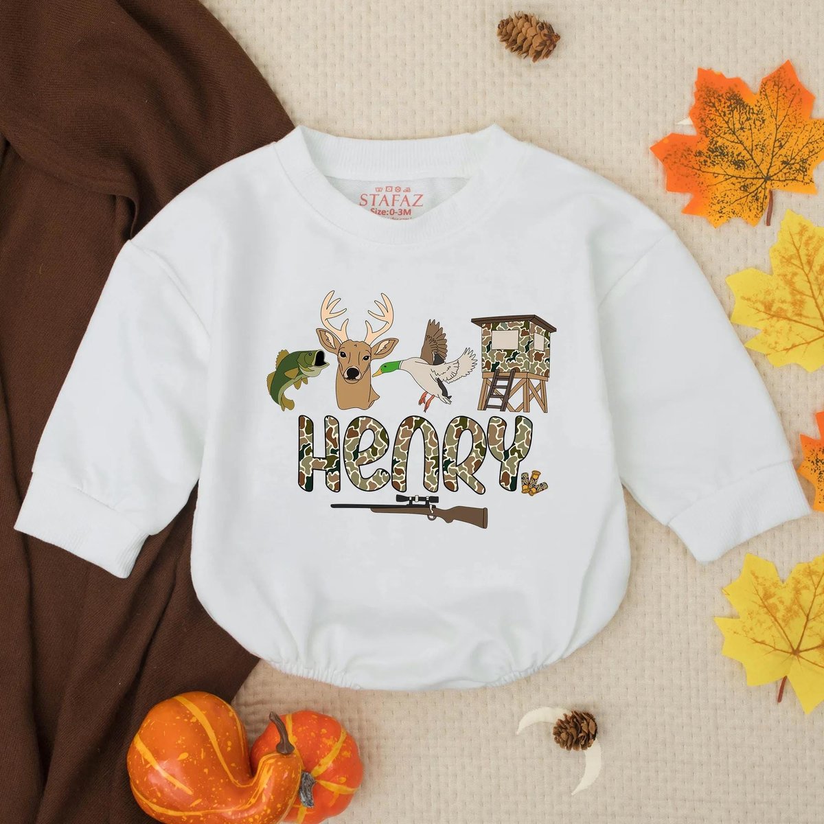 Personalized Hunting and Fishing Baby Romper Custom Name Camo Infant Outfit Duck Deer Baby Shower Gi