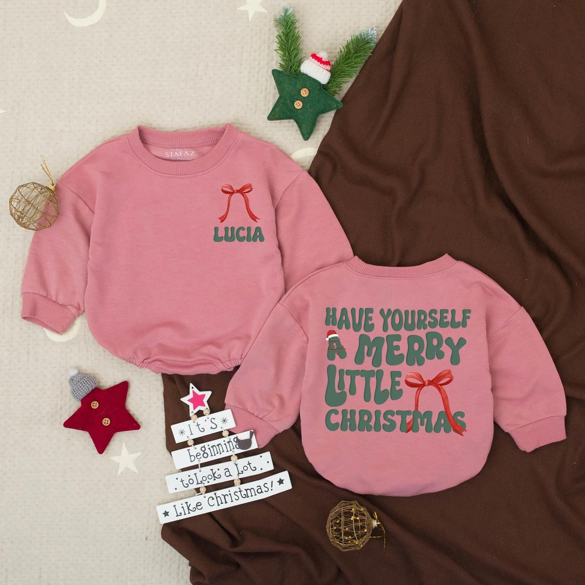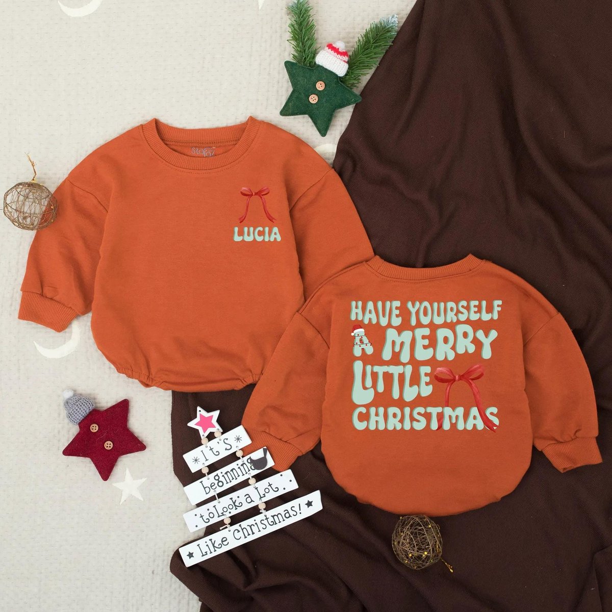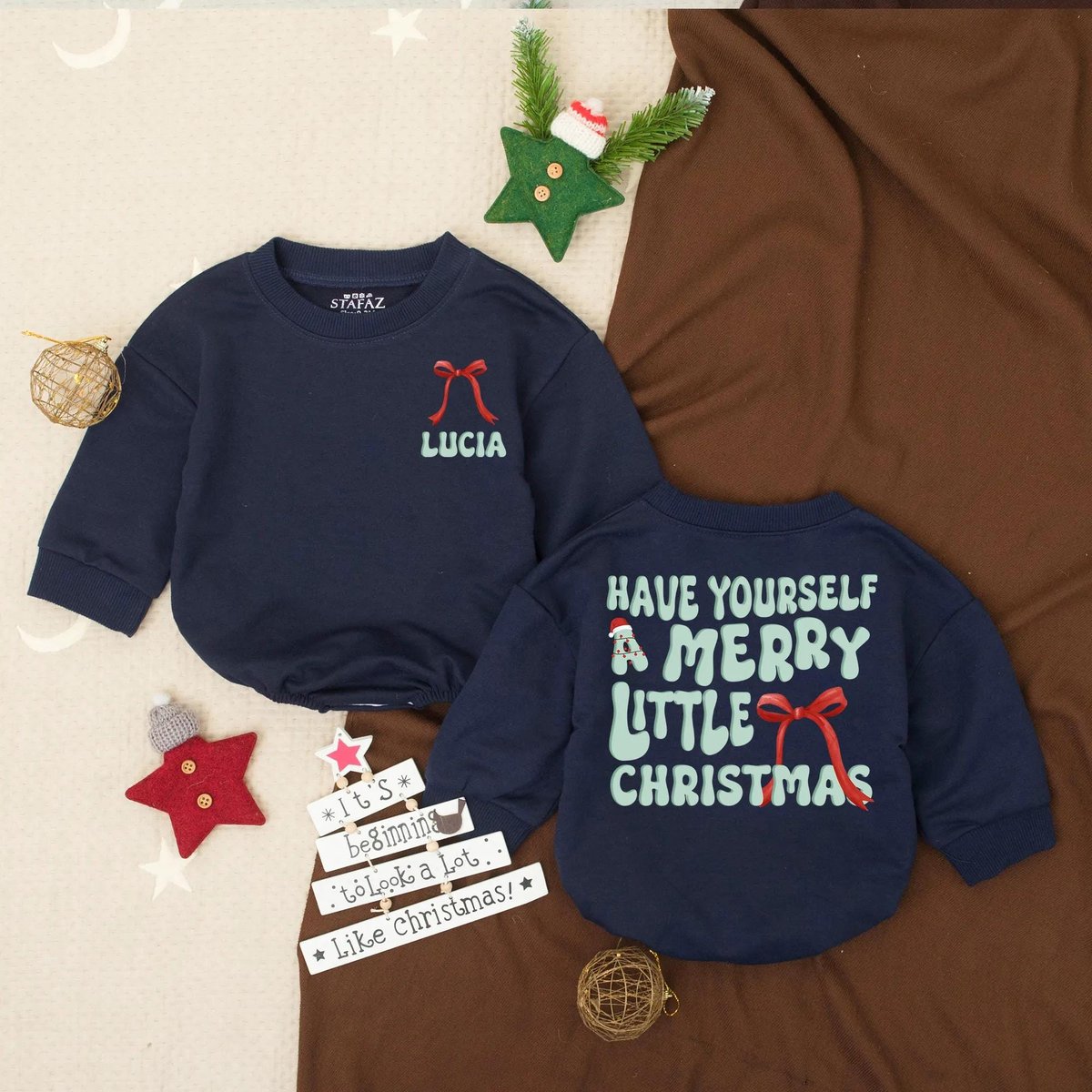 Personalized Merry Little Christmas Baby Bubble Romper Christmas Tree Baby Romper First Christmas To