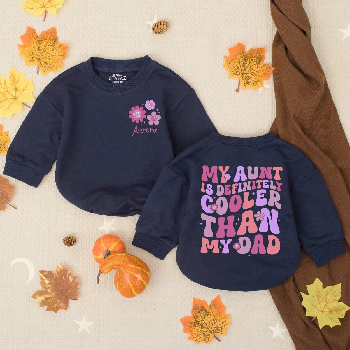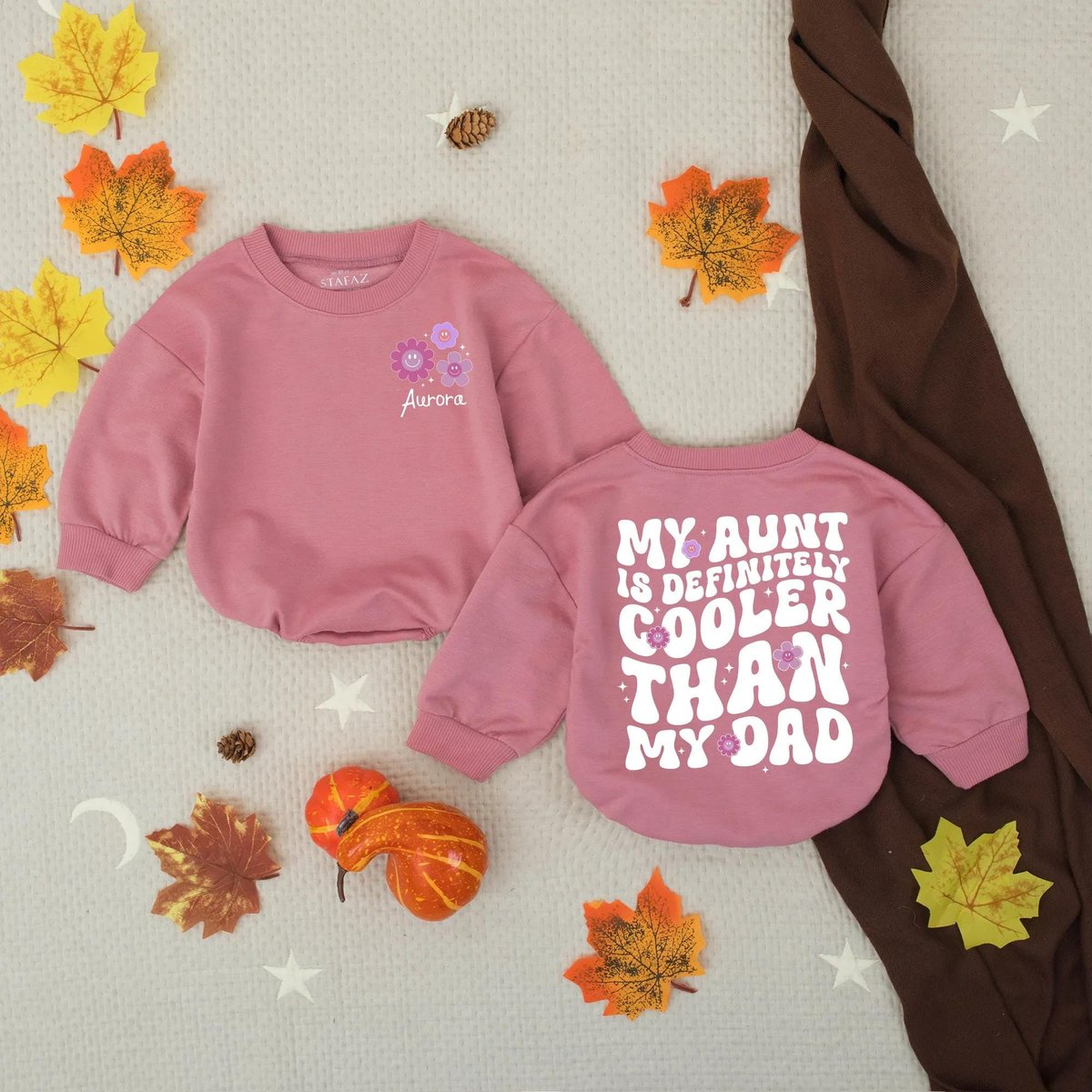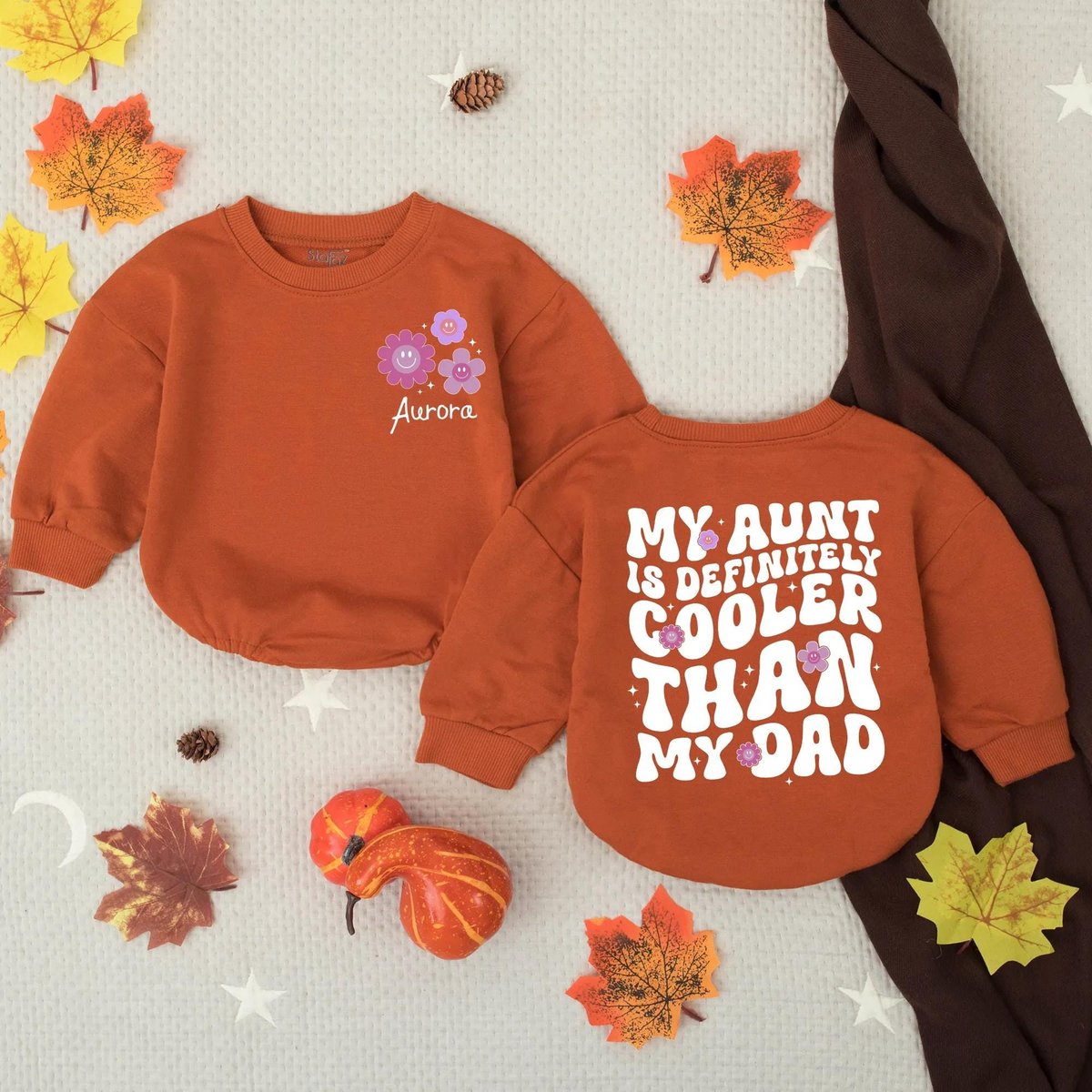 Personalized My Aunt Is Cooler Than My Dad Baby Bubble RomperAuntie’s Bestie Sweatshirt Funny Baby