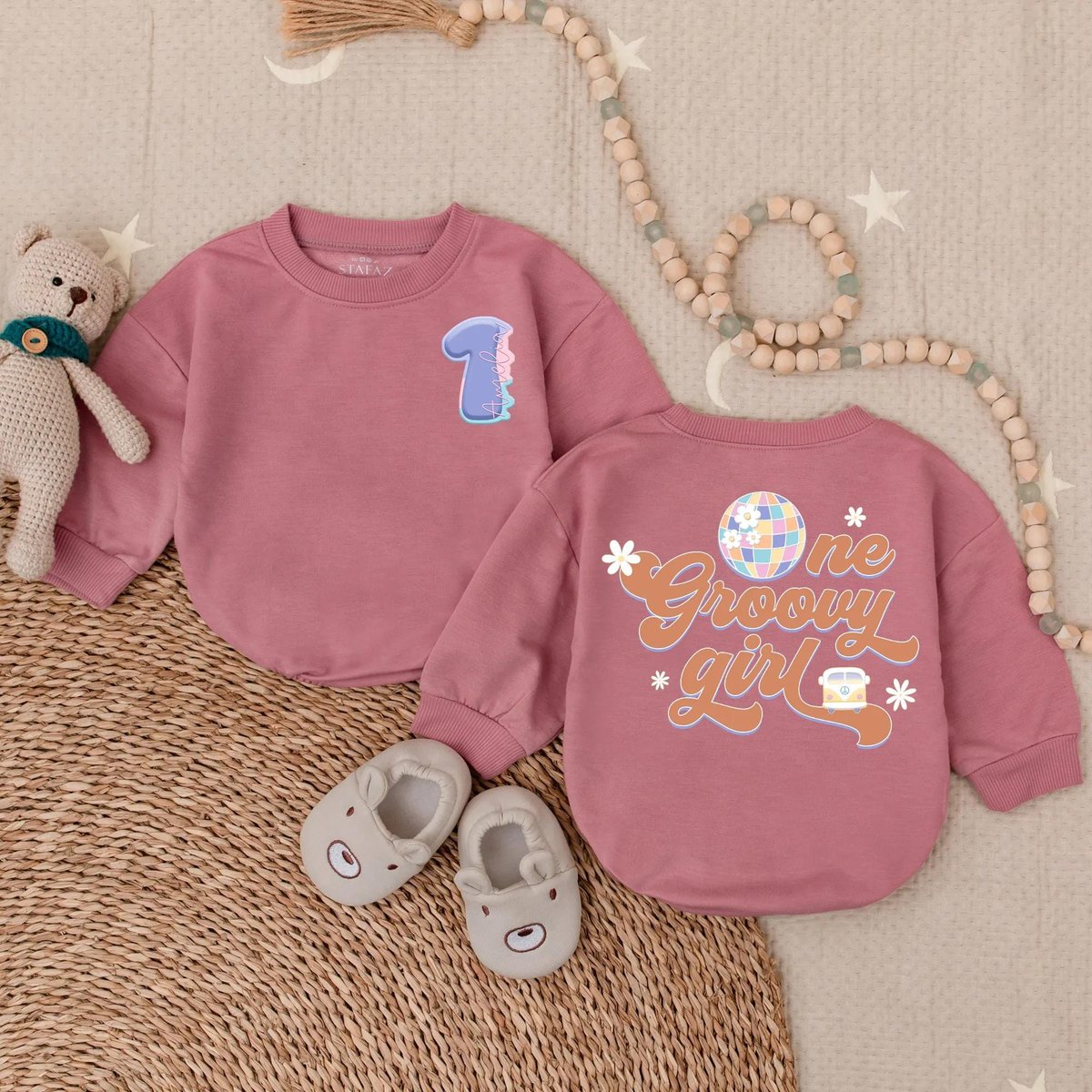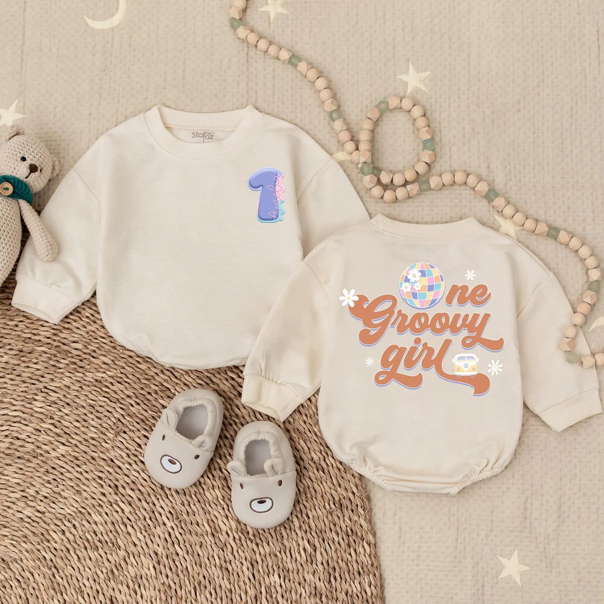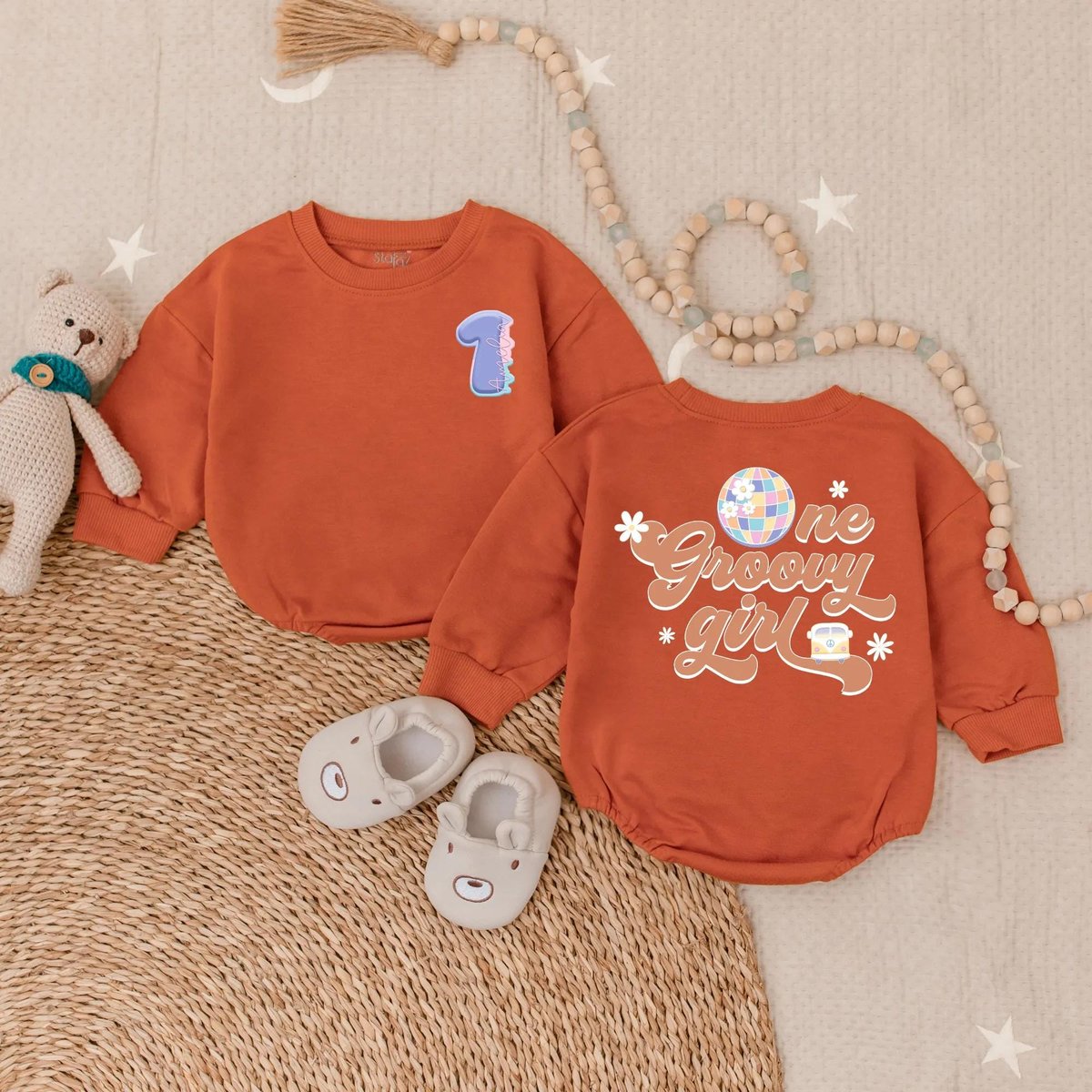 Personalized One Groovy Girl Bubble Romper Hippie Birthday Bodysuit First Birthday Outfit Baby Girl