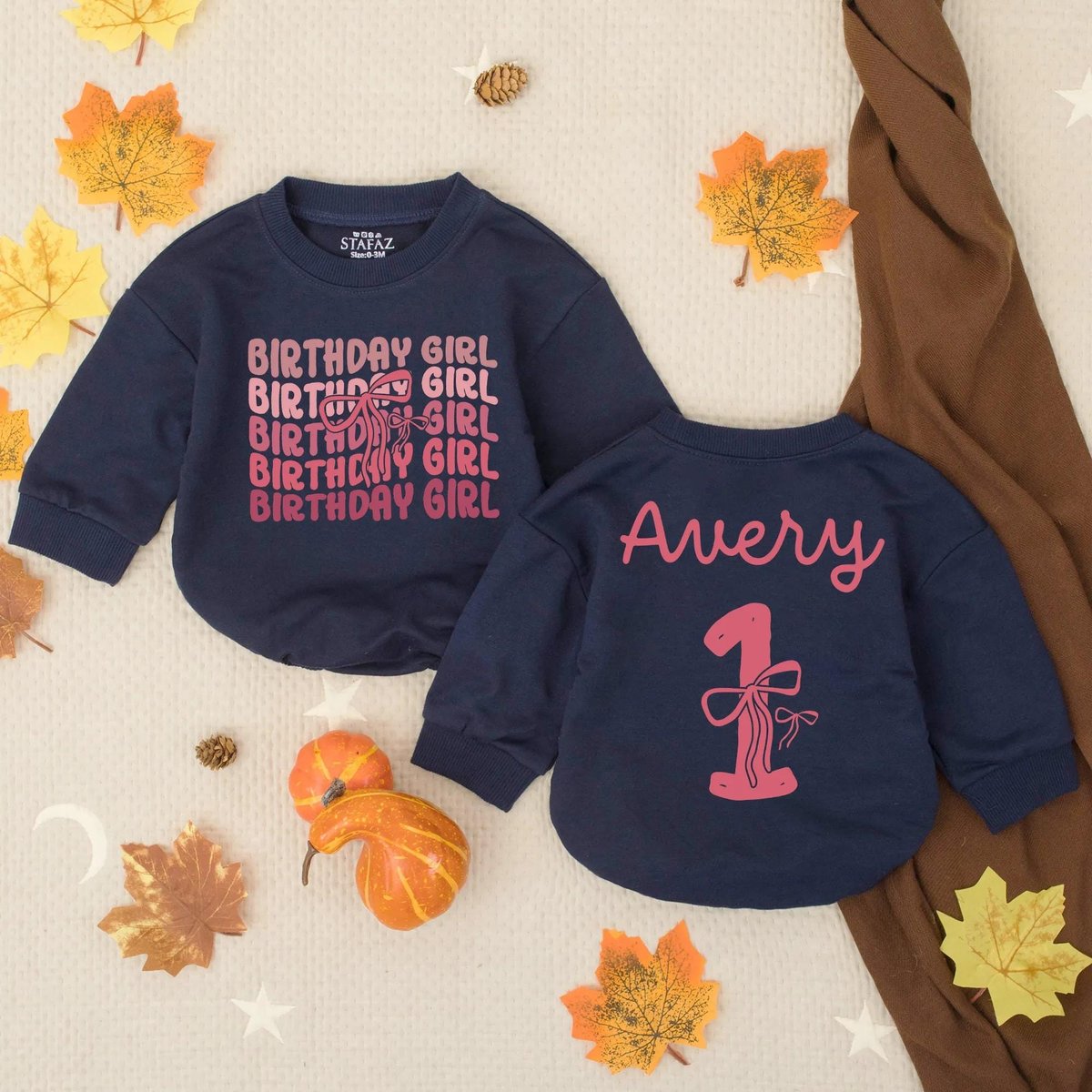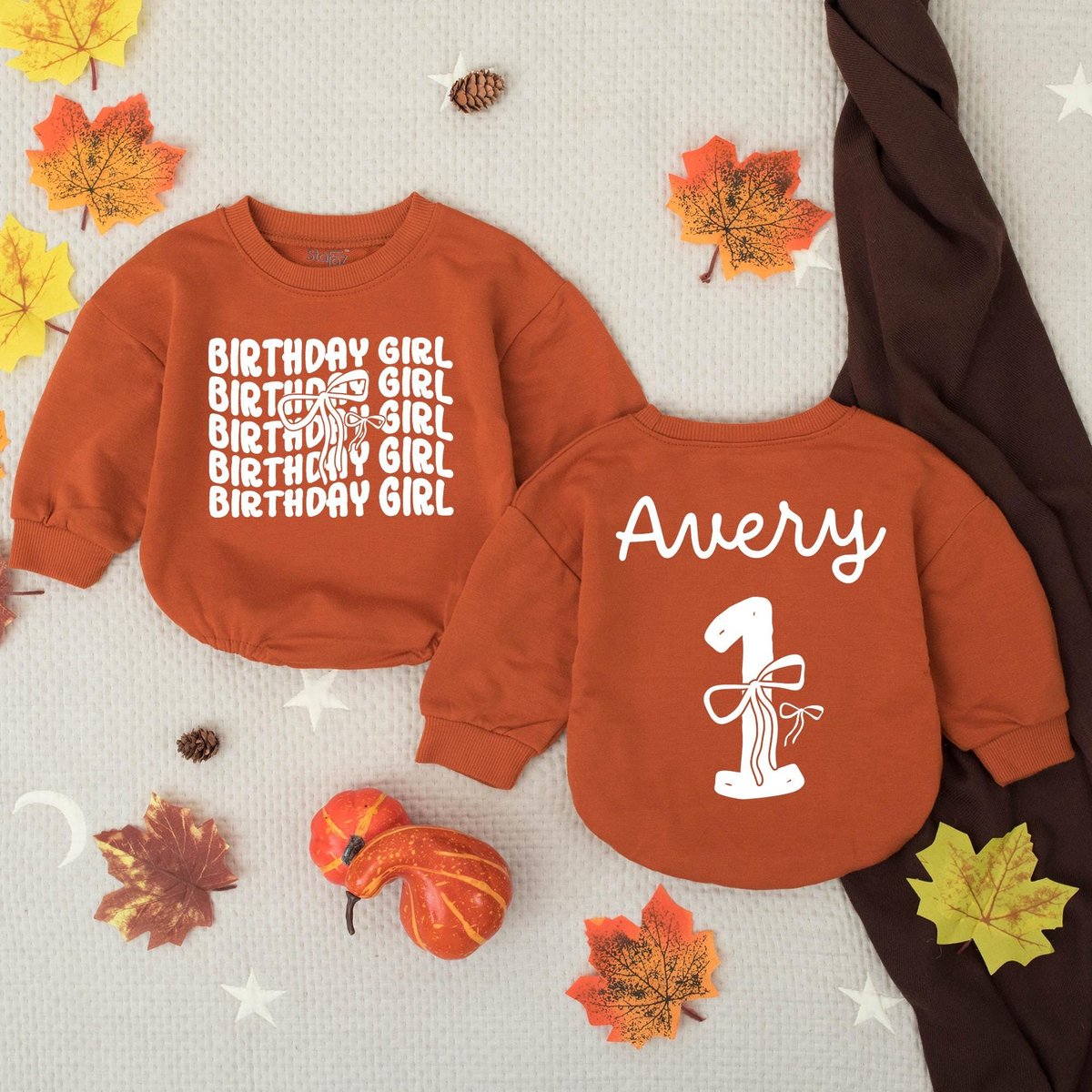 Personalized Pink Bow First Birthday Baby Bubble Romper Birthday Girl Clothes Girly Birthday Party