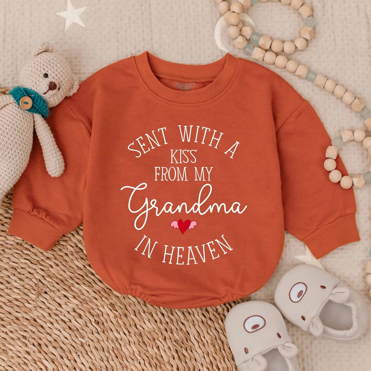 Personalized Sent With A Kiss From My Grandma In Heaven Bubble Romper New Grandbaby Bodysuit Baby An