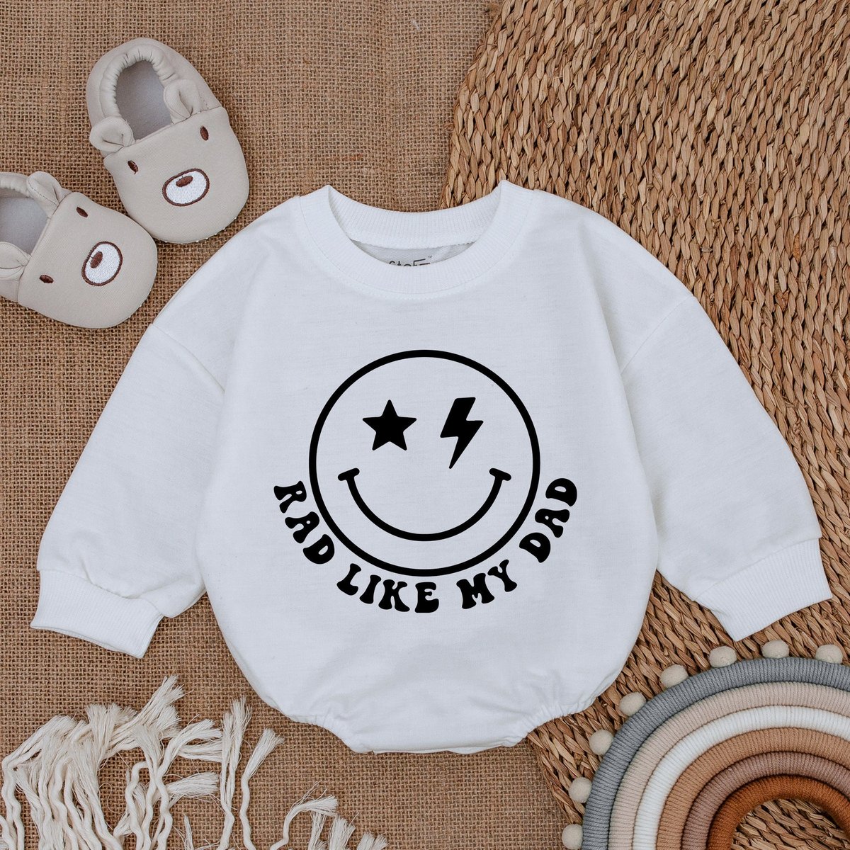 Rad Like Dad Baby Romper Sweatshirt Bubble Romper Baby Boy Clothes Father’s Day Outfit Baby