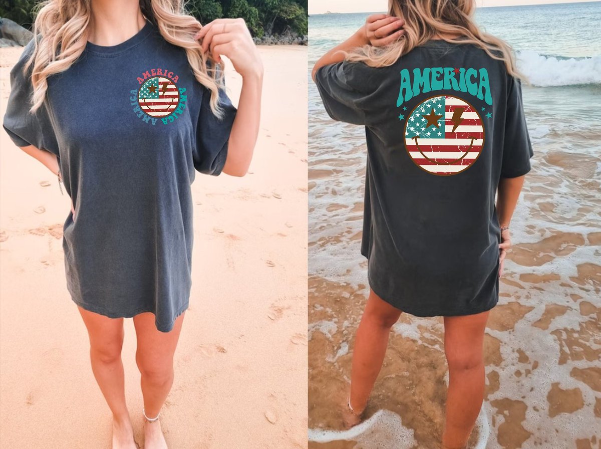 Retro America Shirt Oversized Tshirt July 4th Beach Shirt Lounge Comfort Shirt Weekend Lake Shirt Fu