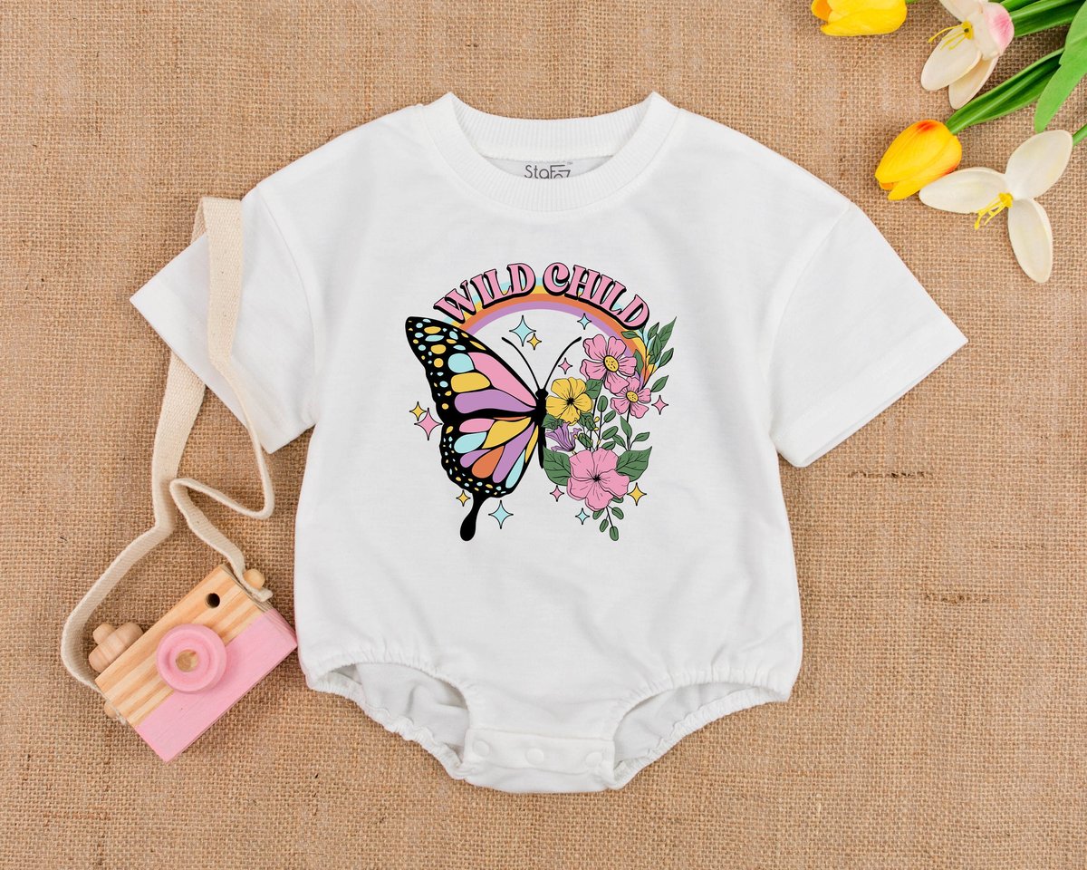Retro Butterfly Bubble Romper Hippie Baby Romper Groovy Baby Girl Outfit Vintage Baby Romper B