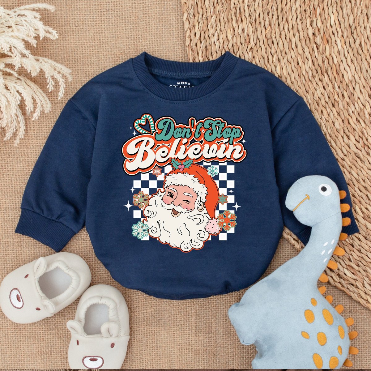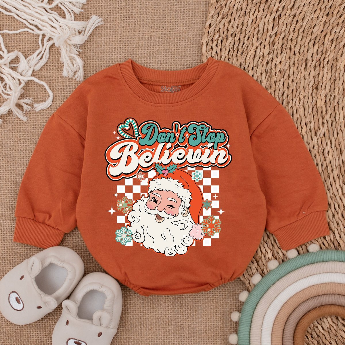 Retro Santa Baby Romper My First Christmas Christmas Bodysuit Baby Christmas Outfit Oversized Long S
