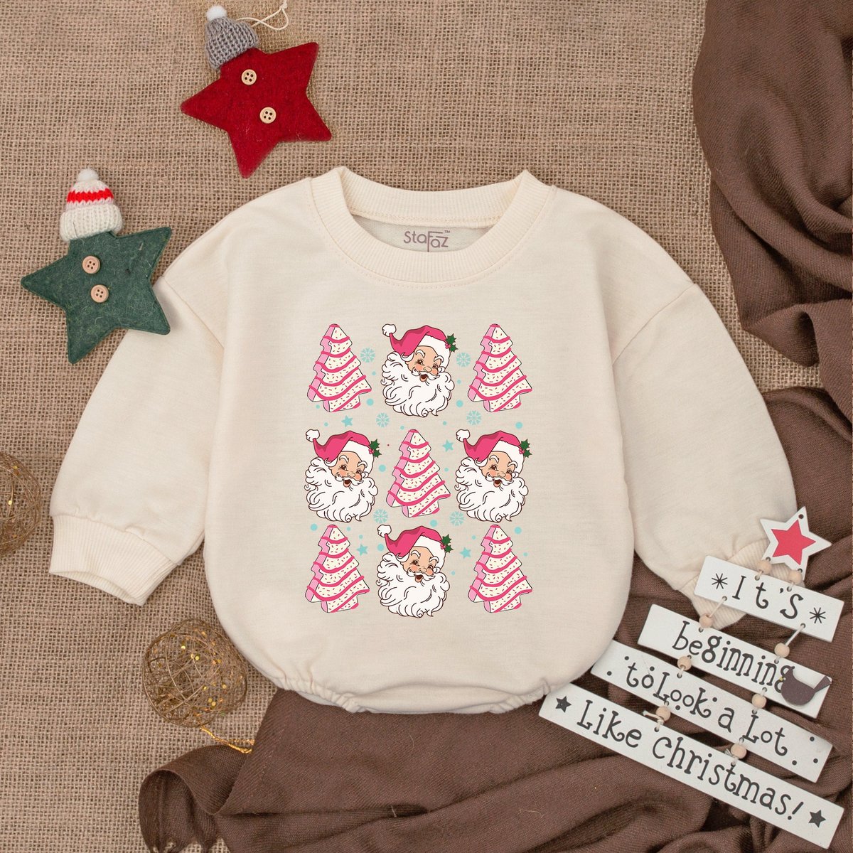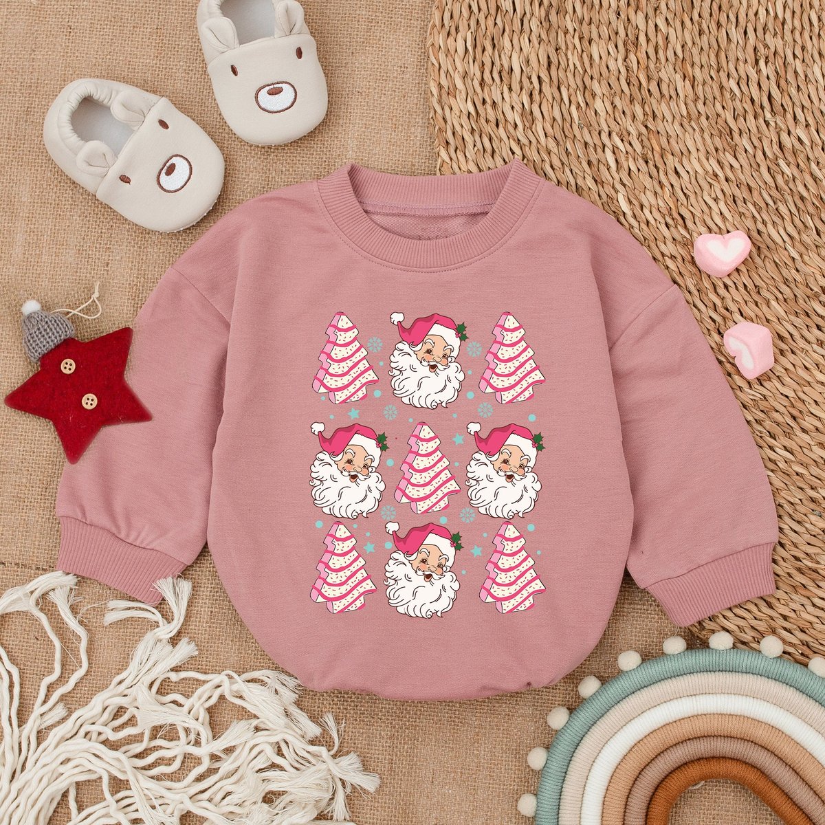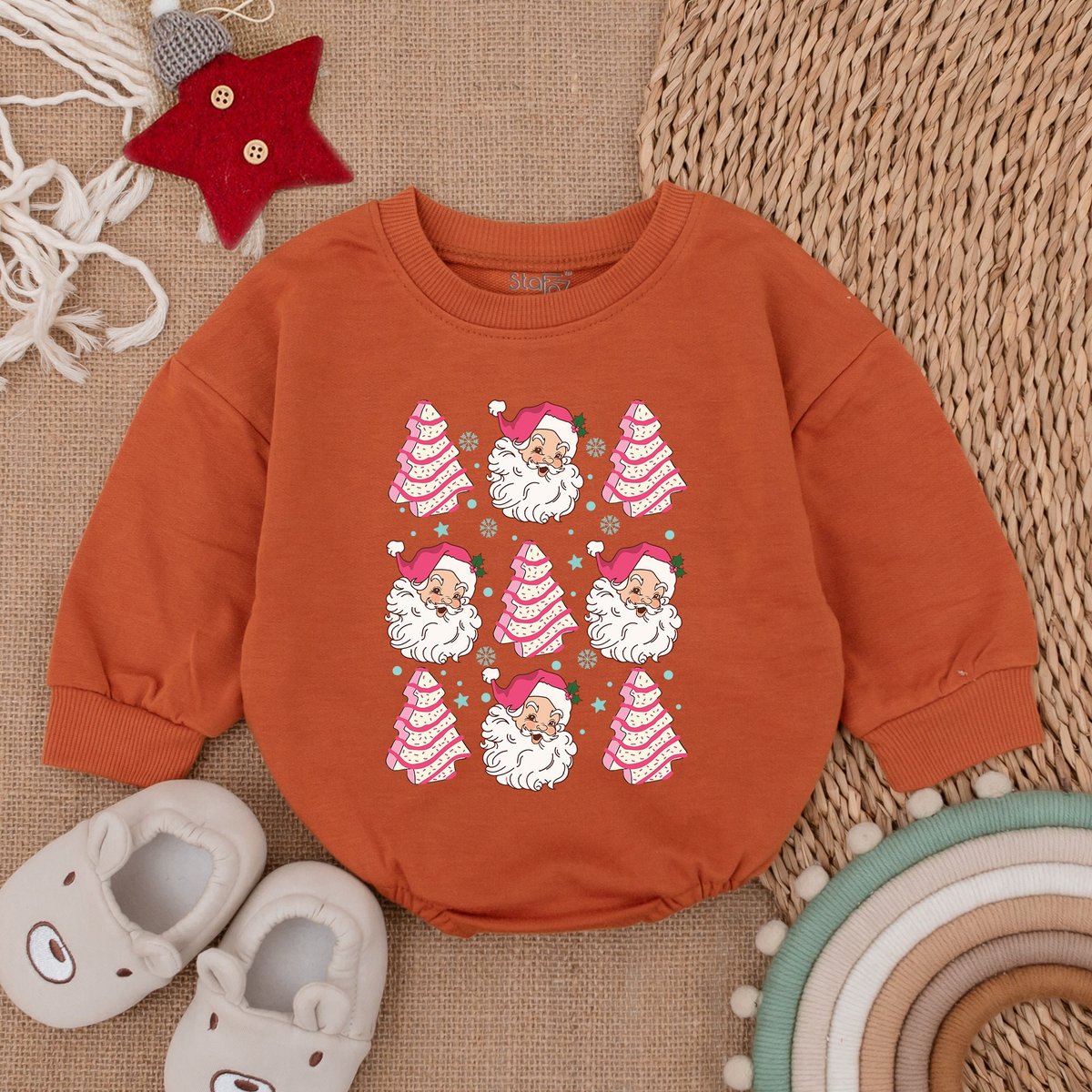 Retro Santa ClothesMerry Christmas Baby Romper Christmas Bodysuit Baby Outfit Long Sleeve Bodysuit F