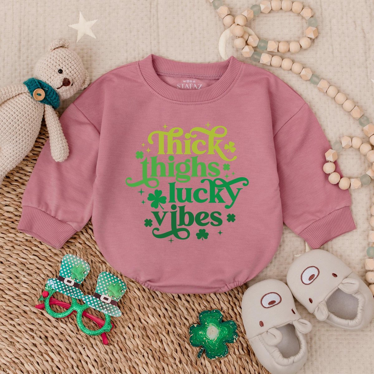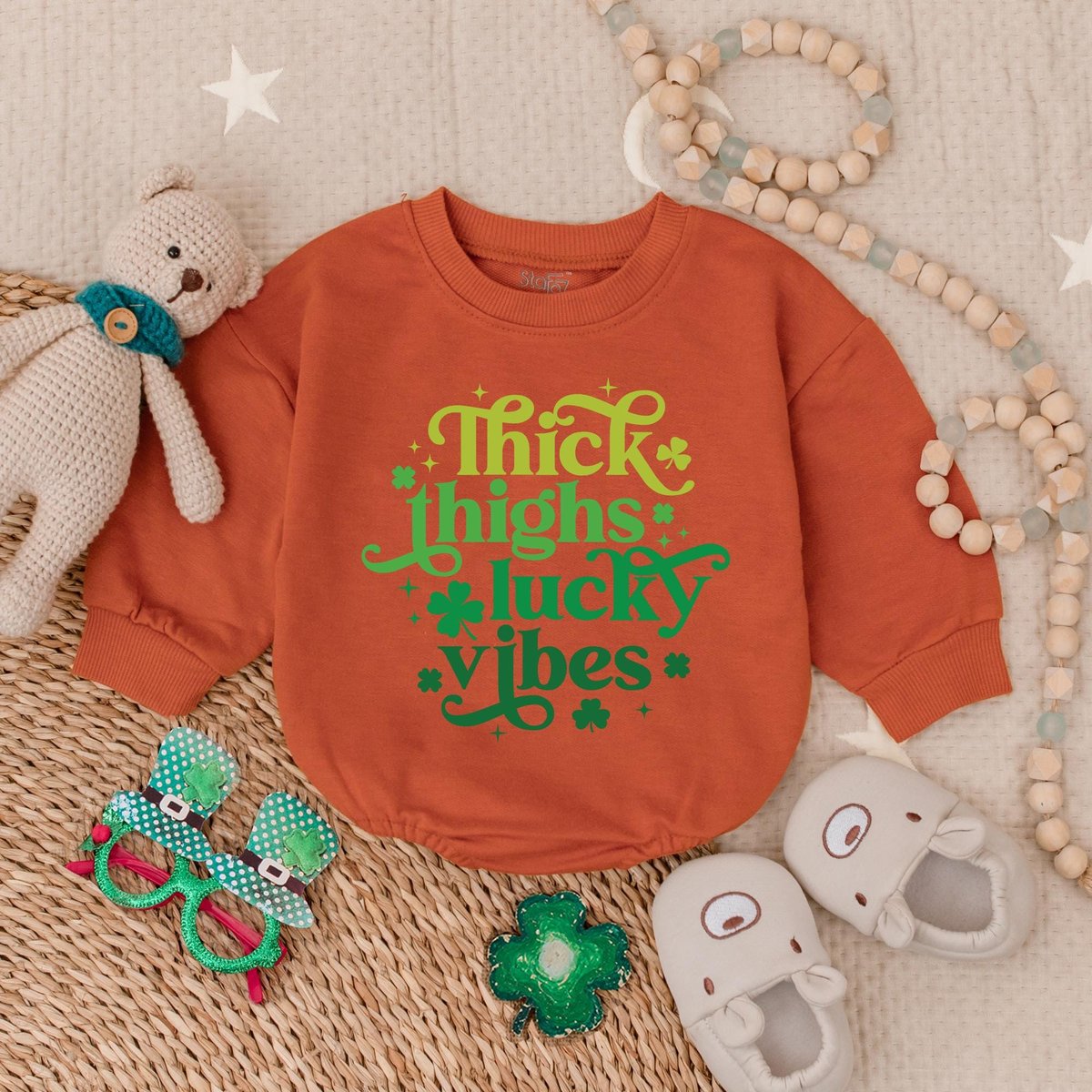 Thick Thighs Lucky Vibes Baby Romper Lucky Vibes Bodysuit Baby Patrick’s Day Outfit First St Patric