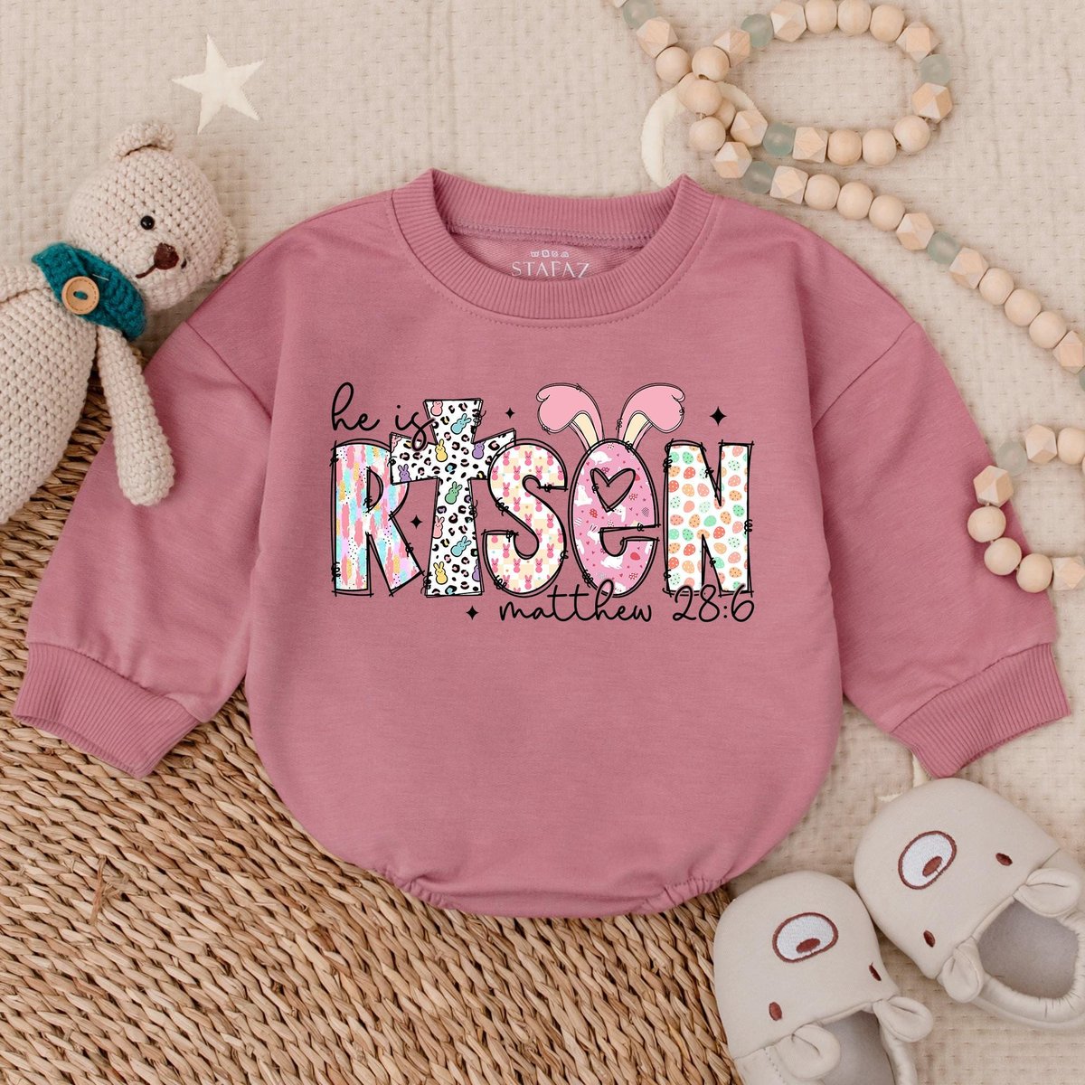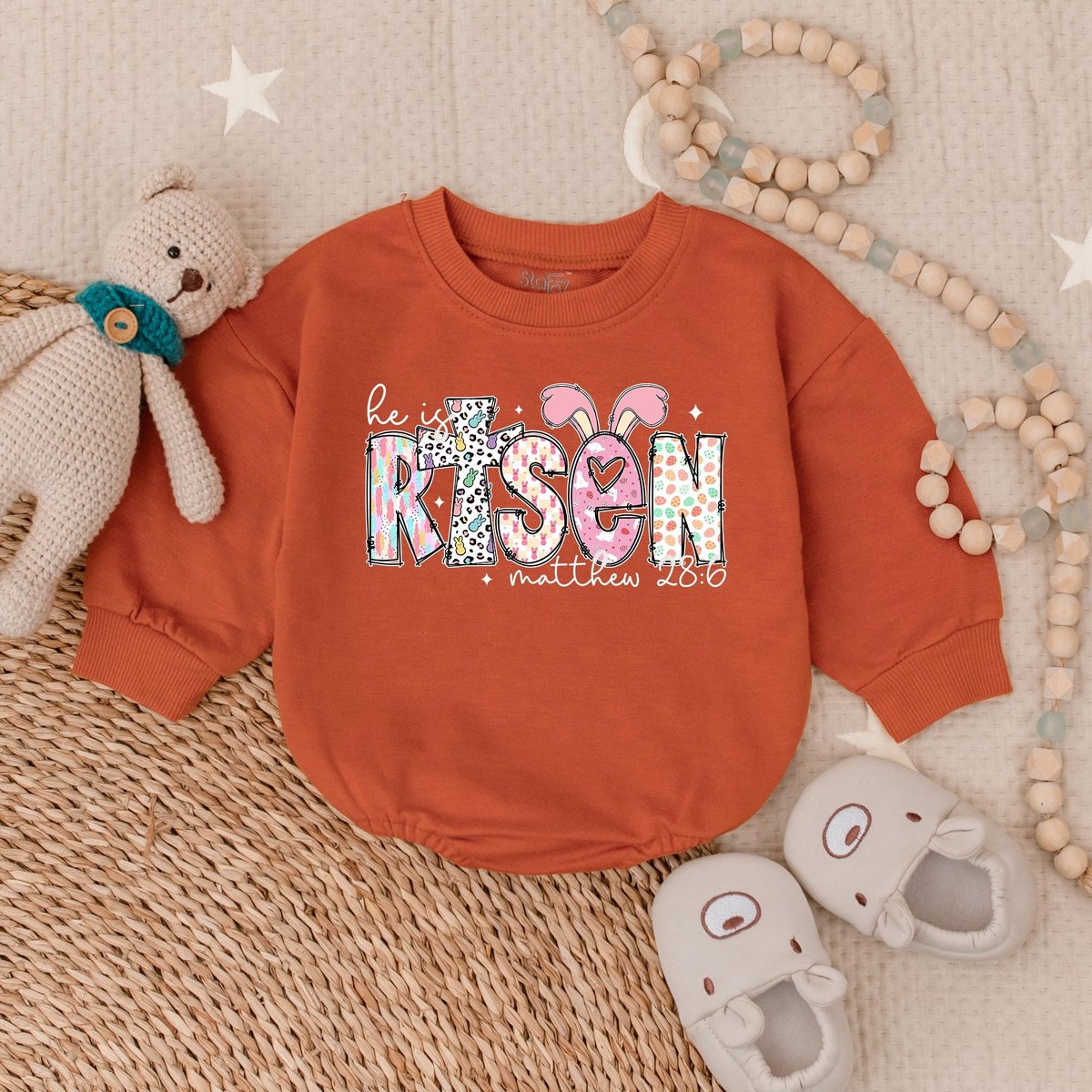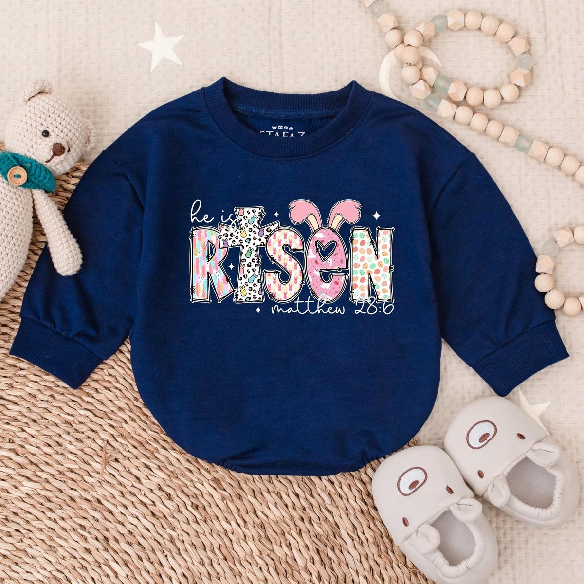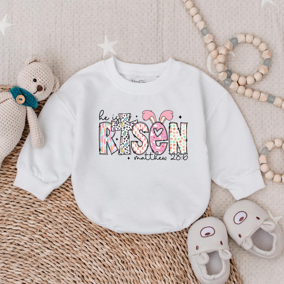 True Story He is Risen Easter Romper Sweater Lamb Crown Baby Christian religious 1st Easter Day Baby