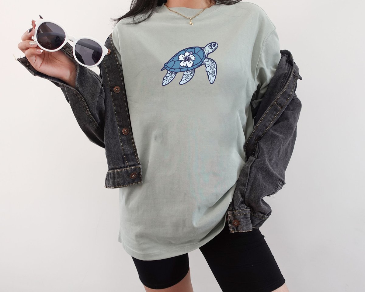 Turtle Ocean Hibiscus Flower T Shirt Beach Tshirt Beach Bum T shirt Ocean Shirt Beach T Shirt Summer