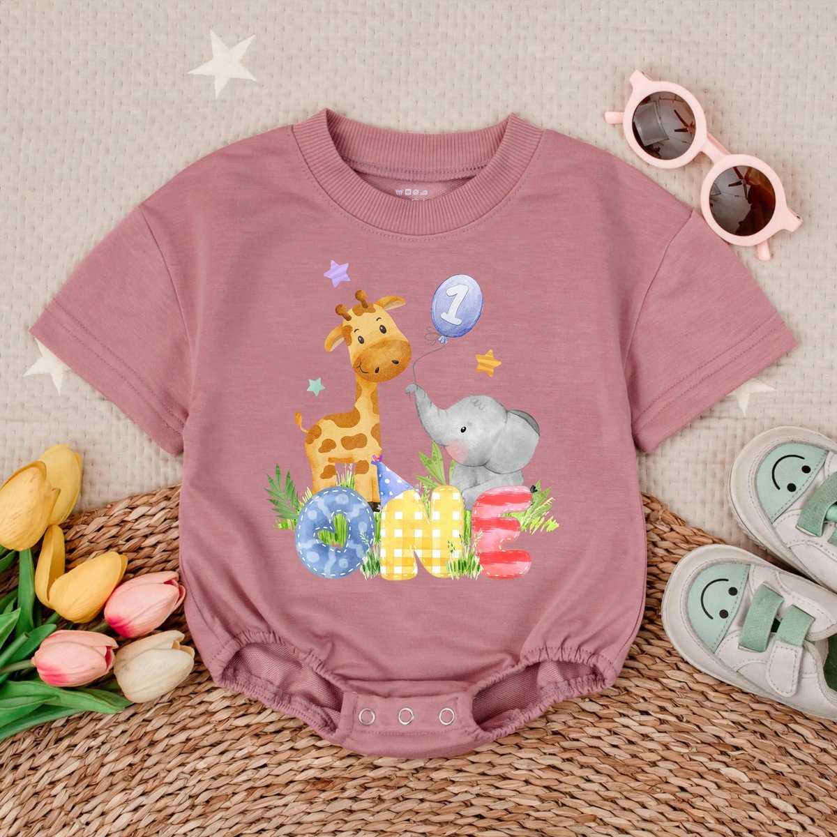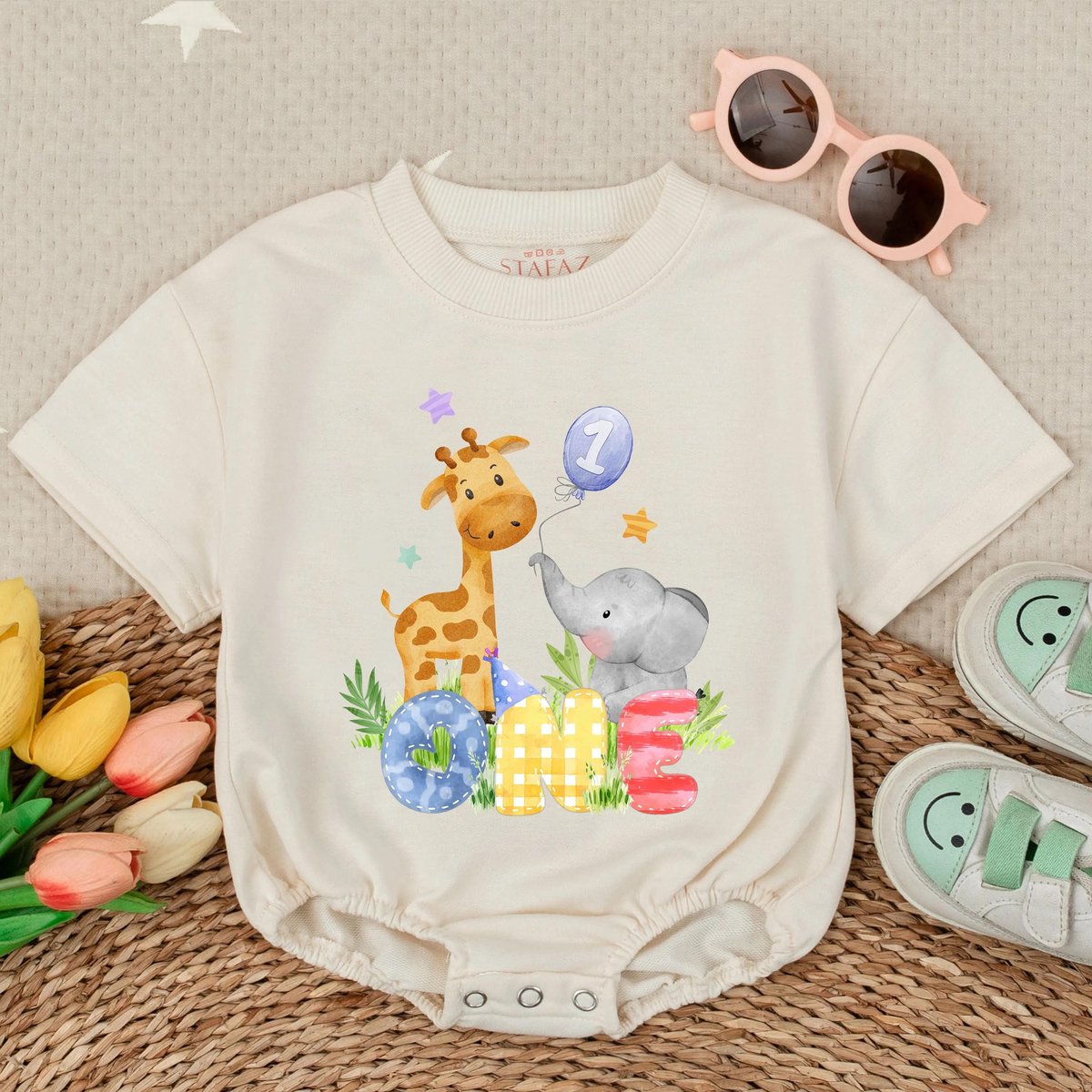 Wild One Safari Animals Zoo Clothes 1st Birthday Boy Short Sleeve Bubble Romper Personalized Toddler