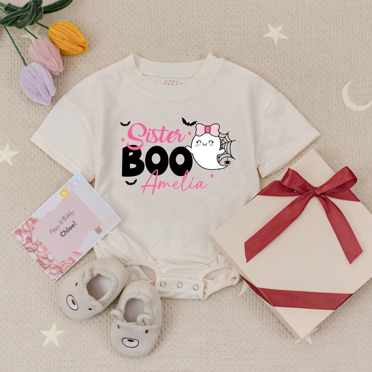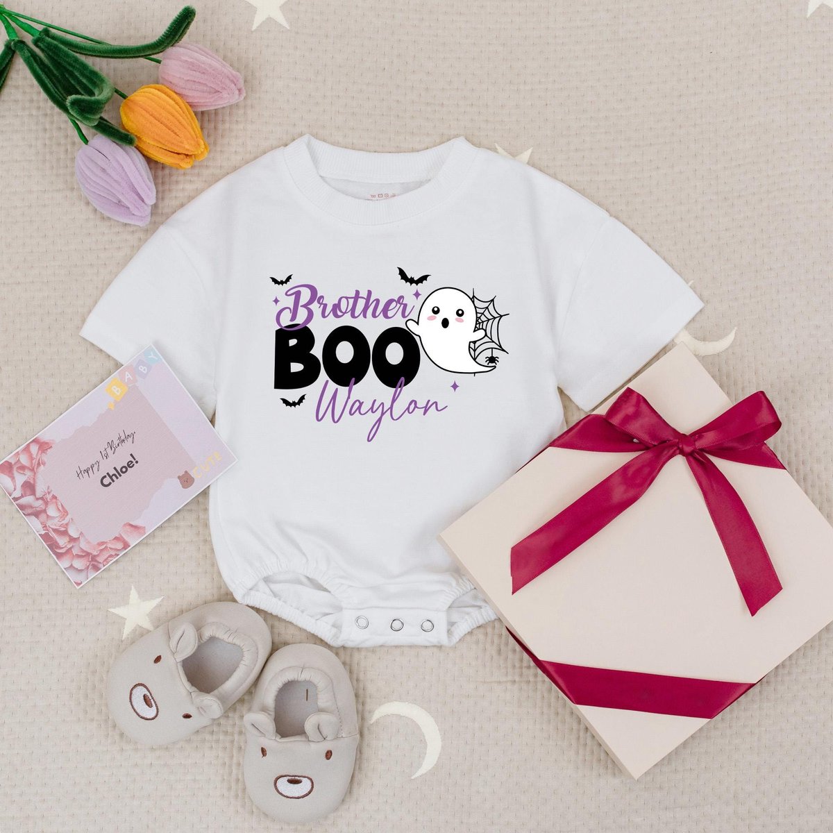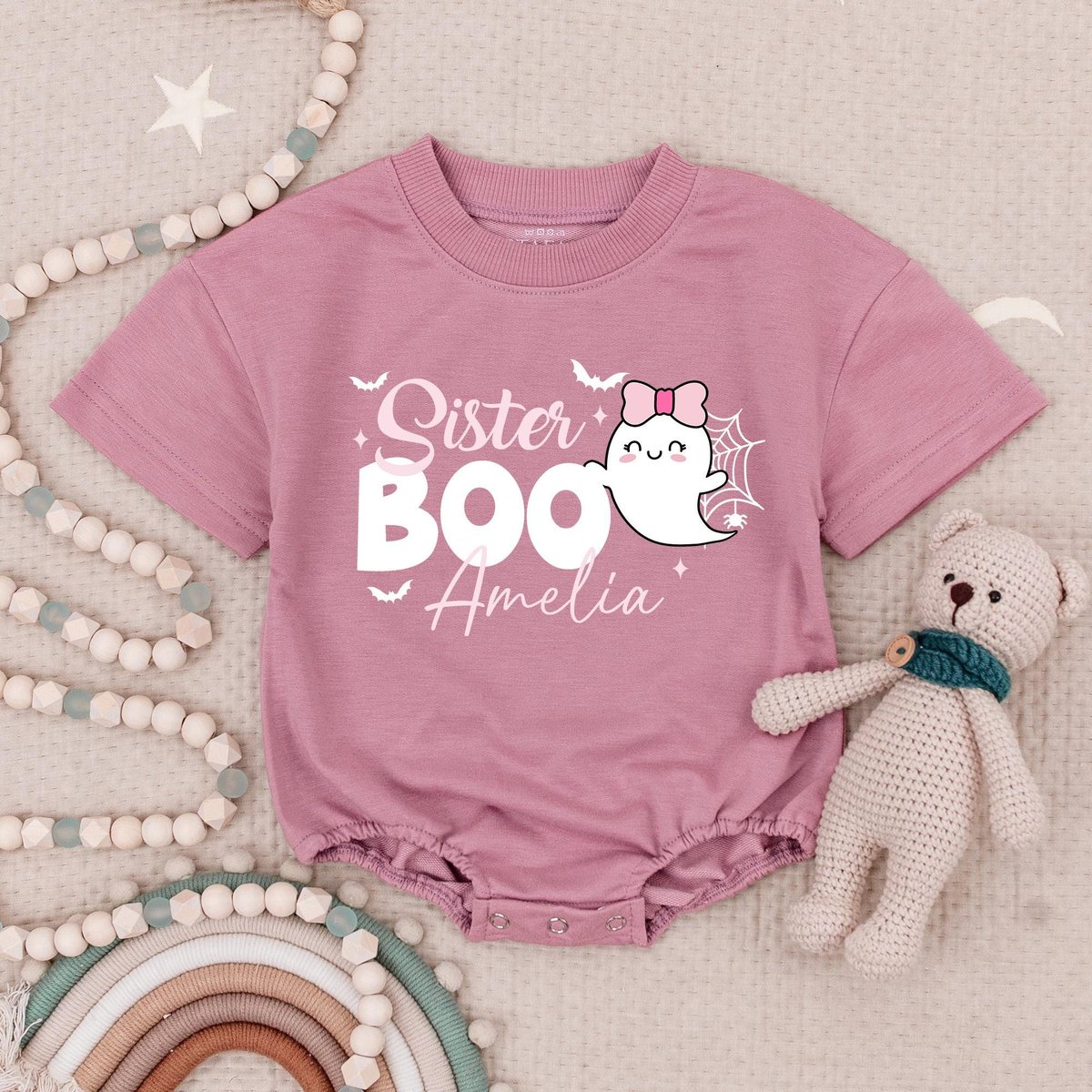 Big Sister Brother Ghost Halloween Sibling Bubble Romper Sis Bro Halloween Boo Baby Romper Matching