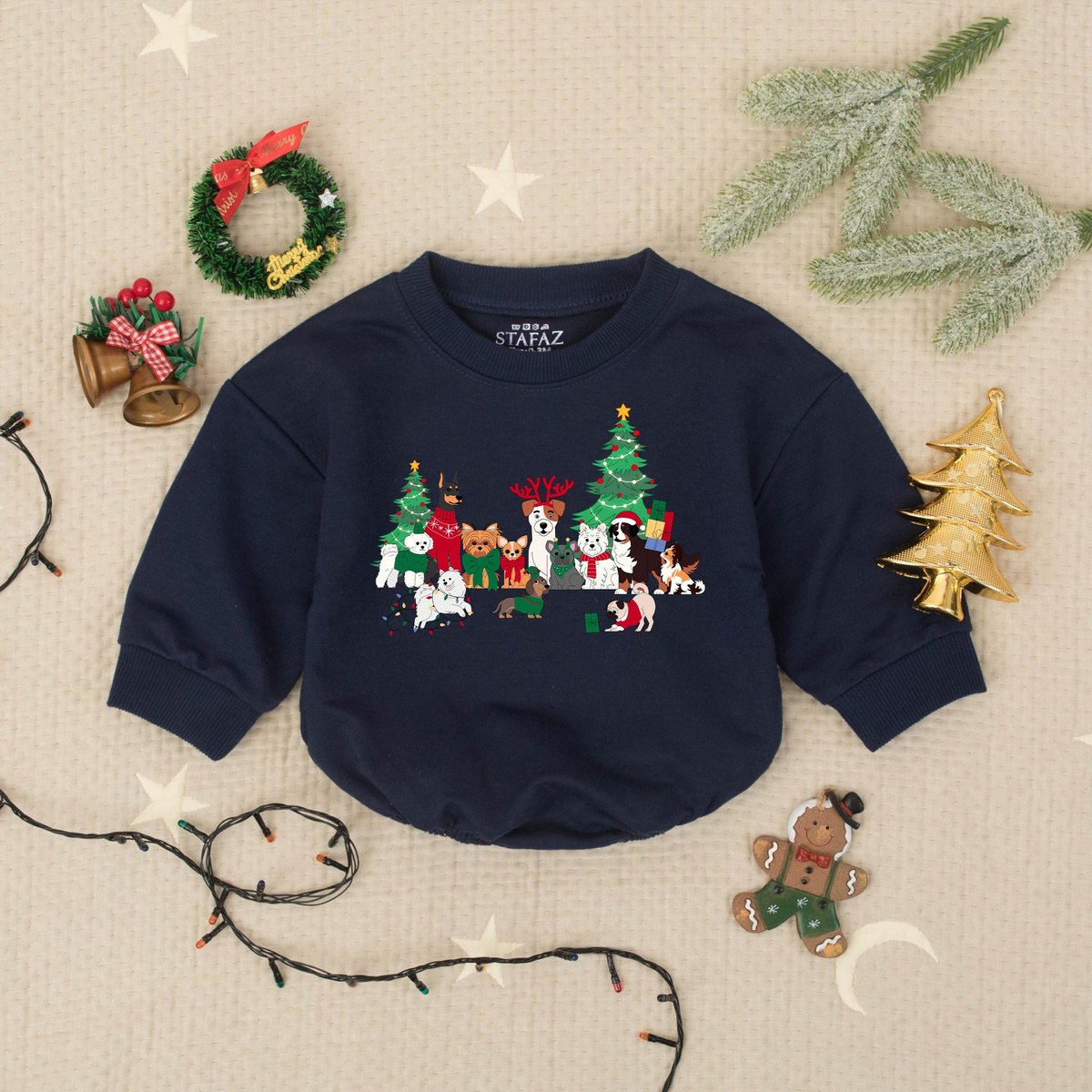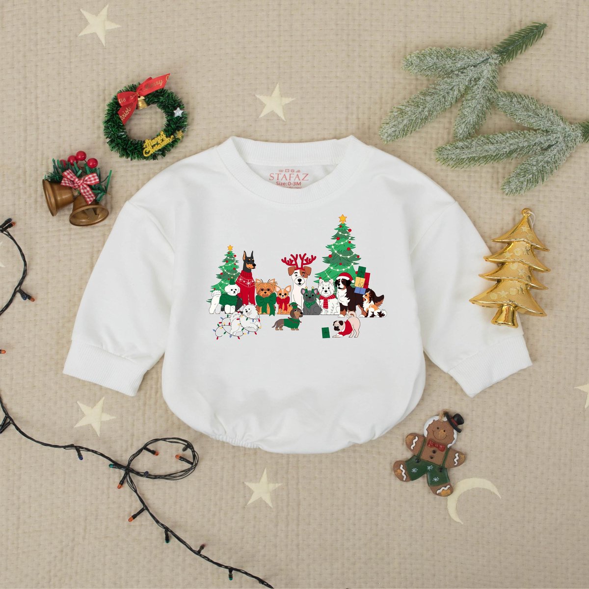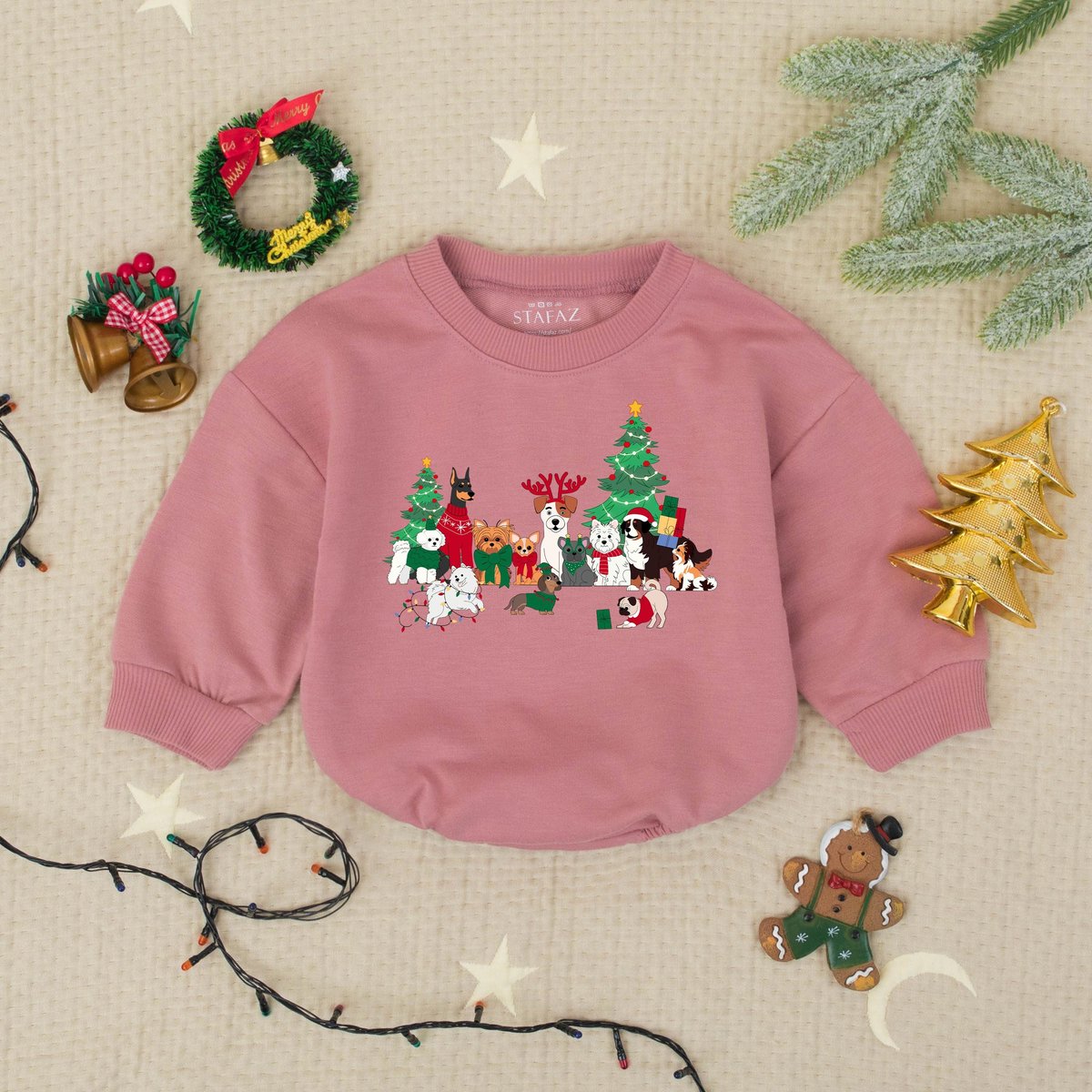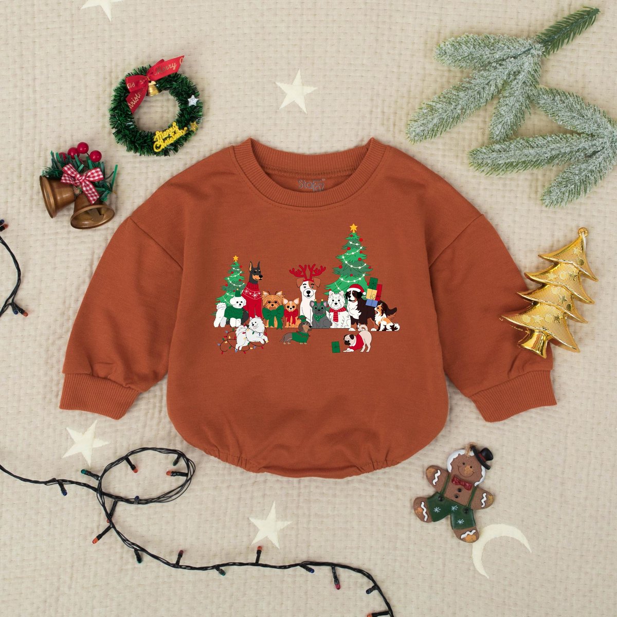 Christmas Dogs Cute Bubble Romper Dog Lover Holiday Baby Romper Cute Xmas Gift for Pet Lovers Dog Mo