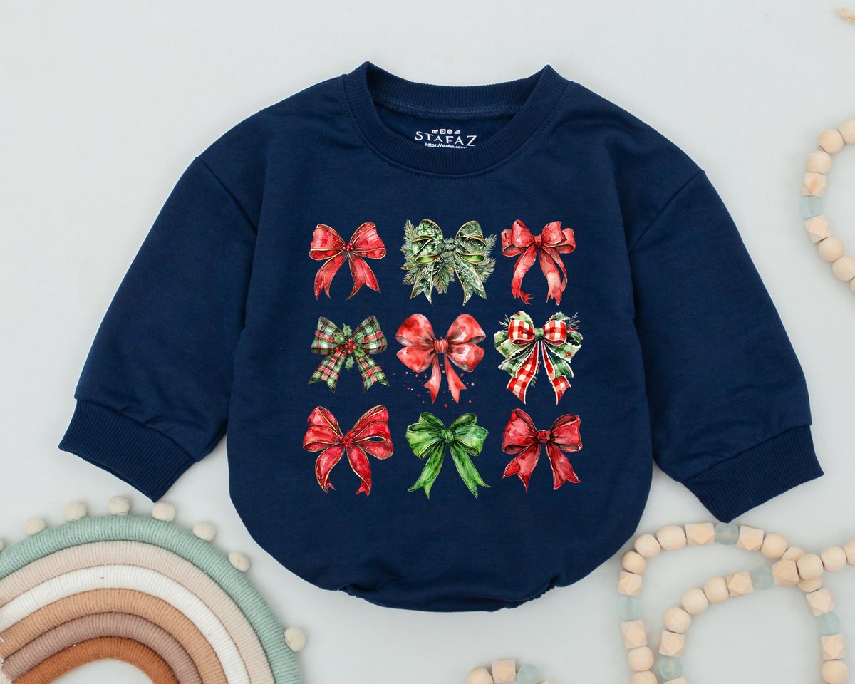 Christmas Girly Bow Baby RomperFirst Christmas Baby Girl ClothesToddler SweatshirtBaby BodysuitBaby