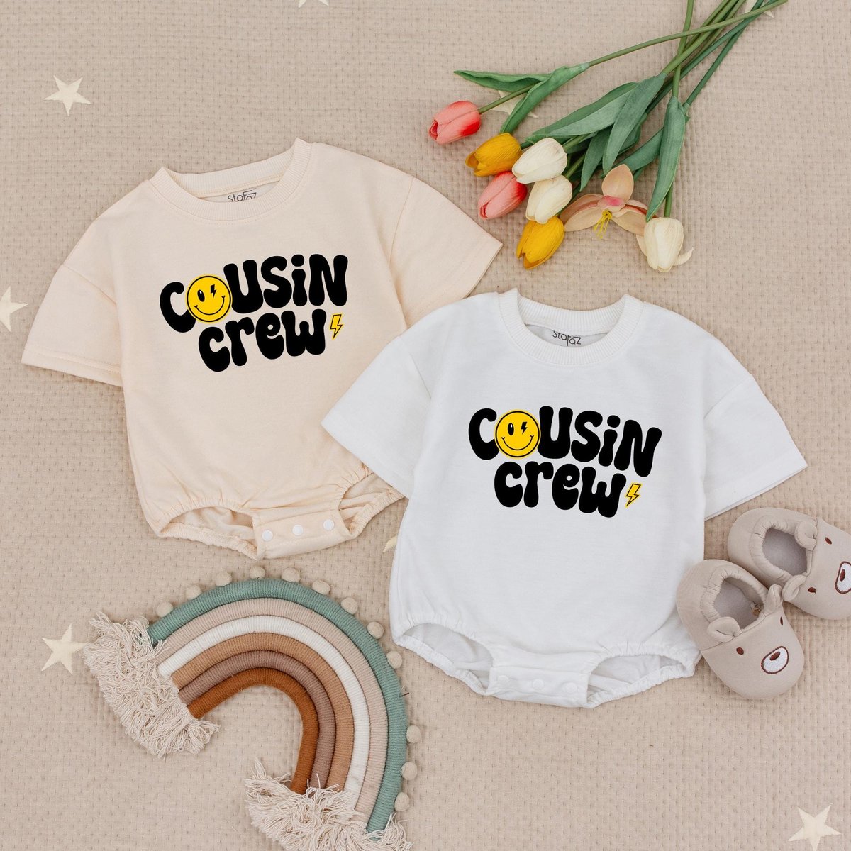 Cousin Crew Smiley Face Baby Romper Retro Cousin Crew Kids Shirt – Cute Matching Cousins Natural Bab