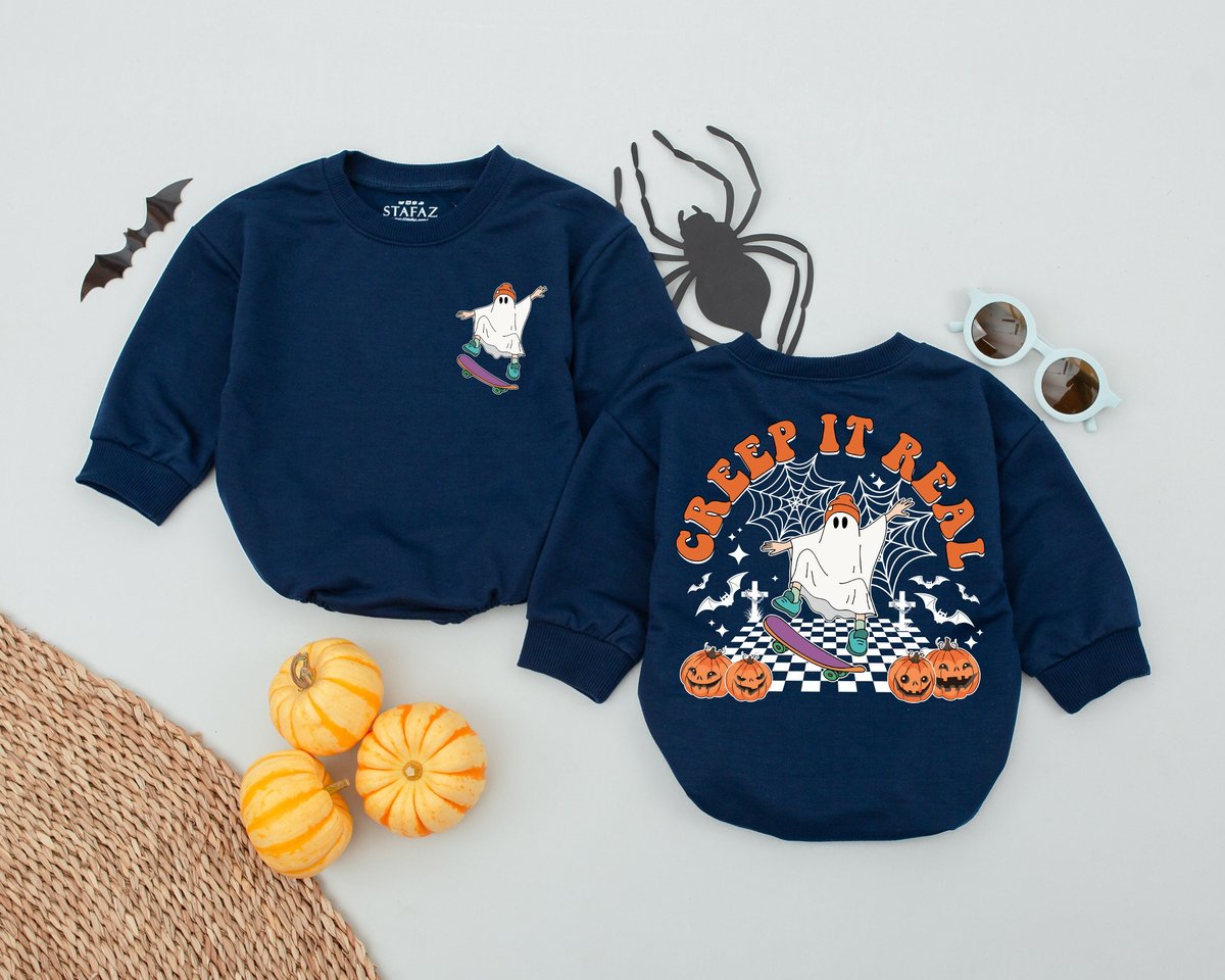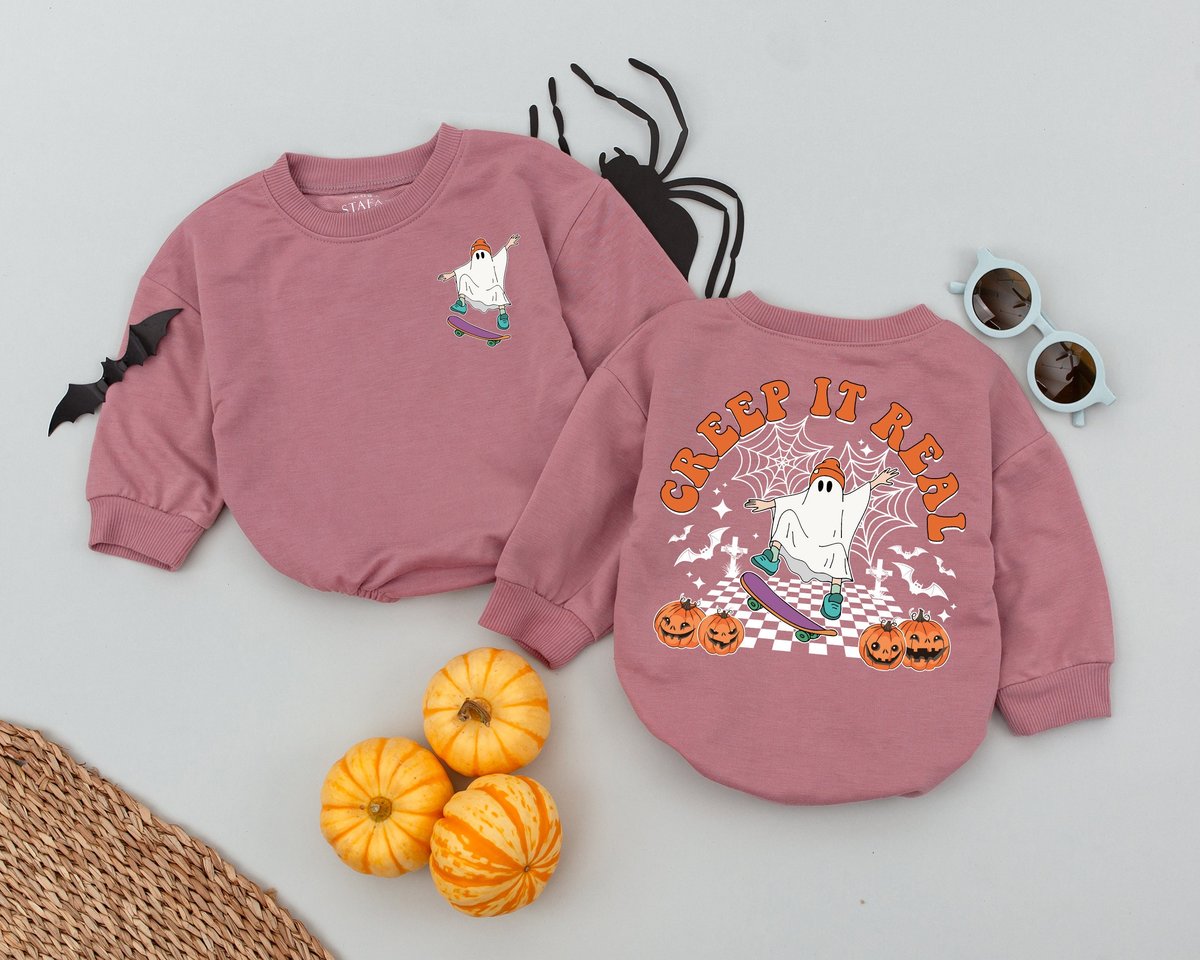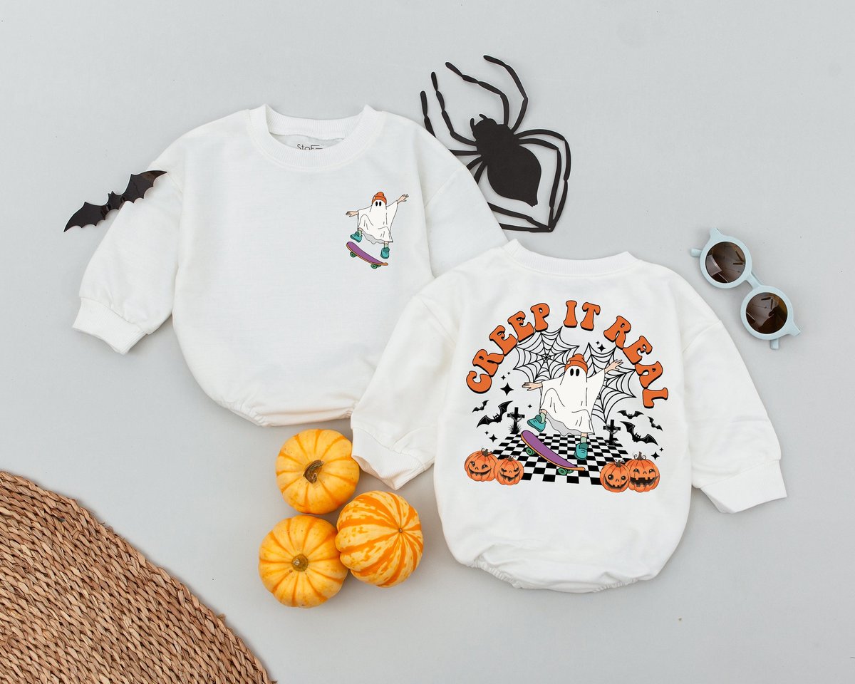 Creep It Real Ghost Baby Romper Retro Halloween Pumpkin Season Halloween Baby Boys Girls Outfit Firs