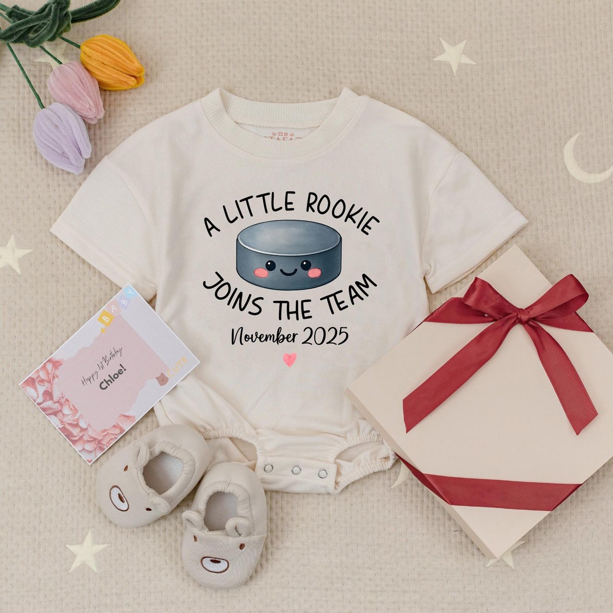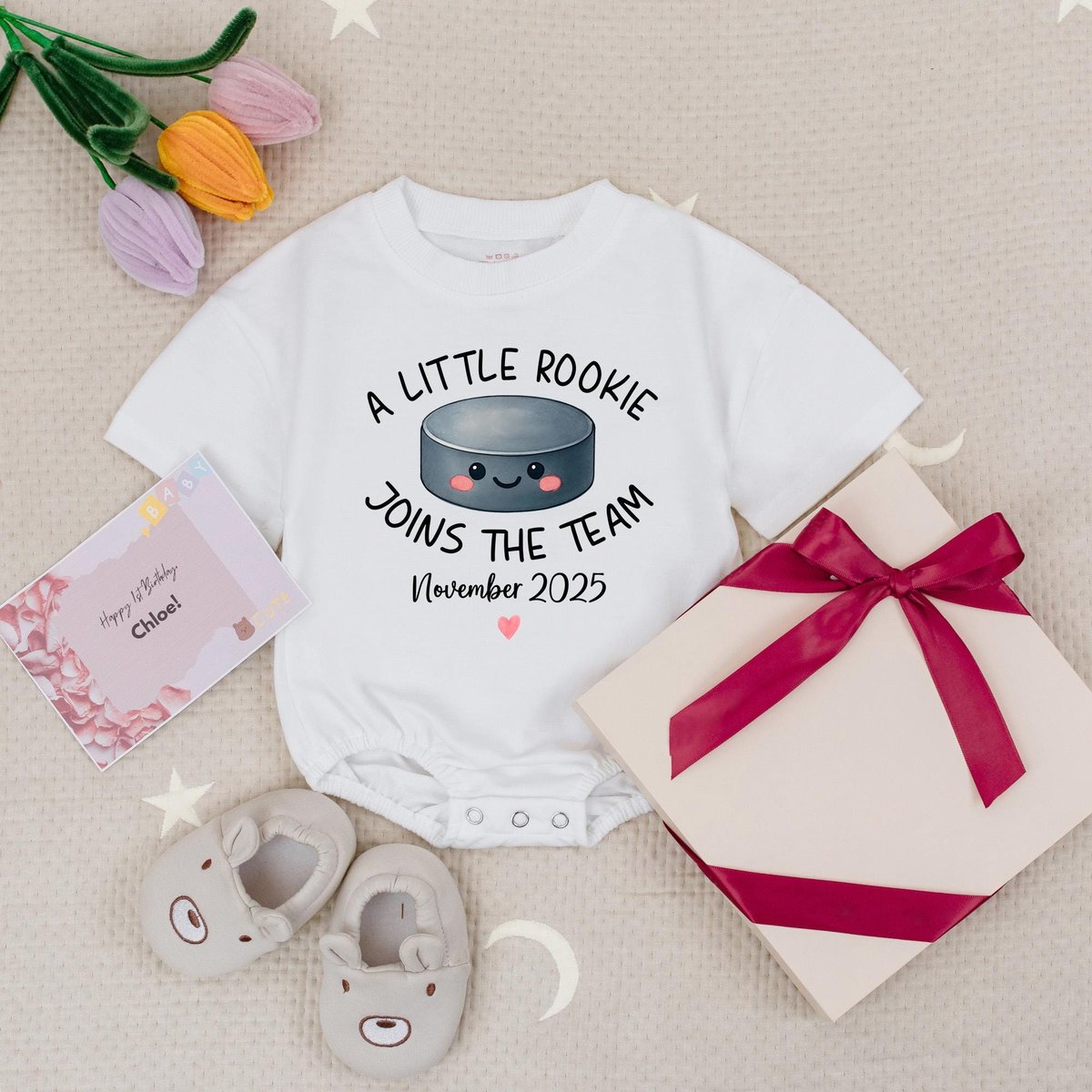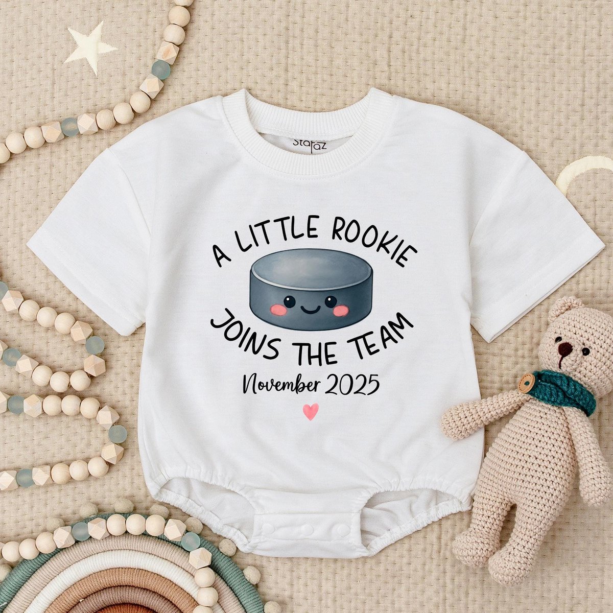 Custom A Little Rookie Hockey Pregnancy Announcement Bubble Romper Hockey Baby Announcement Baby Rev
