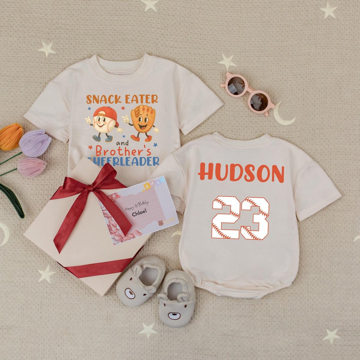 Custom Baseball Cheerleader Baby Romper Brother Baseball Name Number Bubble Romper Little Sibling So