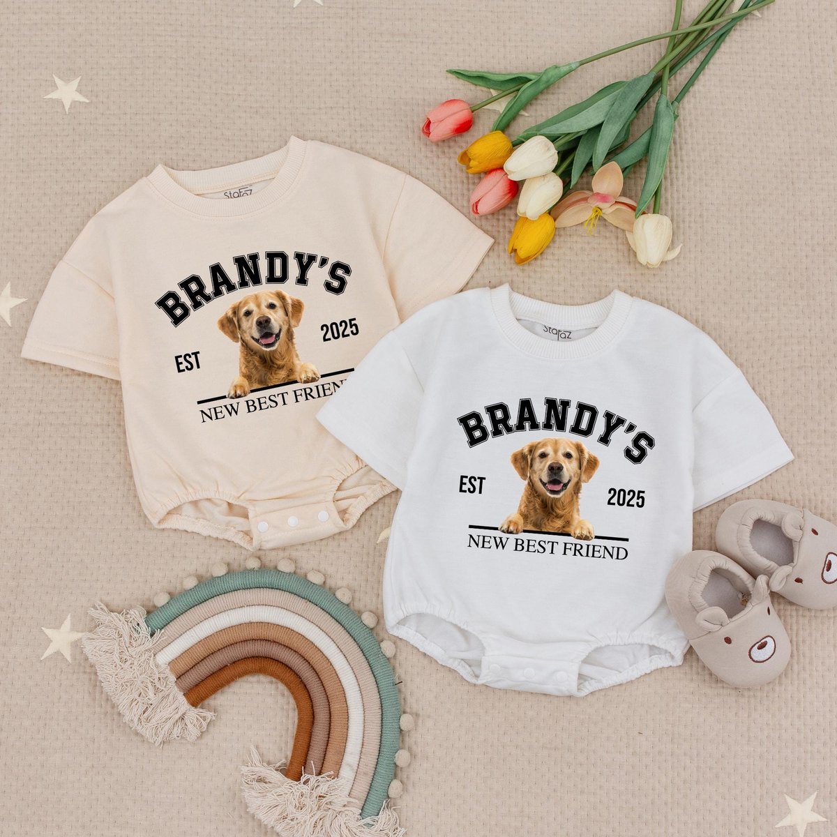 Custom Dogs New Best Friend Romper Baby Personalized Dog Best Friend Newborn Outfit Dog Name Baby Ro