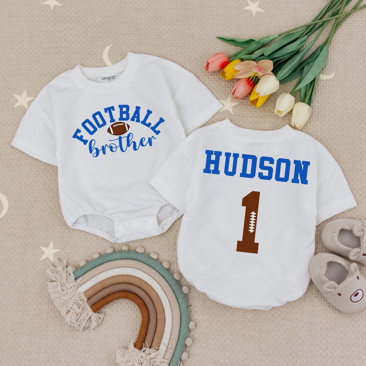 Custom Football Brother Baby Romper That’s My Brother Football Babysuit Football Lil Bro Shirt His