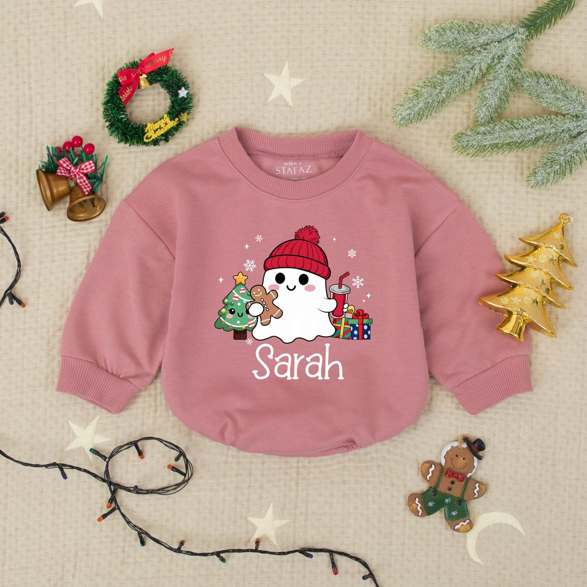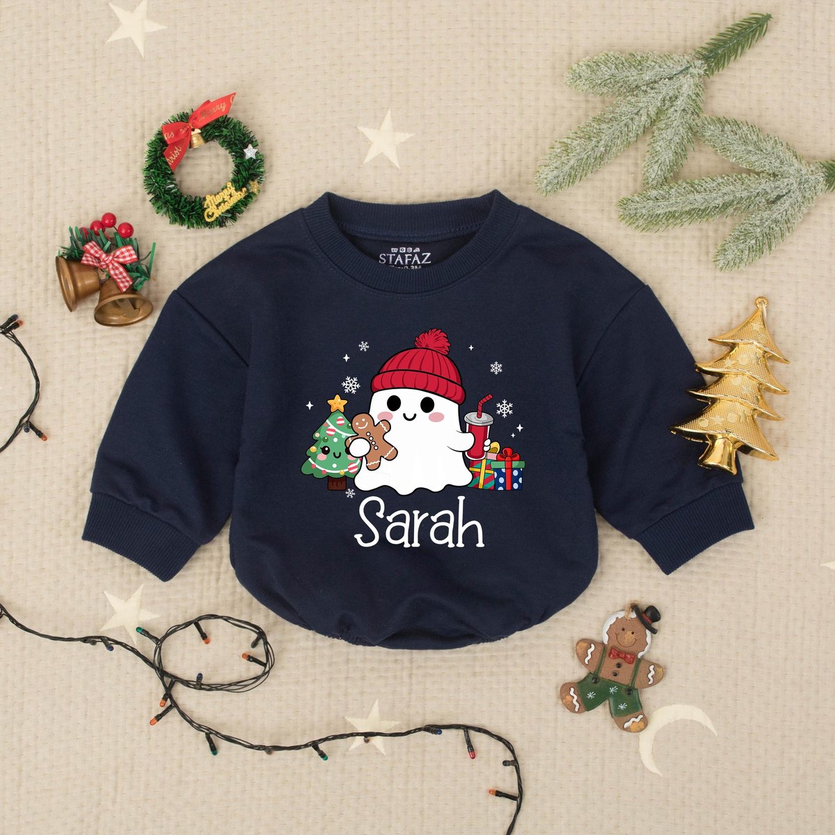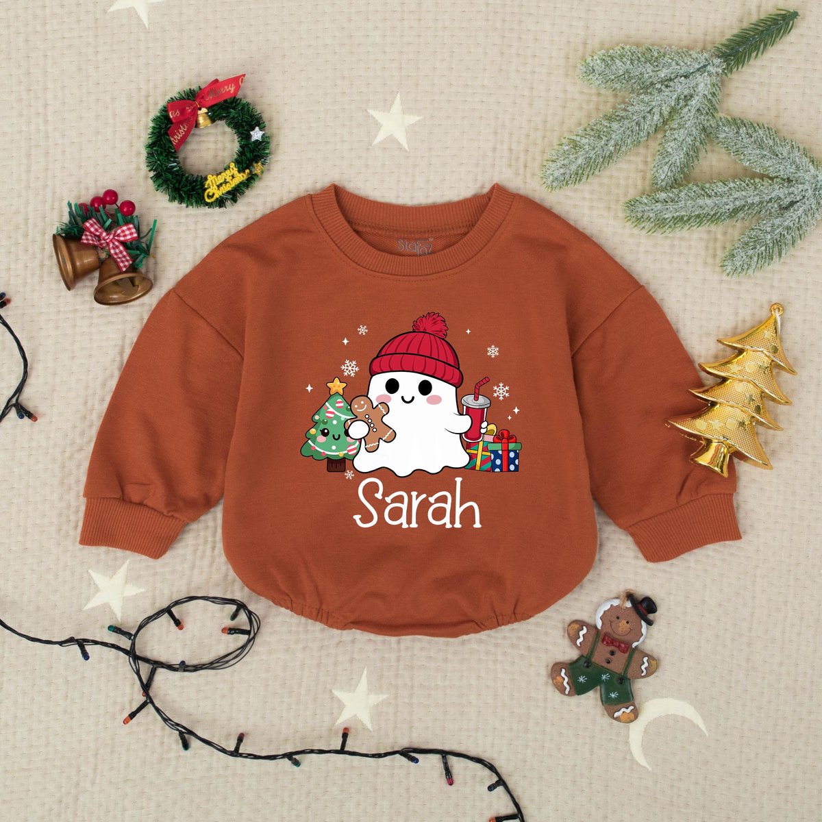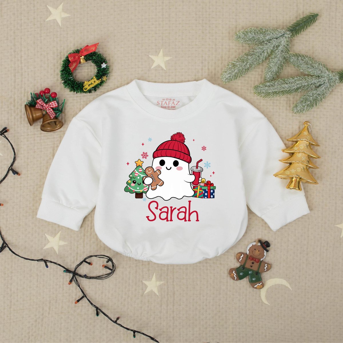 Custom Name Baby Cute Christmas Ghost Baby Bodysuit Holiday Gingerbread Cookie Winter Tee for Kids C