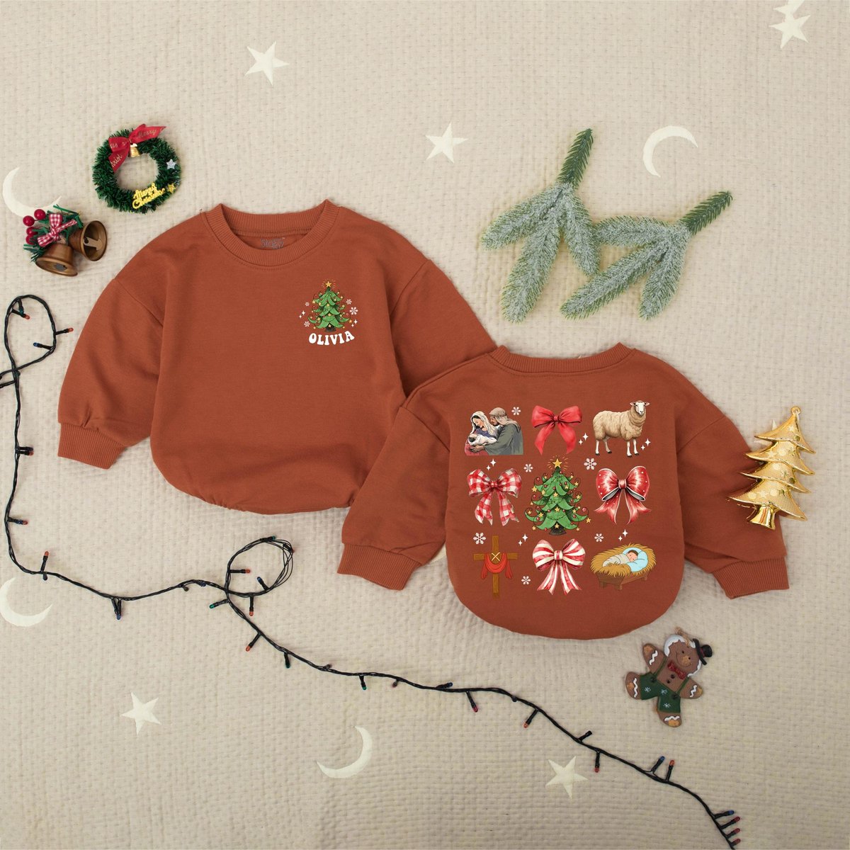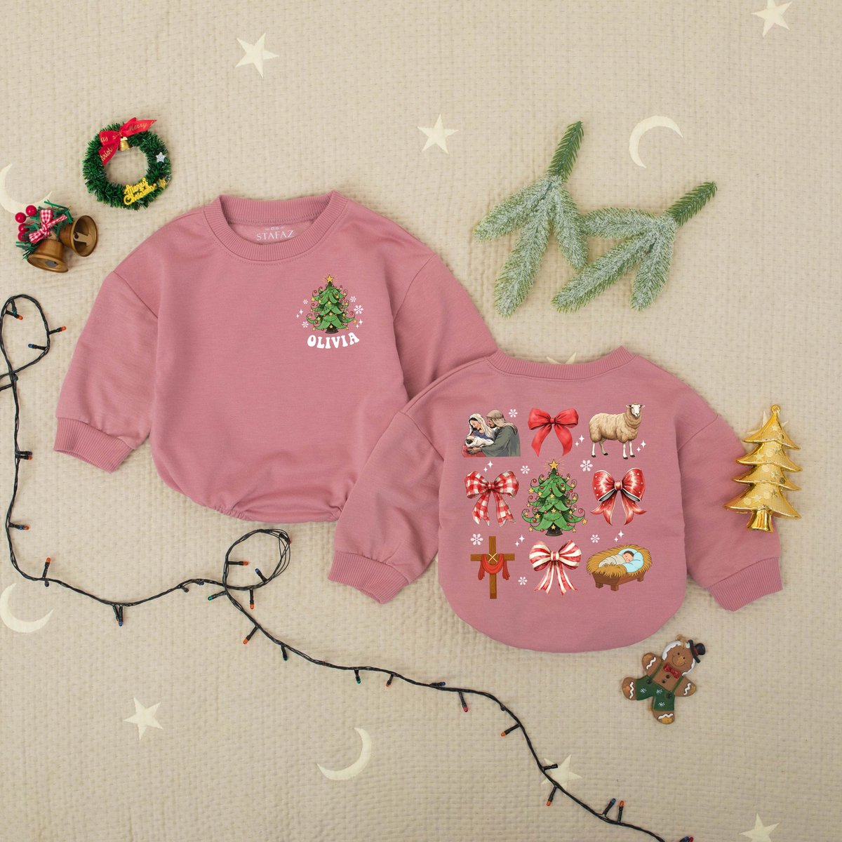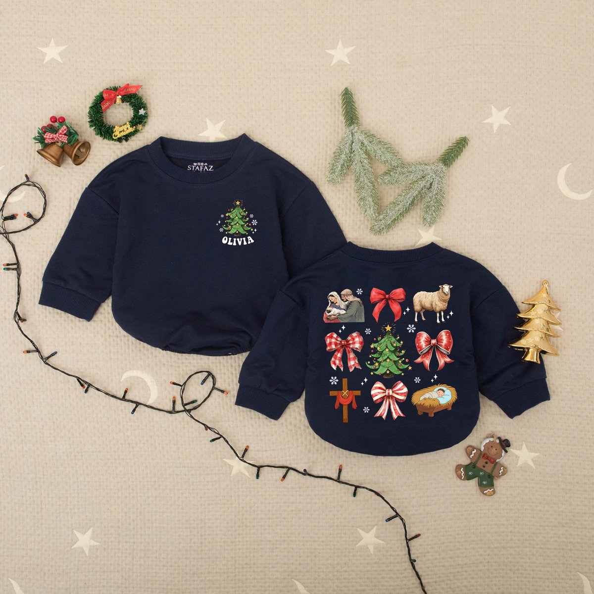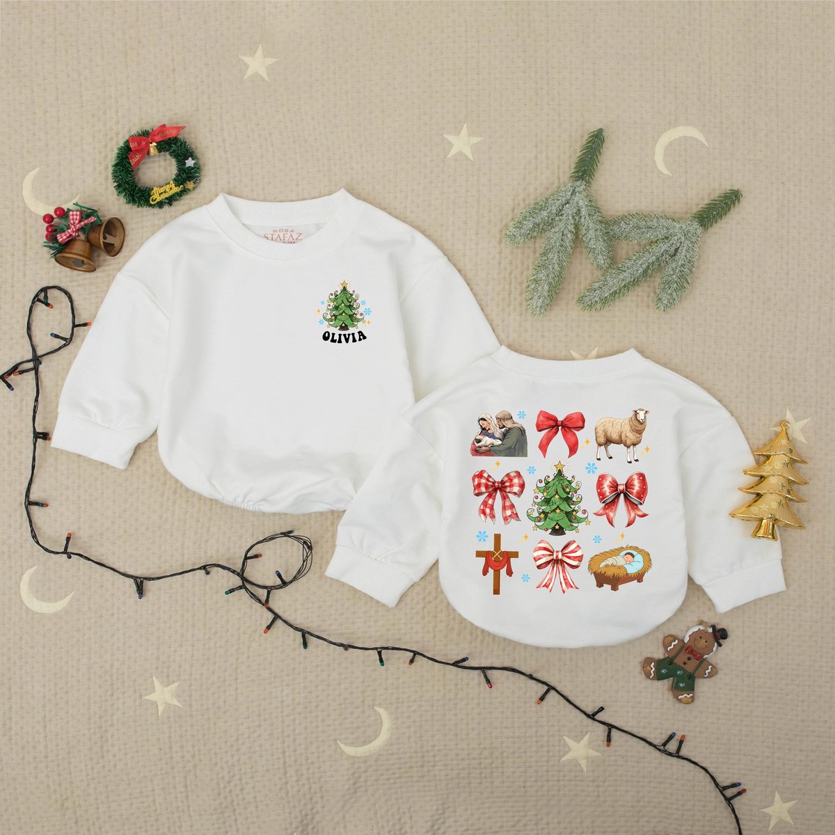 Custom Name Baby Jesus Christmas Bubble Romper Personalized Christian Baby Outfit Infant Holiday Bod