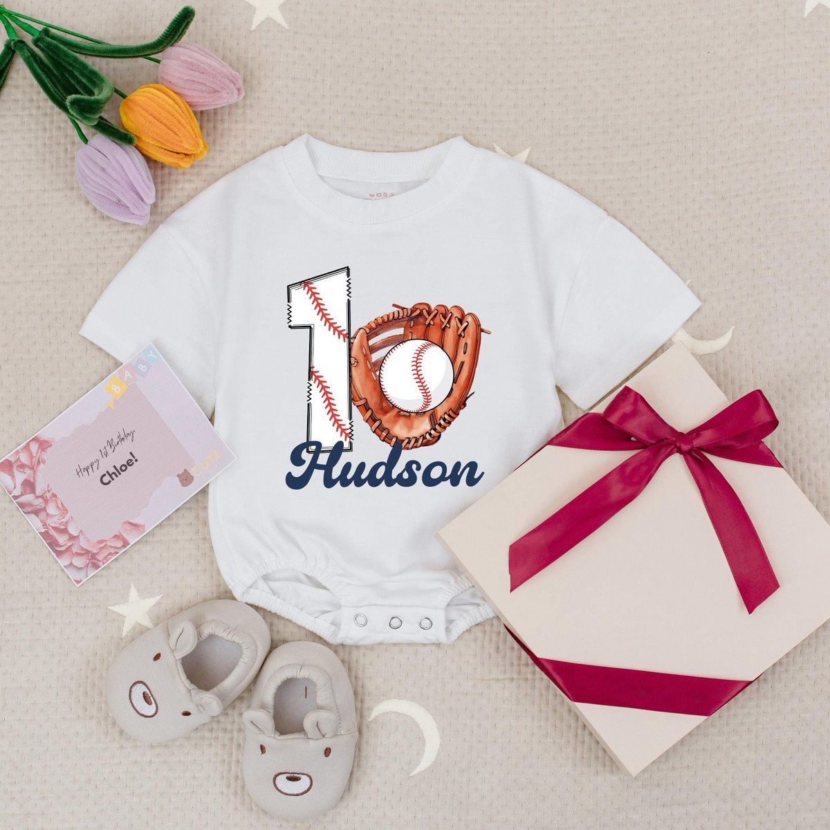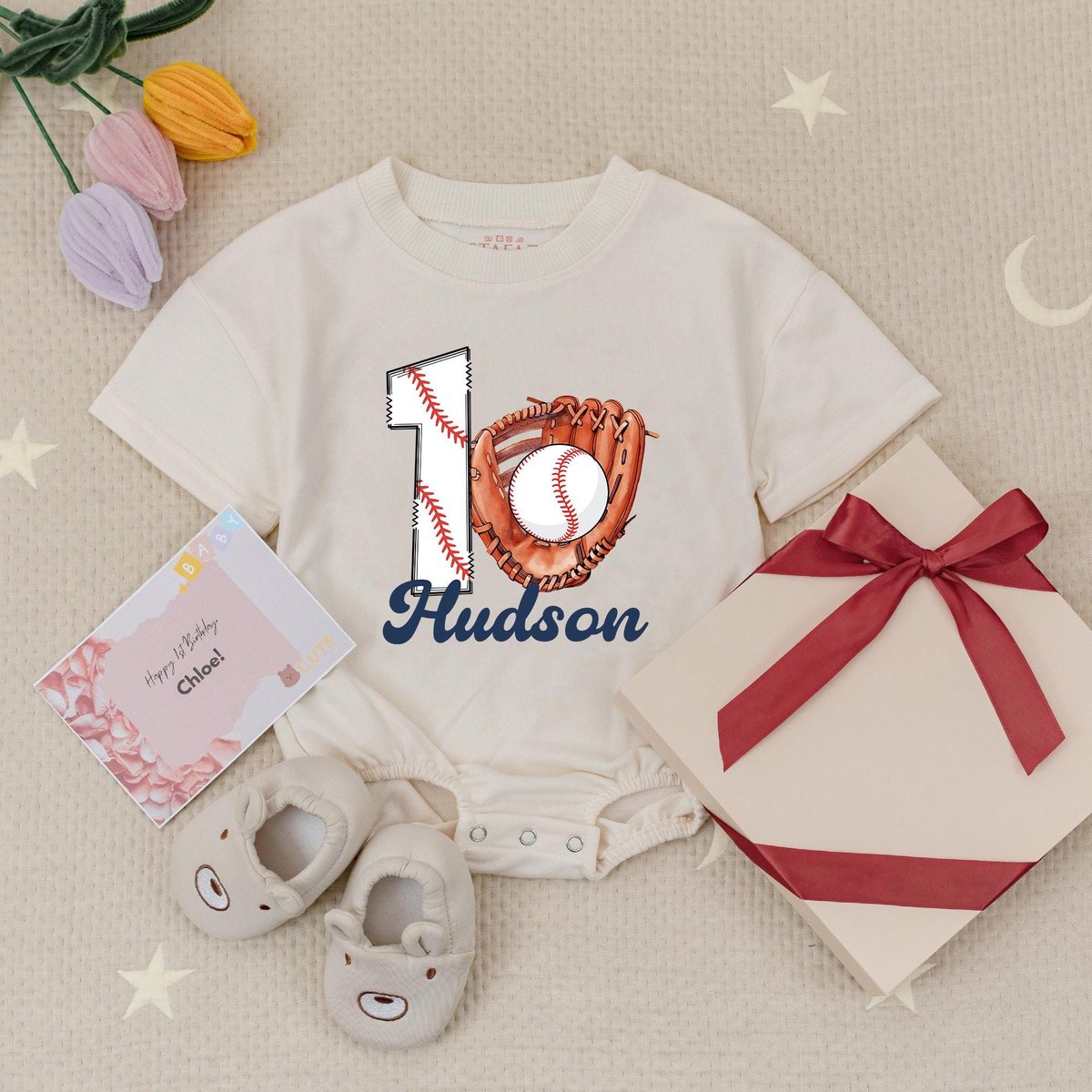 Custom Name Baseball First Birthday Baby Romper Personalized 1st Birthday Baseball Party Bodysuit Bo