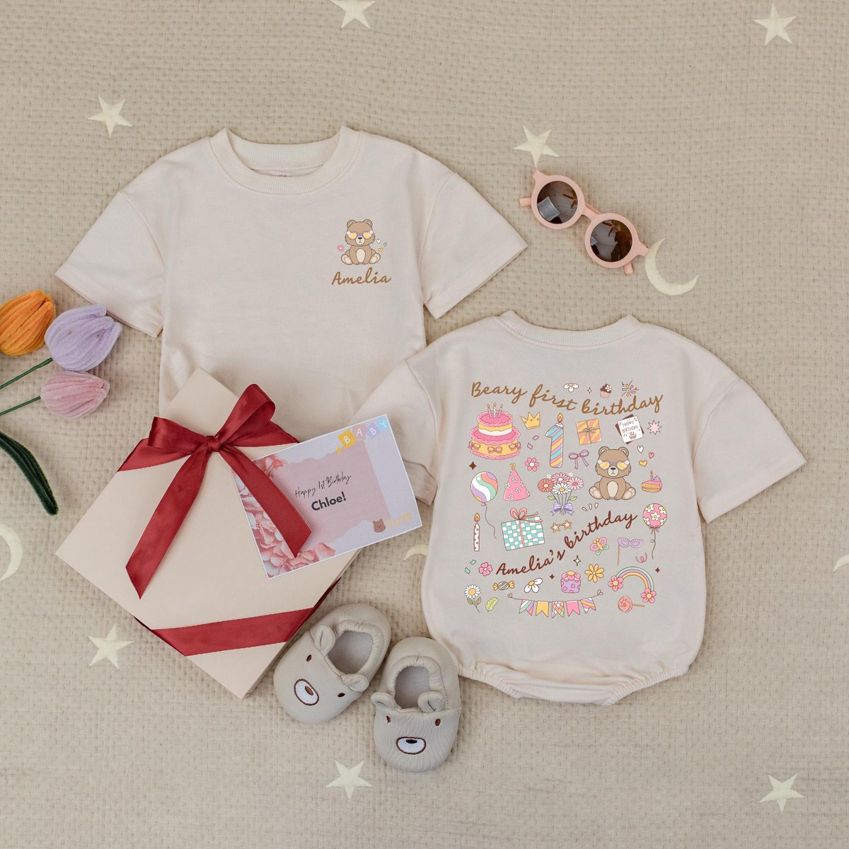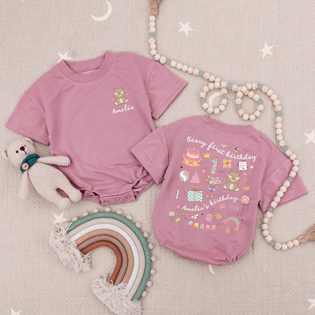 Custom Name Beary First Birthday Baby Romper Personalized 1st Birthday Outfit Cute Bear Theme Baby B