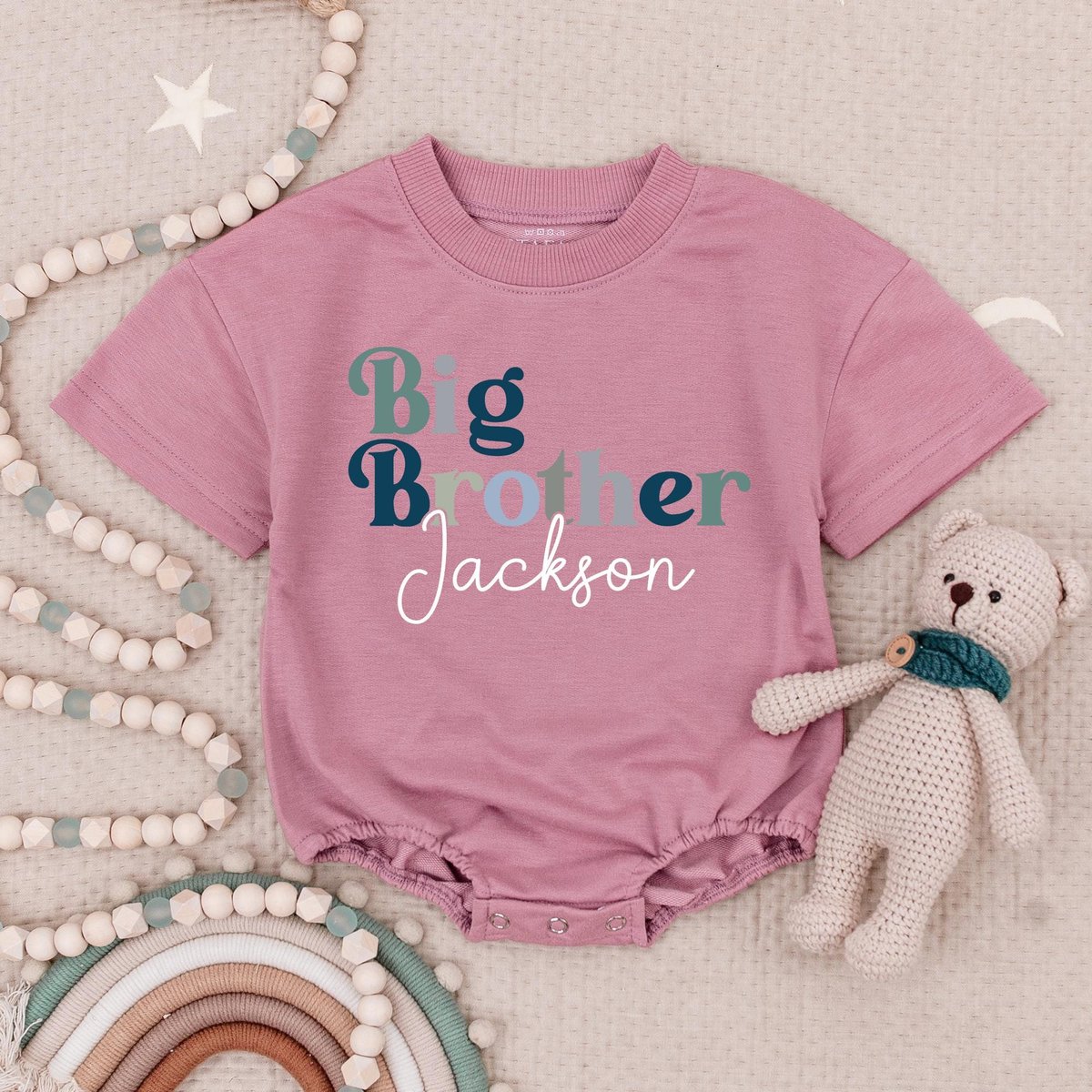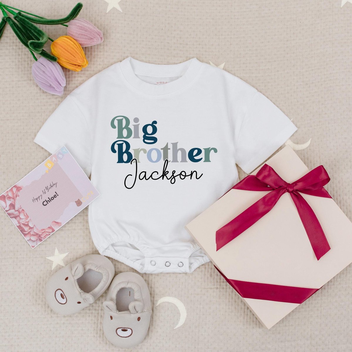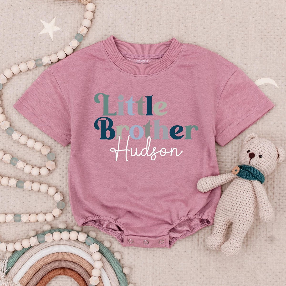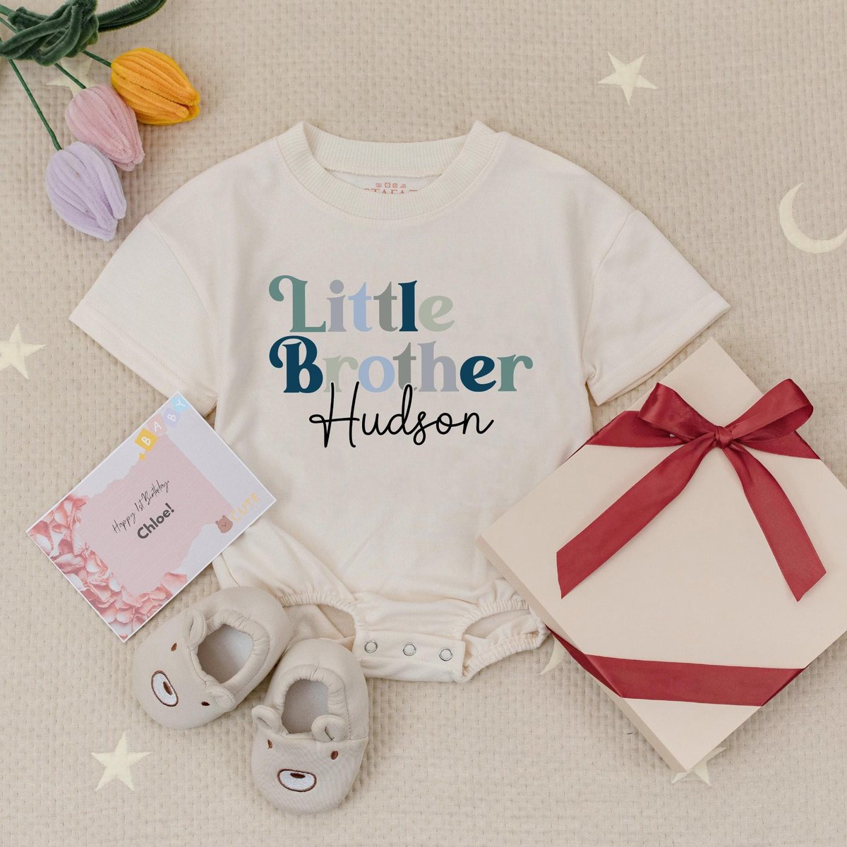 Custom Name Big Brother Baby Romper Little Brother Baby Grow Cute Siblings Kids Personalised Tees Ba