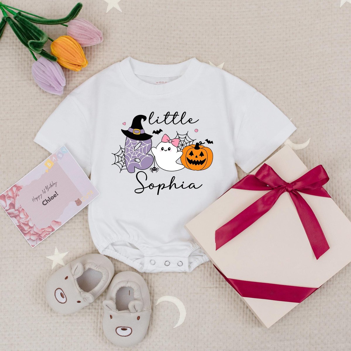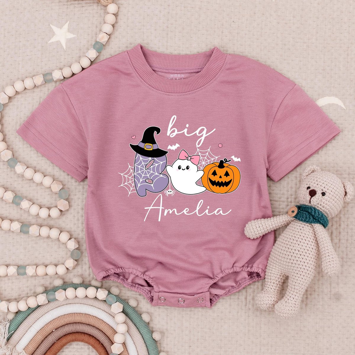 Custom Name Big Sister and Little Sister Halloween Bubble Romper Matching Ghost Sister Baby Romper H