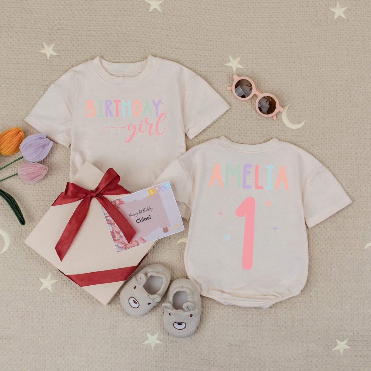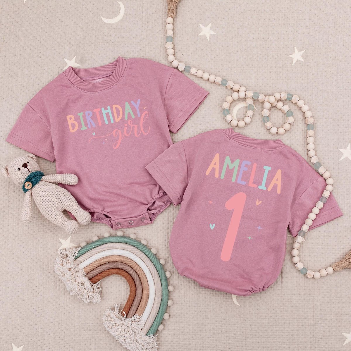 Custom Name Birthday Girl Baby Romper Rainbow Birthday Girl Outfit Baby Girl Birthday Outfit Baby Bi
