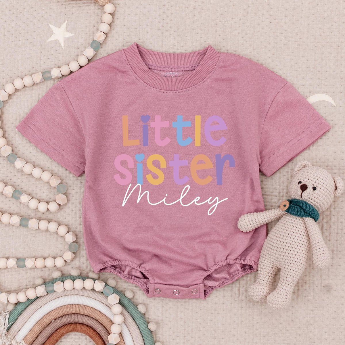 Custom Name Big Sister Baby Romper Little Sister Baby Grow Cute Siblings Kids Personalised Tees Baby