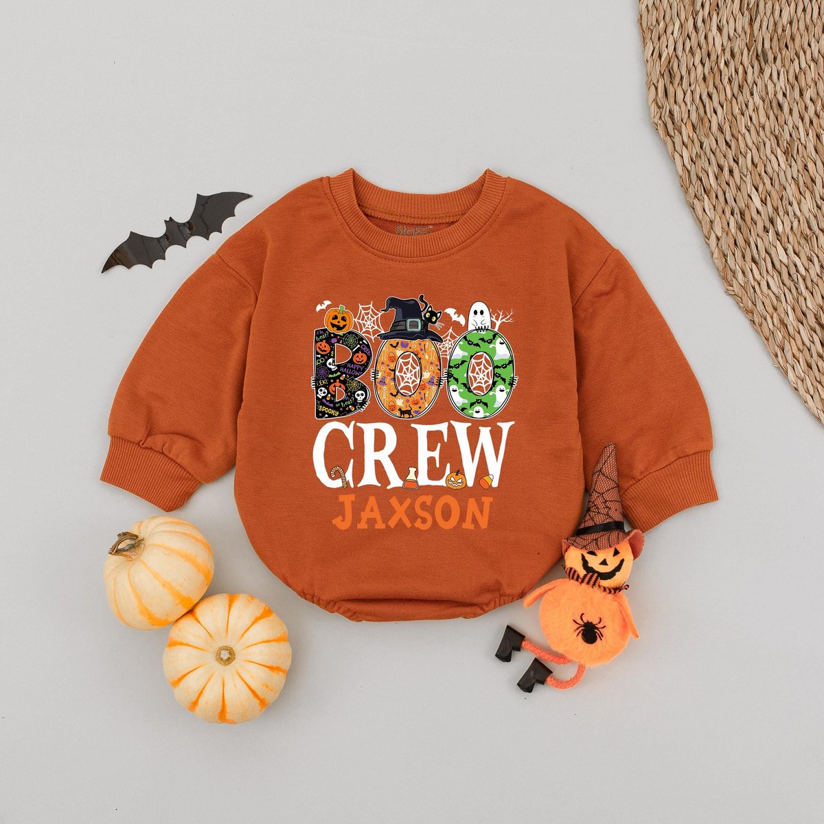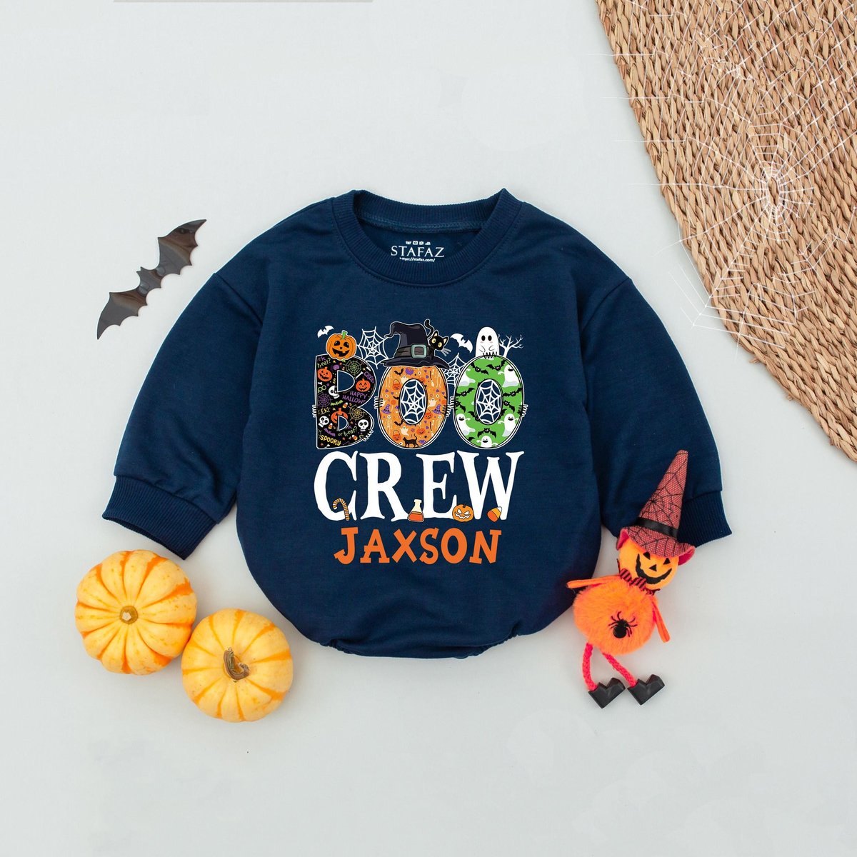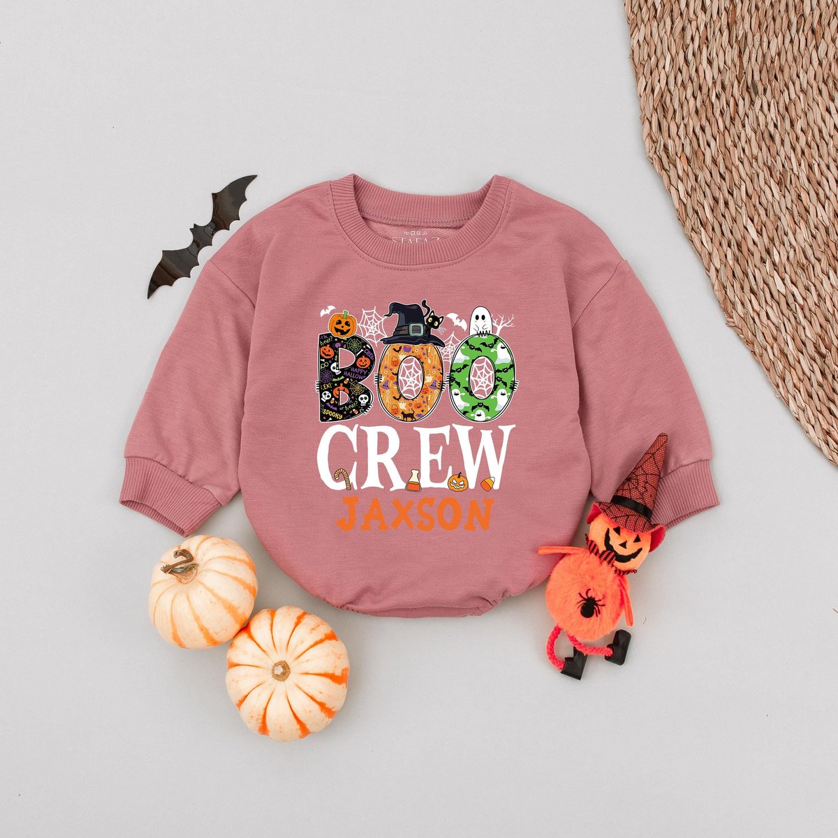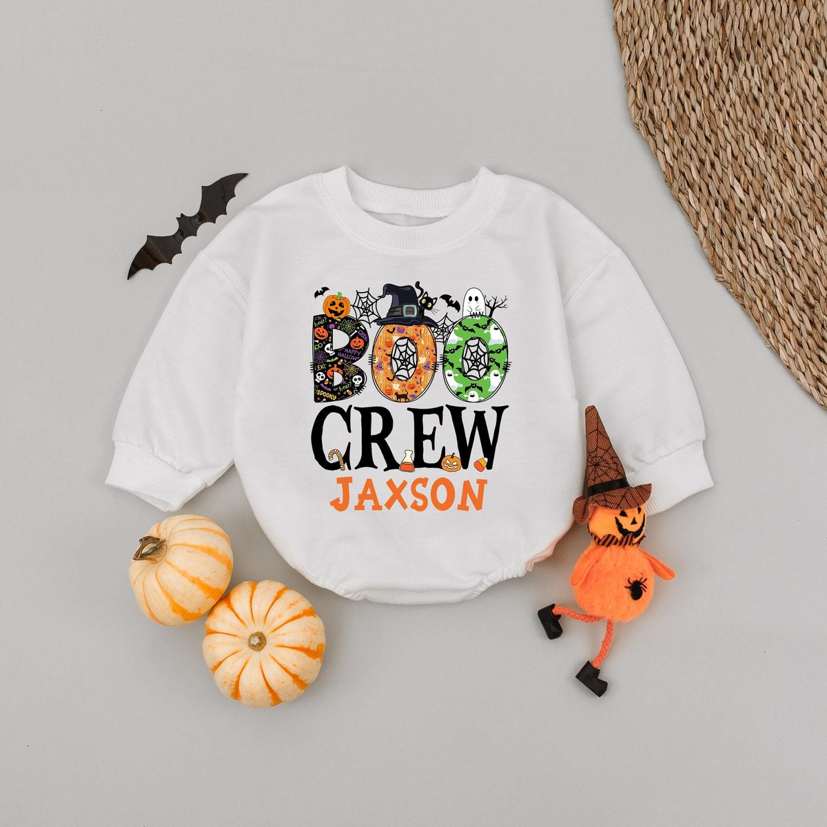 Custom Name Boo Crew Halloween Kids Bubble Romper Personalized Kids Halloween Party Baby Romper Tric