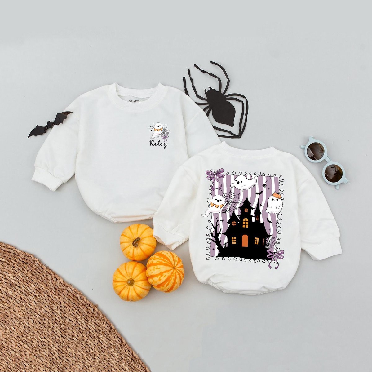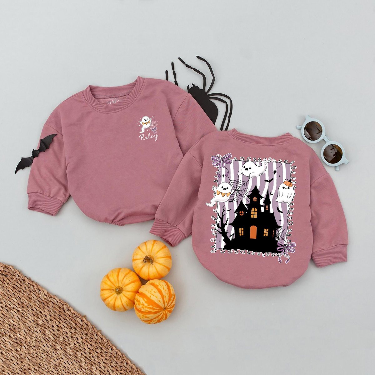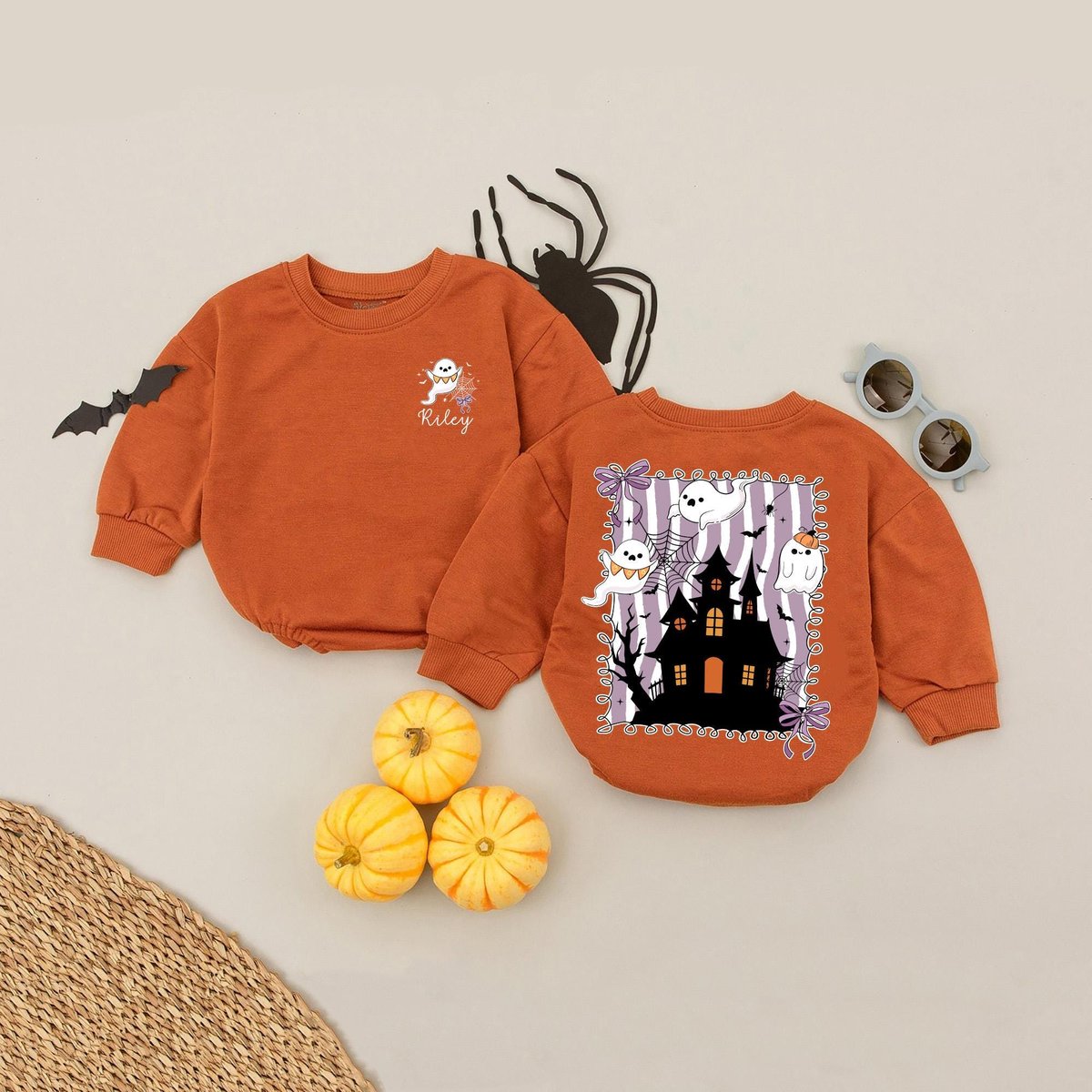 Custom Name Bow Halloween Baby Romper Cute Halloween Pink Pumpkin Babysuit Pumpkin Cute Bow Babysuit