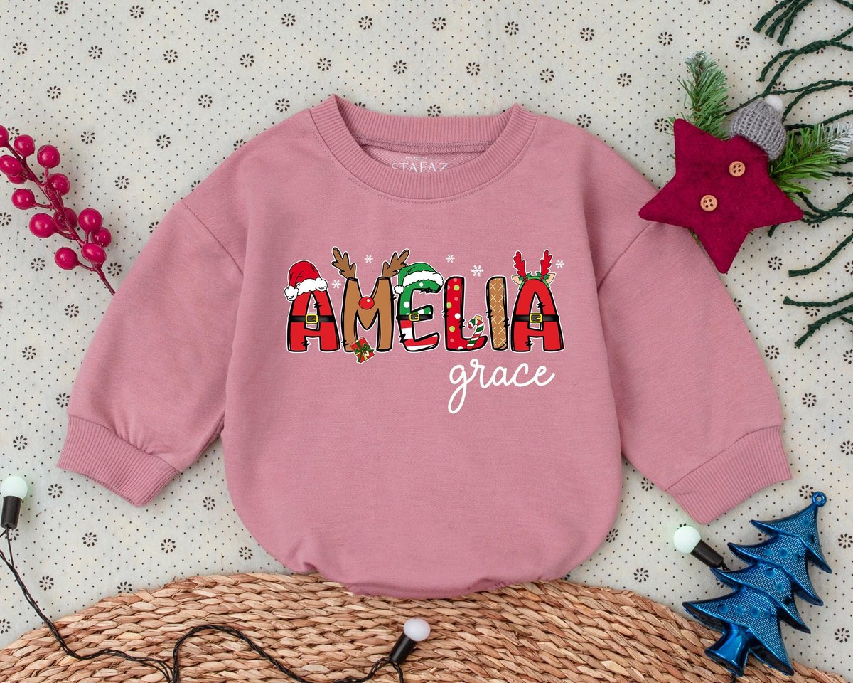 Custom Name Christmas Bubble Romper Cute Christmas Baby Bodysuit Name Christmas Bodysuit My First Ch