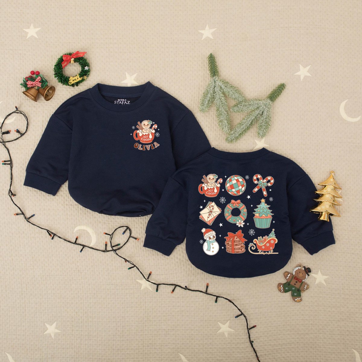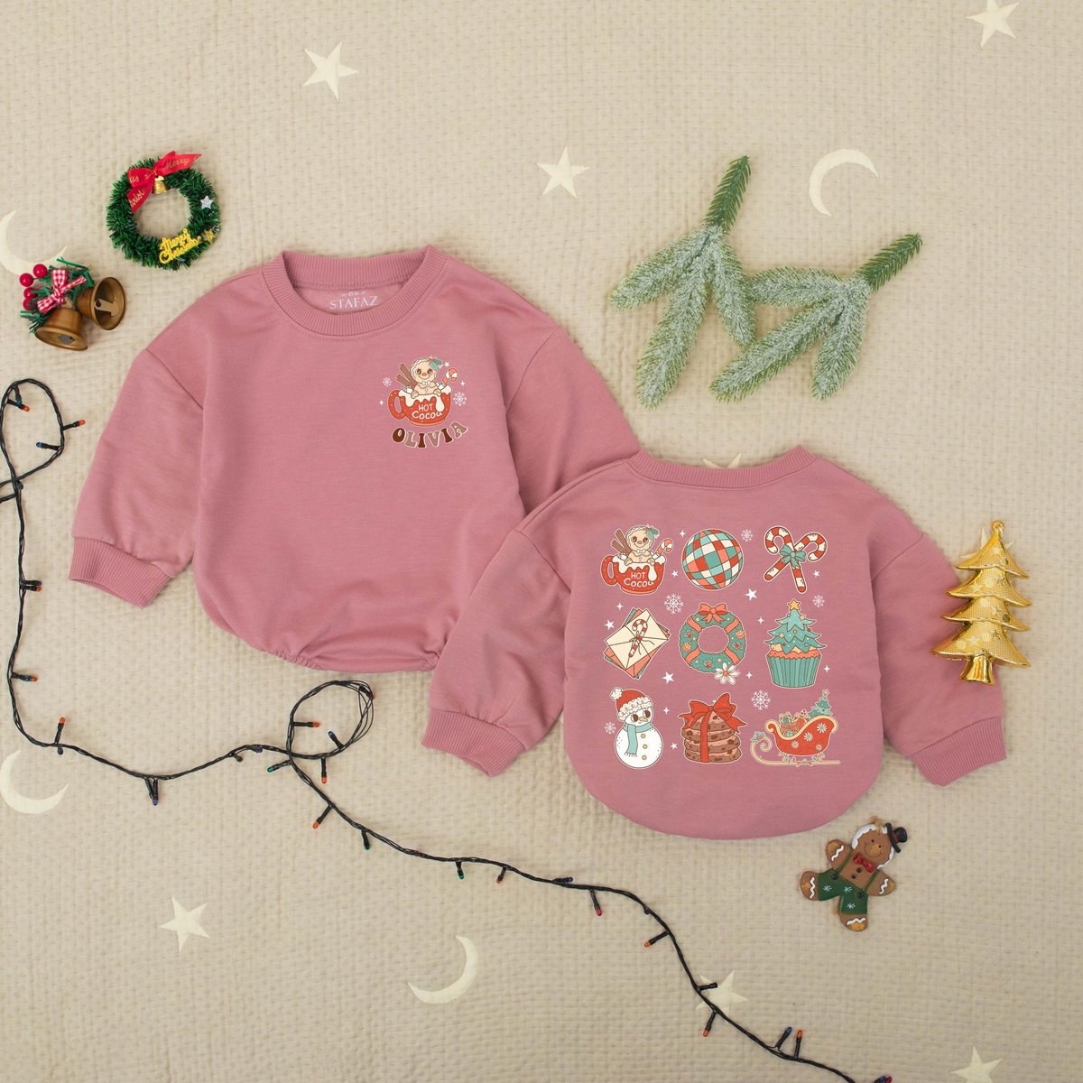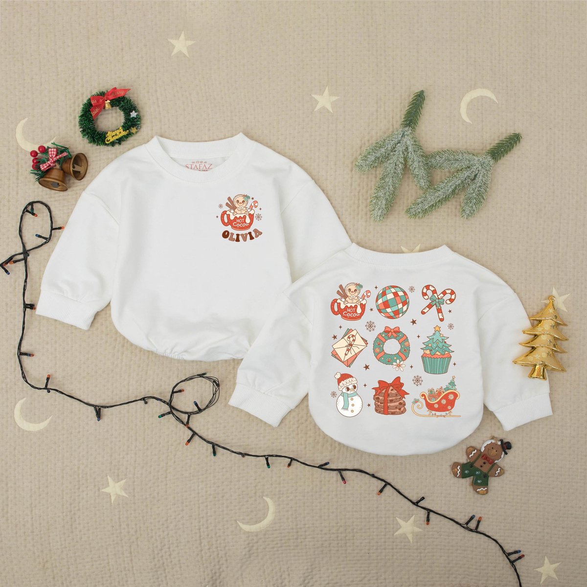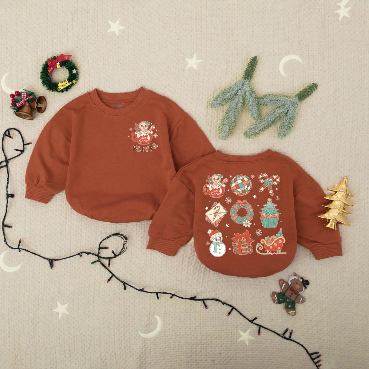 Custom Name Christmas Natural Bubble Romper Santa Reindeer Gingerbread Babysuit Retro Vintage Christ