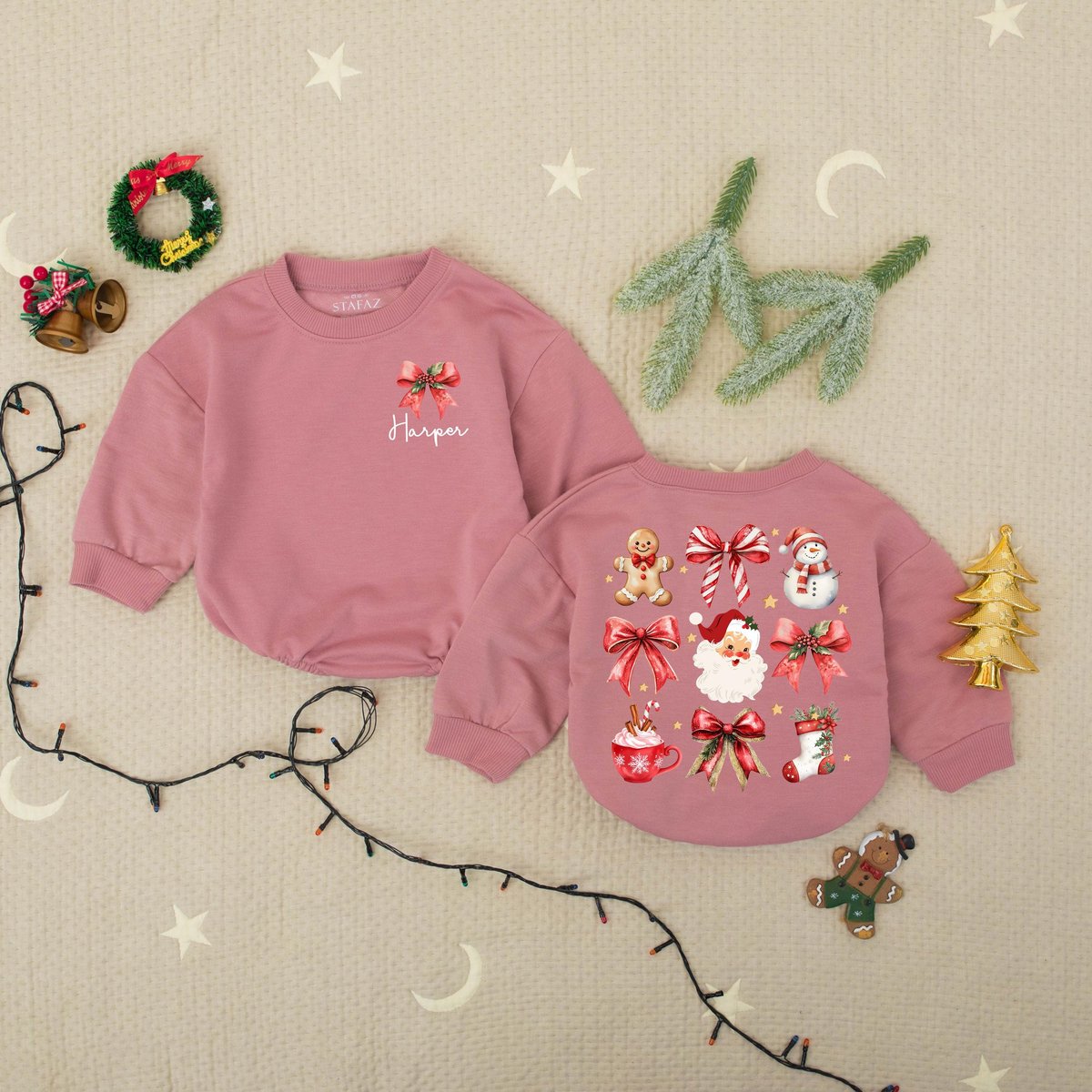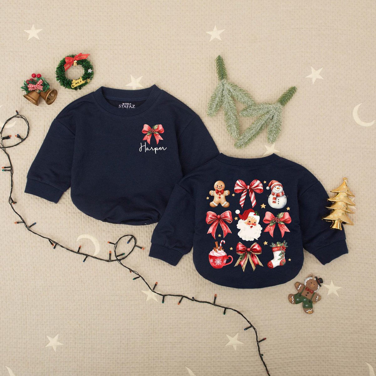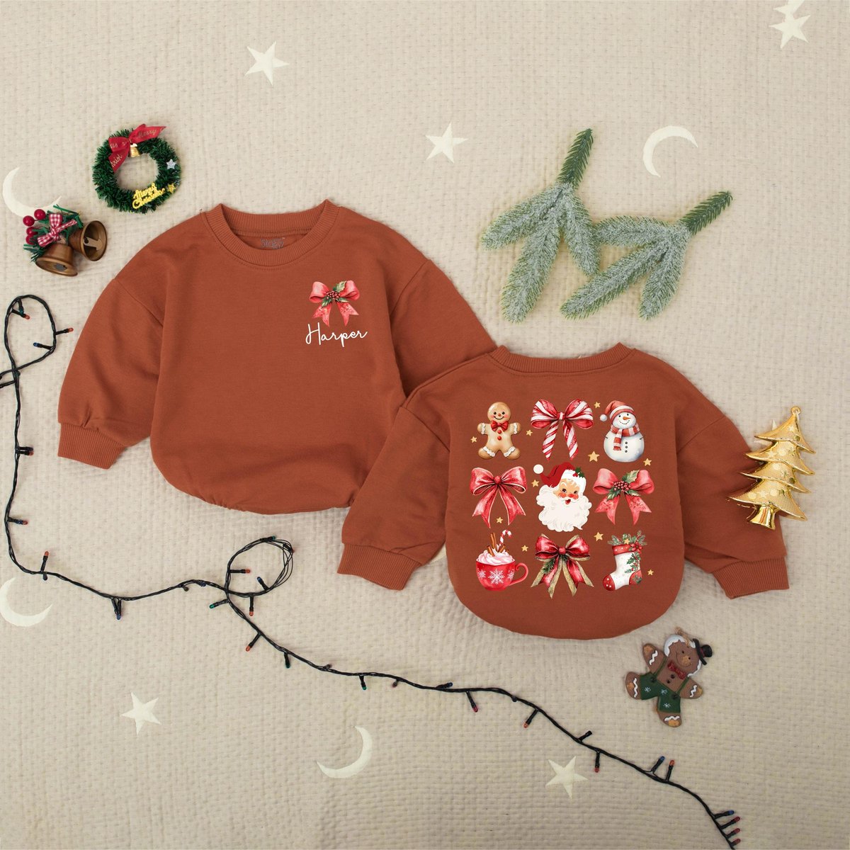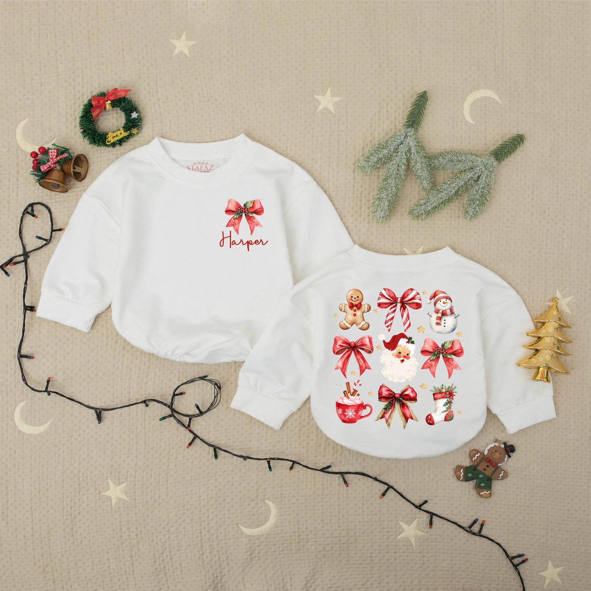 Custom Name Christmas Santa And Bows Baby Romper Sweater Red Christmas Bow Romper Santa Christmas Ba